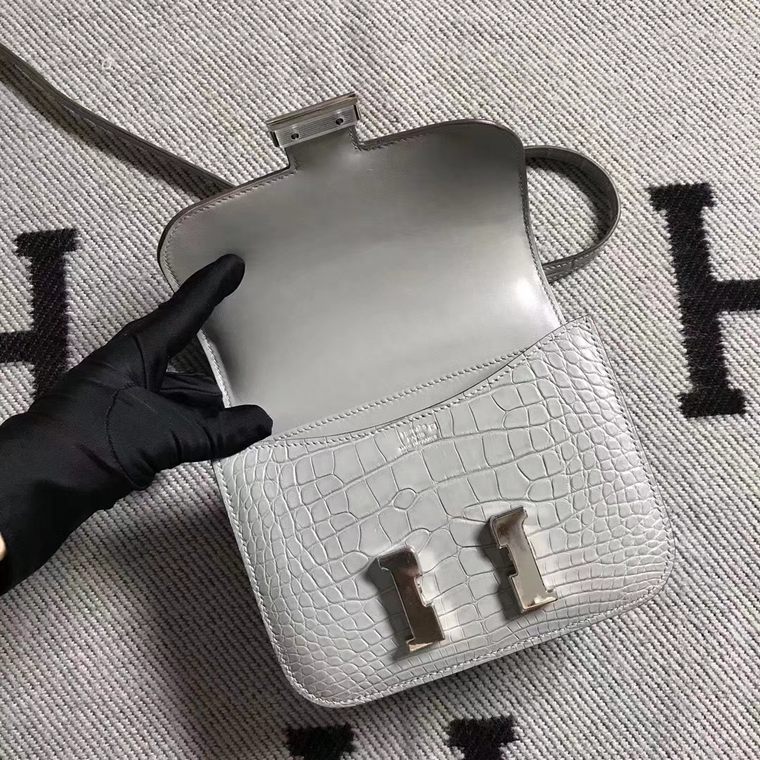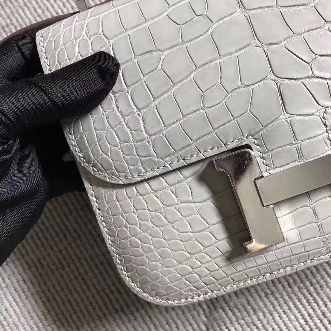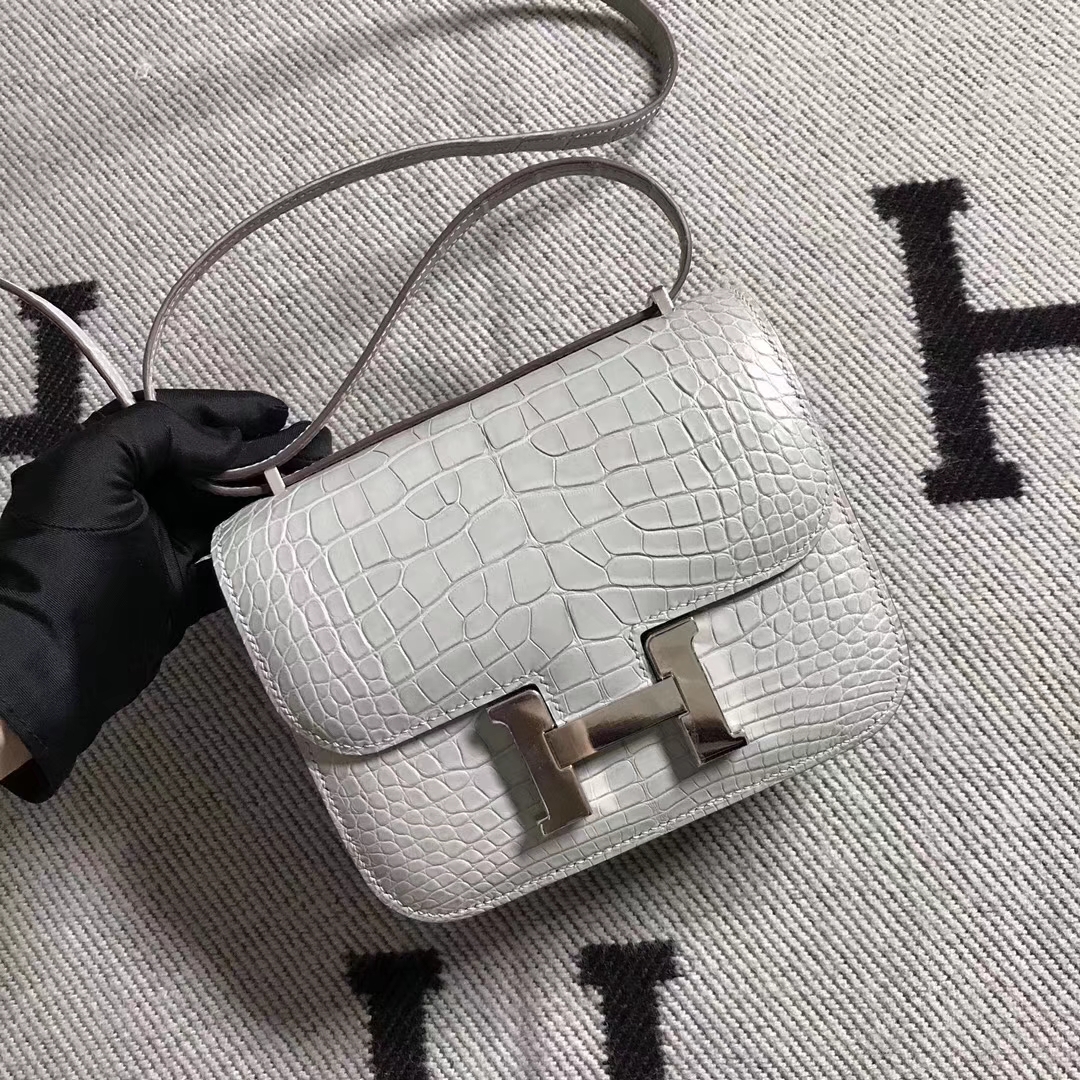 Hermès(爱马仕)Constance 空姐包 珍珠灰 雾面鳄鱼 19cm 金扣 现货 2019年3月22日 0 【鳄鱼世家】www.Eyubao.com Constance 19 Constance 空姐包 品牌:Hermès(爱马仕);类别:Constance 空姐包;颜色: 珍珠灰;材质:雾面鳄鱼;等级:顶级;附件:全套包装礼盒;尺寸:19cm;功能:单肩背包