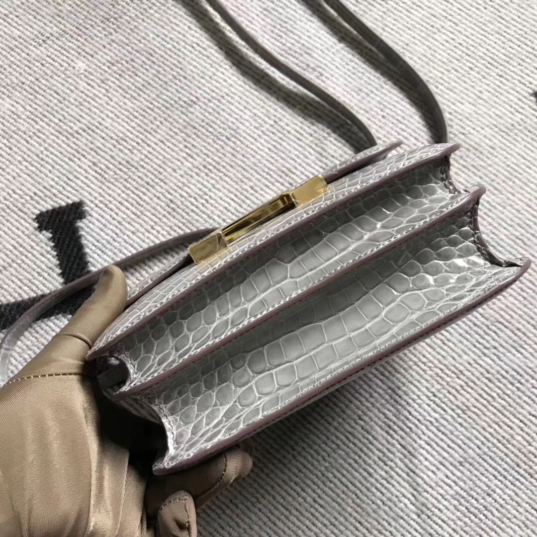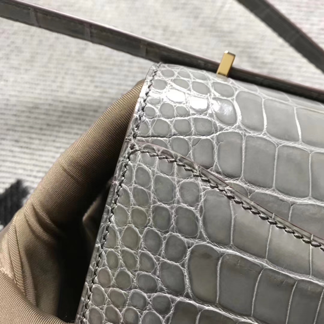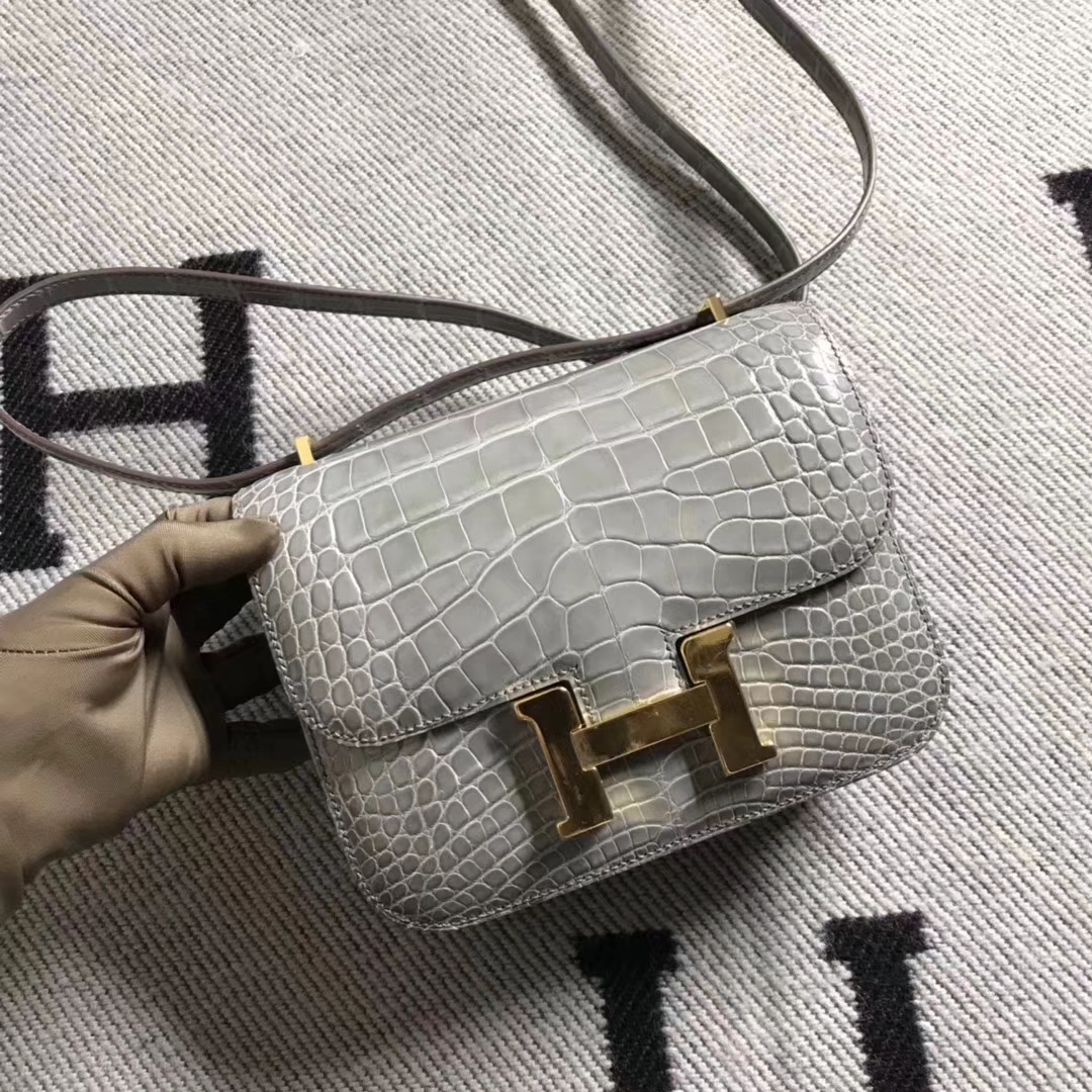 Hermès(爱马仕)空姐包 斑鸠灰 美洲鳄 金扣 现货 19cm 2019年4月13日 0 【鳄鱼世家】www.Eyubao.com Constance 19 Constance 空姐包 品牌:Hermès(爱马仕);类别:Constance 空姐包;颜色:斑鸠灰;材质:精选美洲鳄;等级:顶级;附件:全套包装礼盒;尺寸:19cm;功能:单肩背包