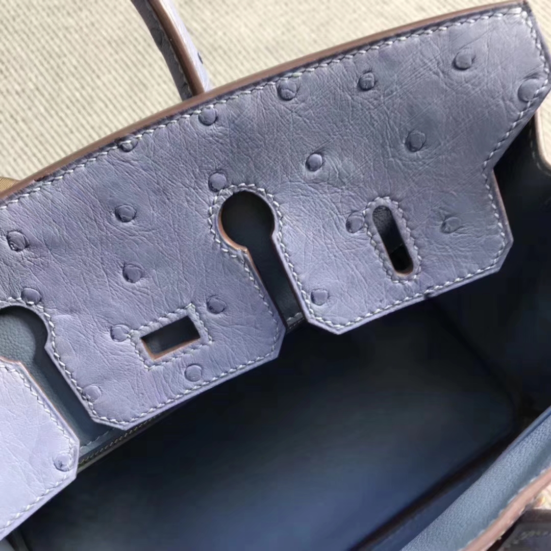 Hermès(爱马仕)brikin铂金包 南非鸵鸟皮 灰蓝色 金扣 现货 25cm 2019年4月15日 0 【鳄鱼世家】www.Eyubao.com Birkin 25 Birkin 铂金包 品牌:Hermès(爱马仕);类别:Birkin 铂金包;颜色:灰蓝色;材质:南非鸵鸟皮;等级:顶级;附件:全套包装礼盒;尺寸:25cm;功能:手提单肩包