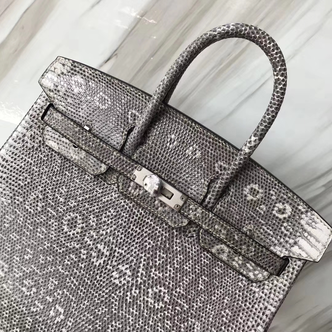 Hermès(爱马仕)Birkin铂金包 Lizard 进口亮面蜥蜴 小喜马拉雅色 银扣 25cm 现货 2019年4月15日 0 【鳄鱼世家】www.Eyubao.com Birkin 25 Birkin 铂金包 品牌:Hermès(爱马仕);类别:Birkin 铂金包;颜色:小喜马拉雅色;材质:进口亮面蜥蜴皮;等级:顶级;附件:全套包装礼盒;尺寸:25cm;功能:手提单肩包
