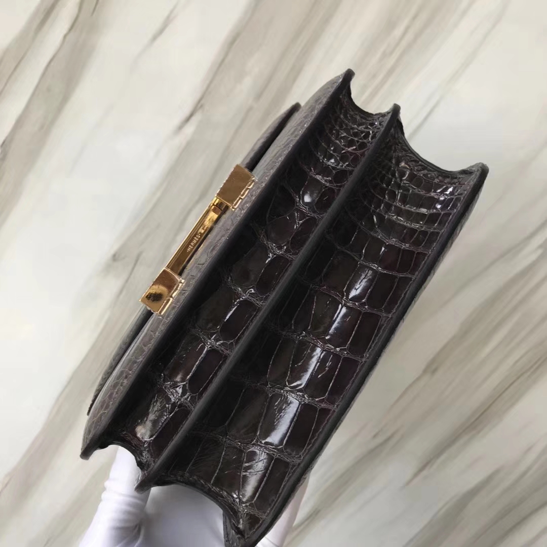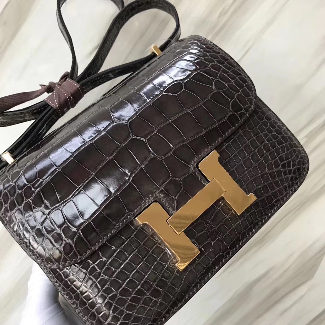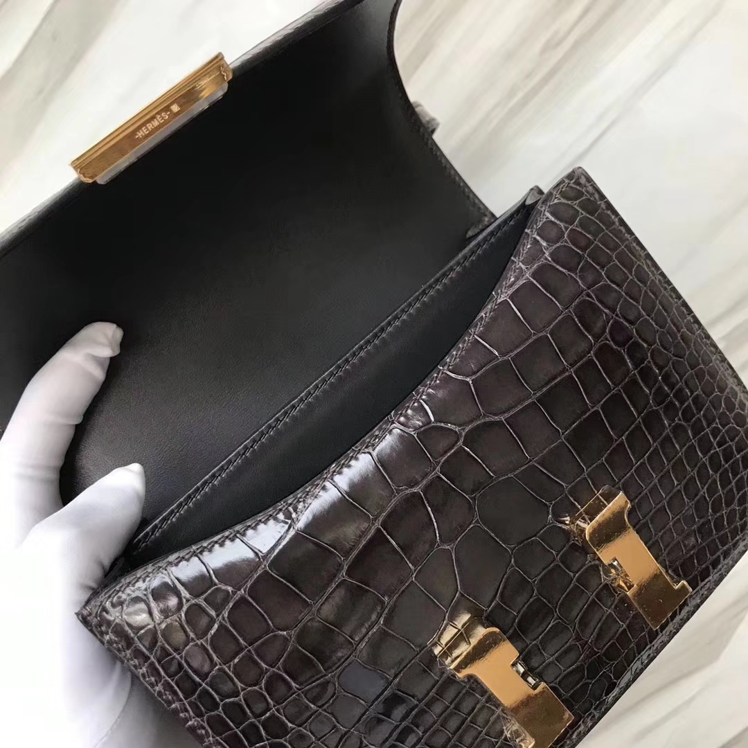 Hermès(爱马仕)Constance Alligator shiny 亮面鳄鱼 ck88 石墨灰 金扣 18cm 顶级现货 2019年4月18日 0 【鳄鱼世家】www.Eyubao.com Constance 18 Constance 空姐包 品牌:Hermès(爱马仕);类别:Constance 空姐包;颜色:石墨灰;材质: 亮面鳄鱼;等级:顶级;附件:全套包装礼盒;尺寸:18cm;功能:单肩背包