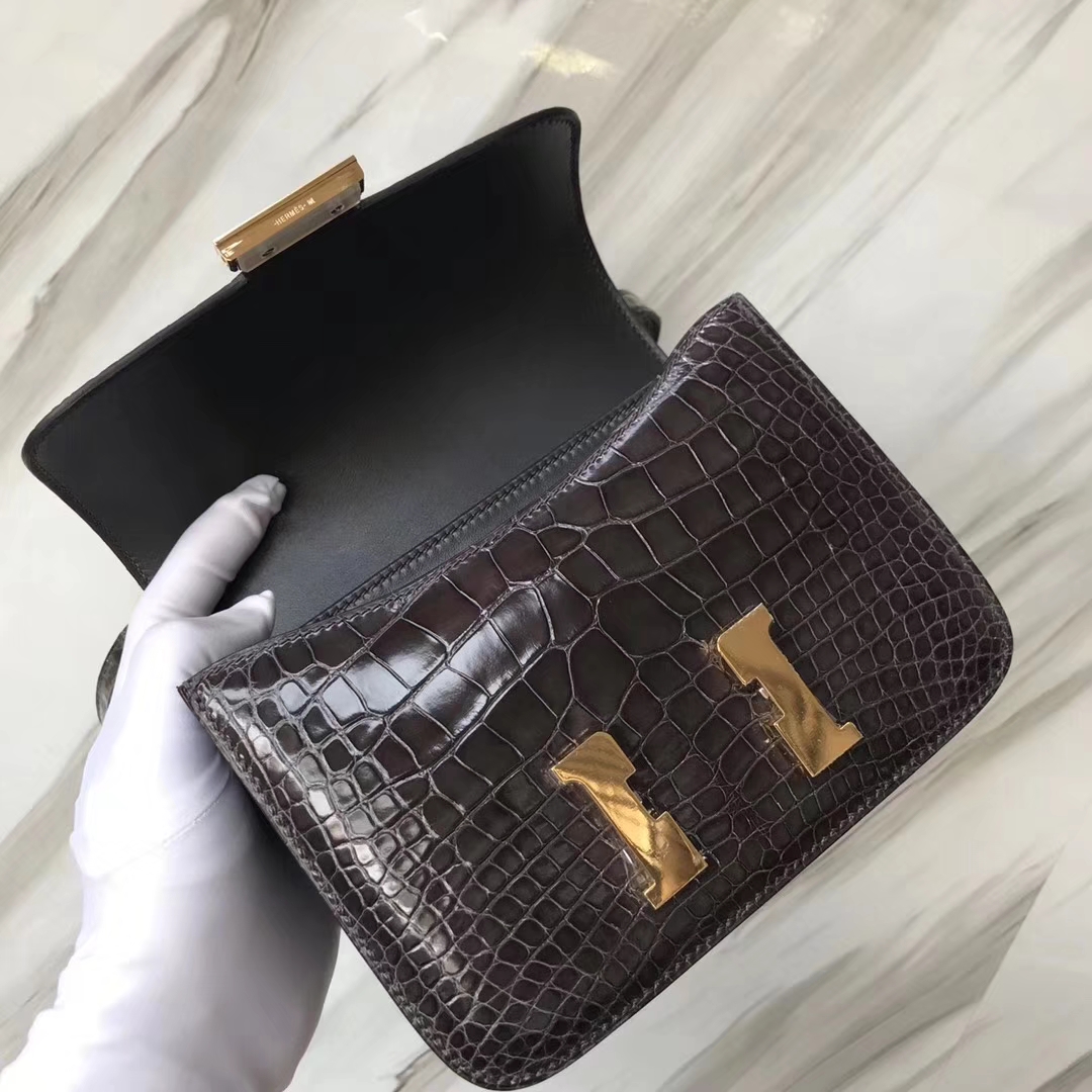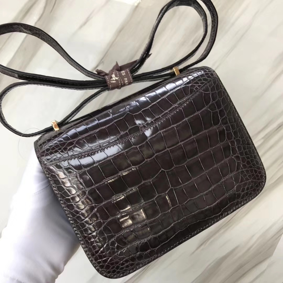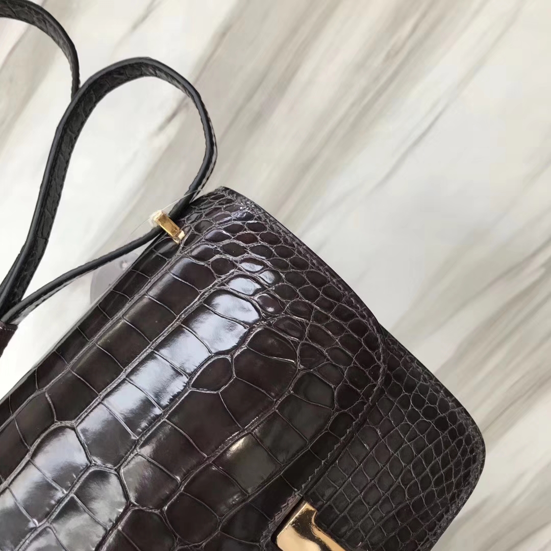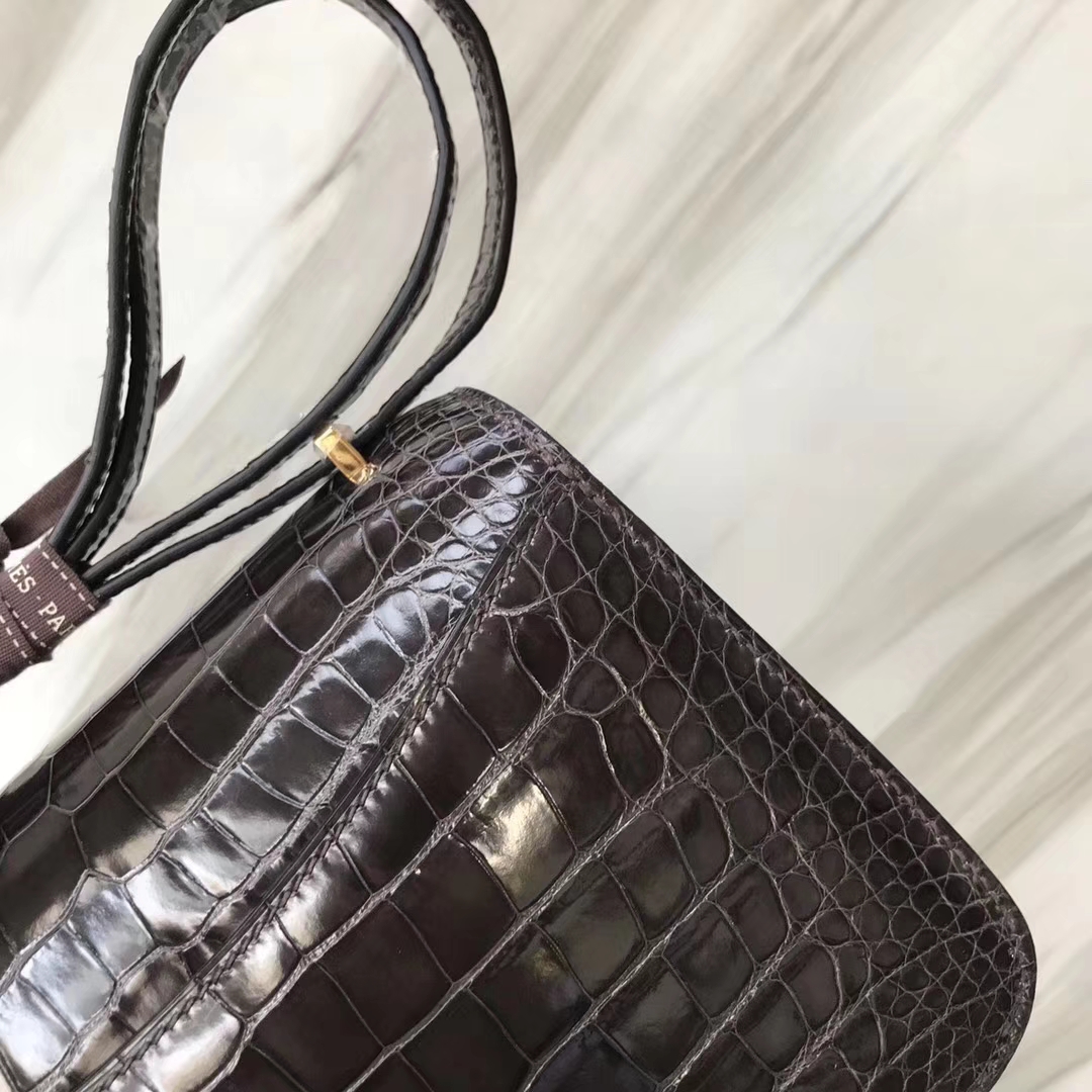 Hermès(爱马仕)Constance Alligator shiny 亮面鳄鱼 ck88 石墨灰 金扣 18cm 顶级现货 2019年4月18日 0 【鳄鱼世家】www.Eyubao.com Constance 18 Constance 空姐包 品牌:Hermès(爱马仕);类别:Constance 空姐包;颜色:石墨灰;材质: 亮面鳄鱼;等级:顶级;附件:全套包装礼盒;尺寸:18cm;功能:单肩背包