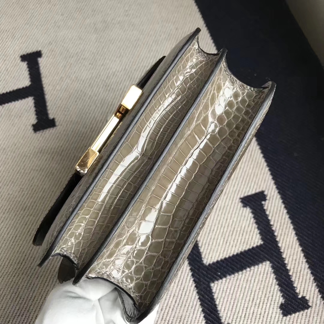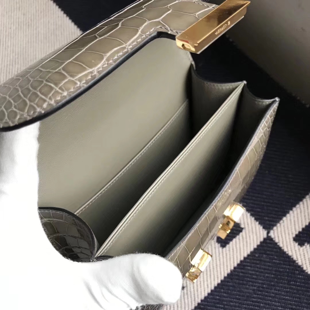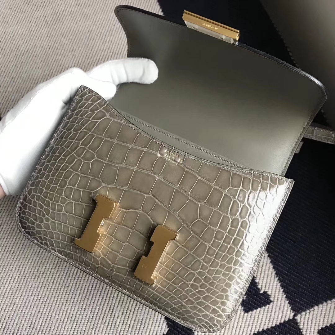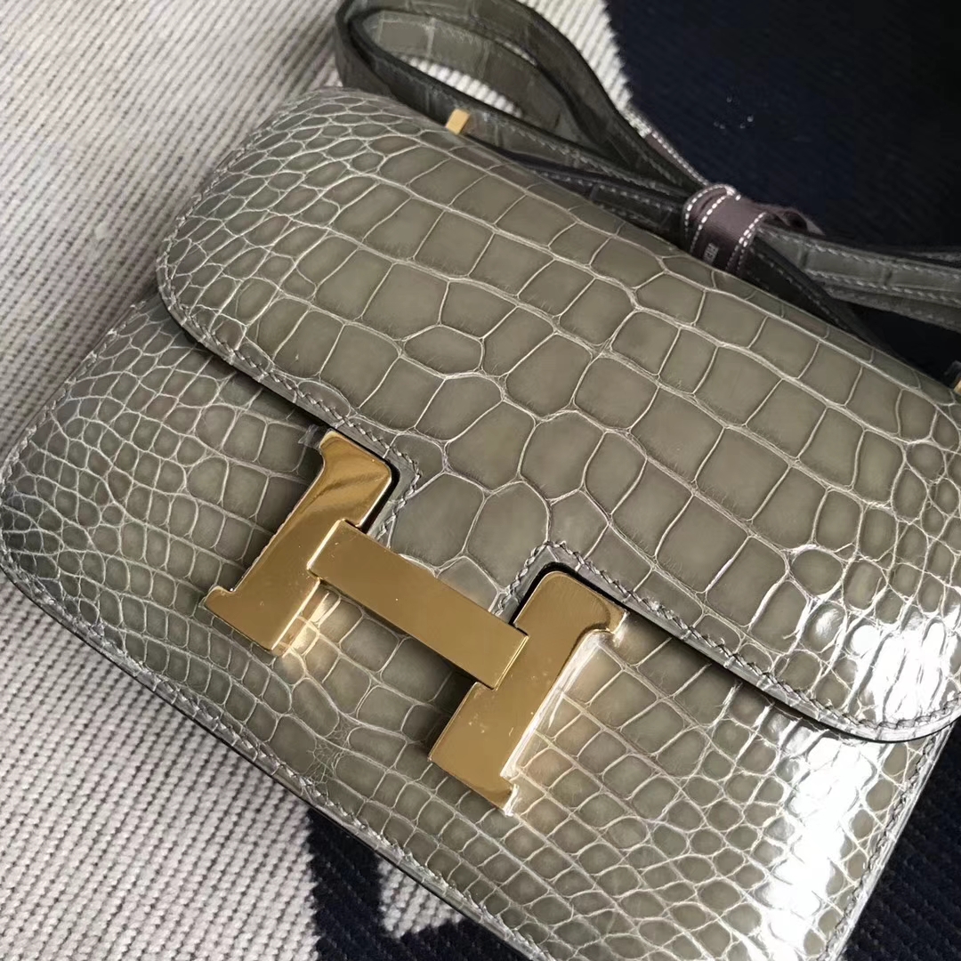 Hermès(爱马仕)Constance空姐包 Alligator shiny 亮面鳄鱼 ck81 斑鸠灰 金扣 品相完美 顶级货 18cm 2019年4月19日 0 【鳄鱼世家】www.Eyubao.com Constance 18 Constance 空姐包 品牌:Hermès(爱马仕);类别:Constance 空姐包;颜色:斑鸠灰;材质: 亮面鳄鱼;等级:顶级;附件:全套包装礼盒;尺寸:18cm;功能:单肩背包