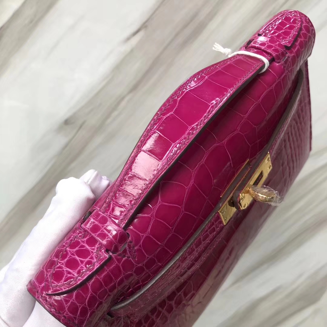 Hermès(爱马仕) Minikelly pochette Alligator shiny 亮面鳄鱼 J5 天方夜谭粉紫 金扣 手拿包 晚宴包 22cm 2019年4月25日 0 【鳄鱼世家】www.Eyubao.com Mini Kelly 1 Mini Kelly 迷你凯莉 品牌:Hermès(爱马仕);类别:Mini Kelly迷你凯莉包;颜色: 天方夜谭粉紫;材质:亮面鳄鱼;等级:顶级;附件:全套包装礼盒;尺寸:22cm;功能:手提单肩包
