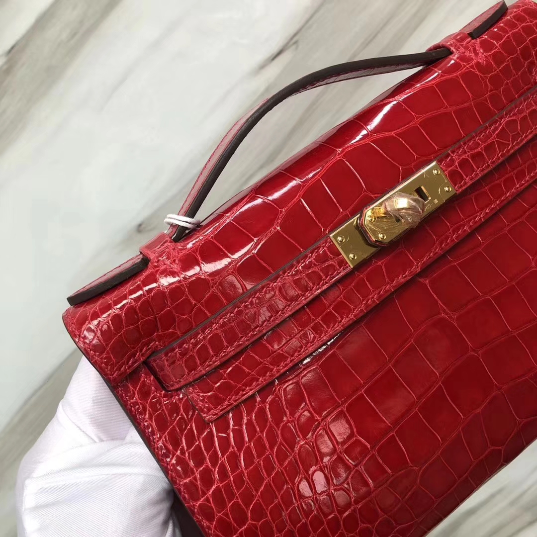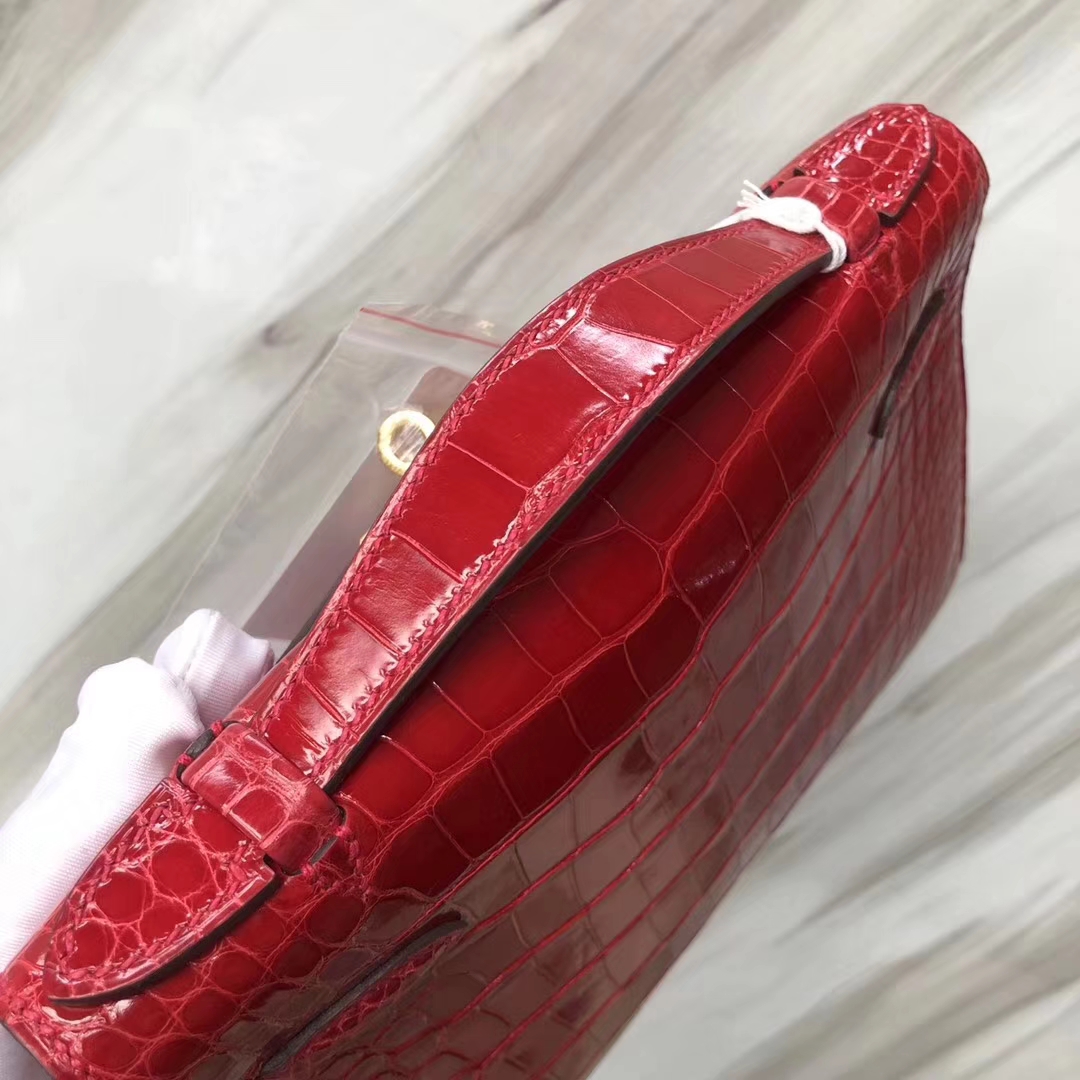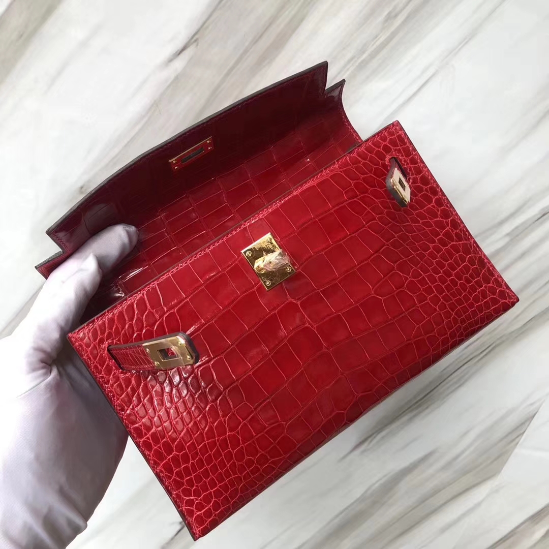 Hermès(爱马仕) Minikelly pochette Alligator shiny 亮面鳄鱼 CK95 法拉利红 Braise 金扣 手拿包 晚宴包 22cm 2019年4月25日 0 【鳄鱼世家】www.Eyubao.com Mini Kelly 1 Mini Kelly 迷你凯莉 品牌:Hermès(爱马仕);类别:Mini Kelly迷你凯莉包;颜色: 法拉利红;材质:亮面鳄鱼;等级:顶级;附件:全套包装礼盒;尺寸:22cm;功能:手提单肩包