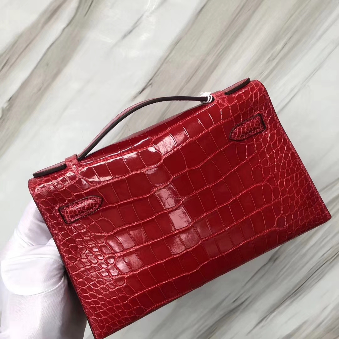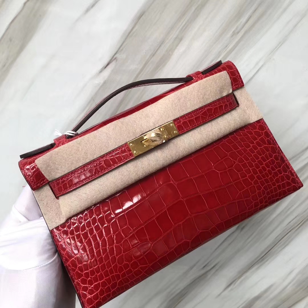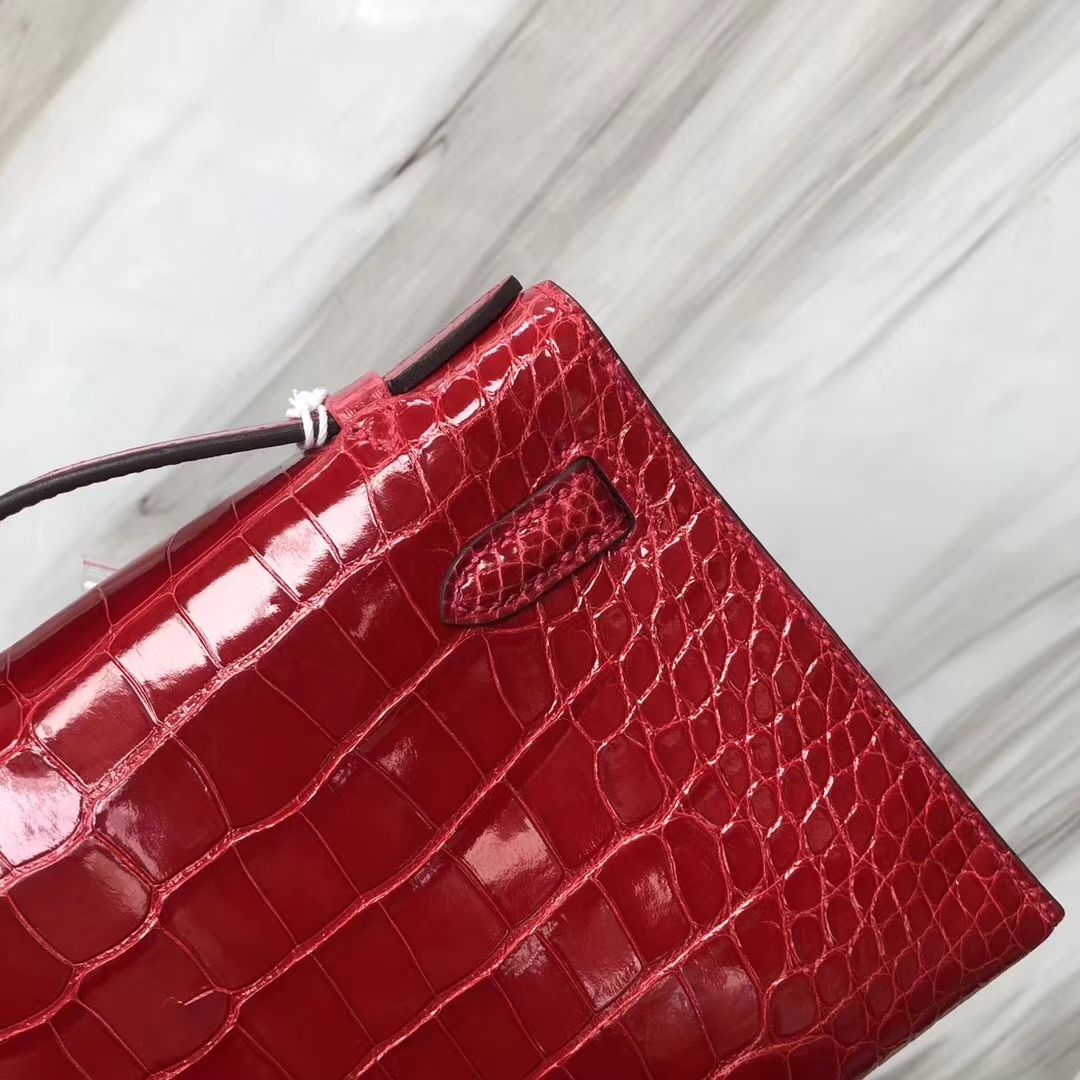 Hermès(爱马仕) Minikelly pochette Alligator shiny 亮面鳄鱼 CK95 法拉利红 Braise 金扣 手拿包 晚宴包 22cm 2019年4月25日 0 【鳄鱼世家】www.Eyubao.com Mini Kelly 1 Mini Kelly 迷你凯莉 品牌:Hermès(爱马仕);类别:Mini Kelly迷你凯莉包;颜色: 法拉利红;材质:亮面鳄鱼;等级:顶级;附件:全套包装礼盒;尺寸:22cm;功能:手提单肩包