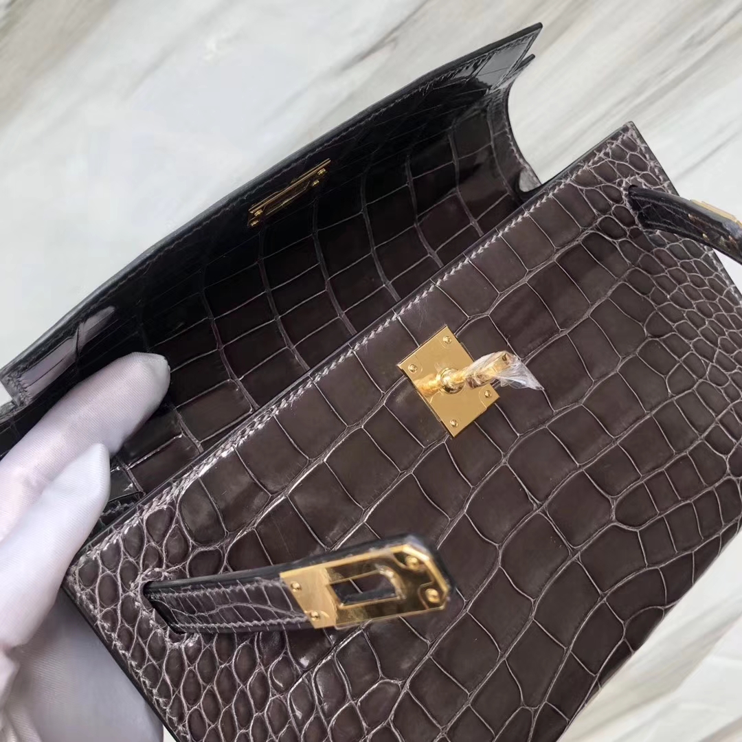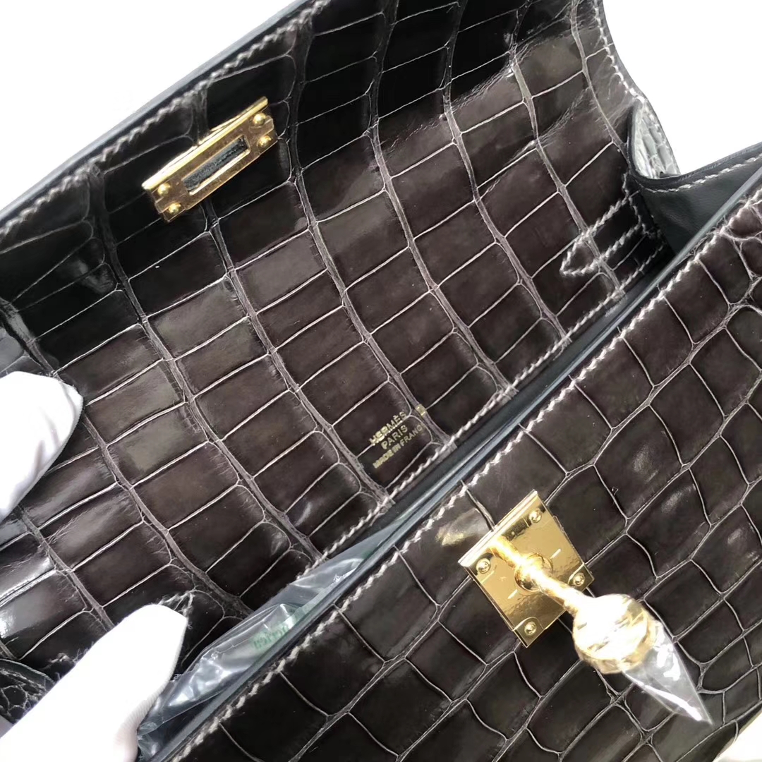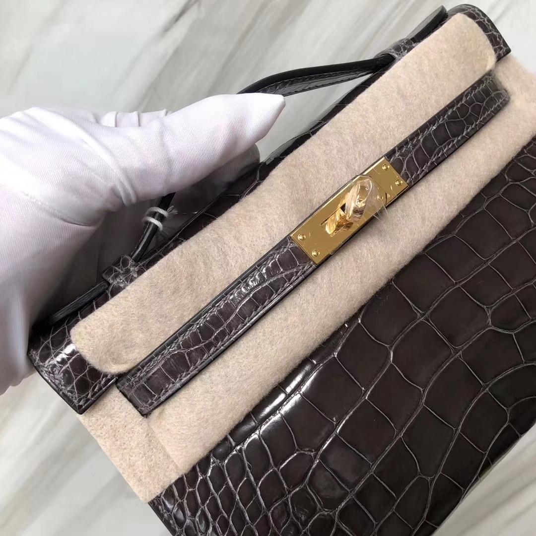 Hermès(爱马仕) Minikelly pochette Alligator shiny 亮面鳄鱼 CK88 石墨灰 金扣 手拿包 晚宴包 22cm 2019年4月25日 0 【鳄鱼世家】www.Eyubao.com Mini Kelly 1 Mini Kelly 迷你凯莉 品牌:Hermès(爱马仕);类别:Mini Kelly迷你凯莉包;颜色:石墨灰;材质:亮面鳄鱼;等级:顶级;附件:全套包装礼盒;尺寸:22cm;功能:手提单肩包