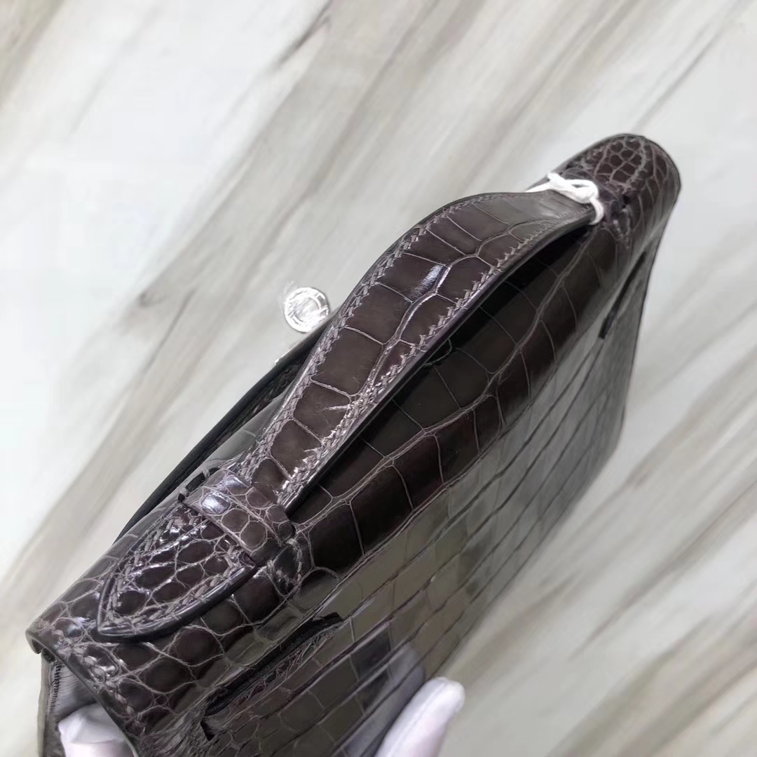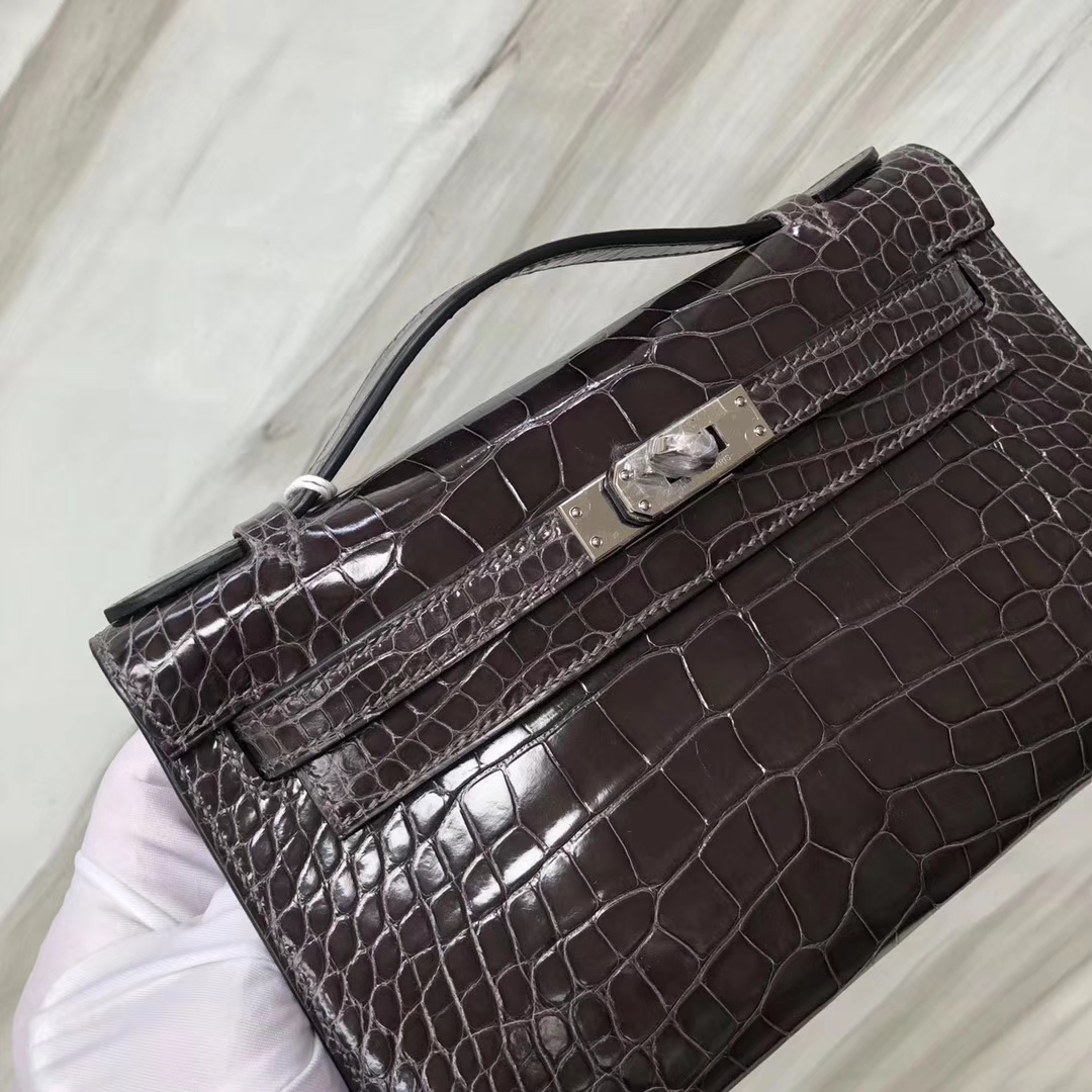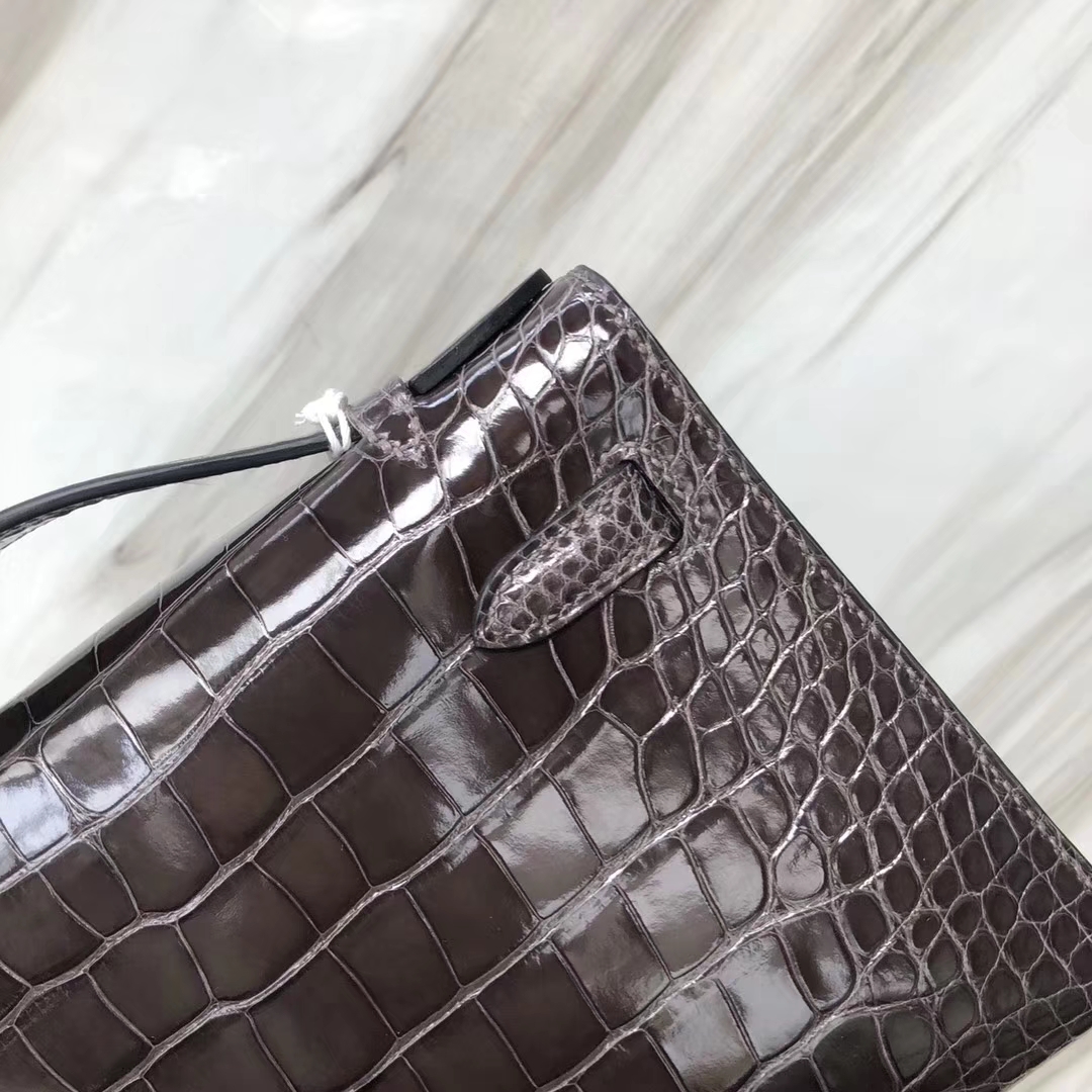 Hermès(爱马仕) Minikelly pochette Alligator shiny 亮面鳄鱼 CK88 石墨灰 银扣 手拿包 晚宴包 22cm 2019年4月25日 0 【鳄鱼世家】www.Eyubao.com Mini Kelly 1 Mini Kelly 迷你凯莉 品牌:Hermès(爱马仕);类别:Mini Kelly迷你凯莉包;颜色: 石墨灰;材质:亮面鳄鱼;等级:顶级;附件:全套包装礼盒;尺寸:22cm;功能:手提单肩包