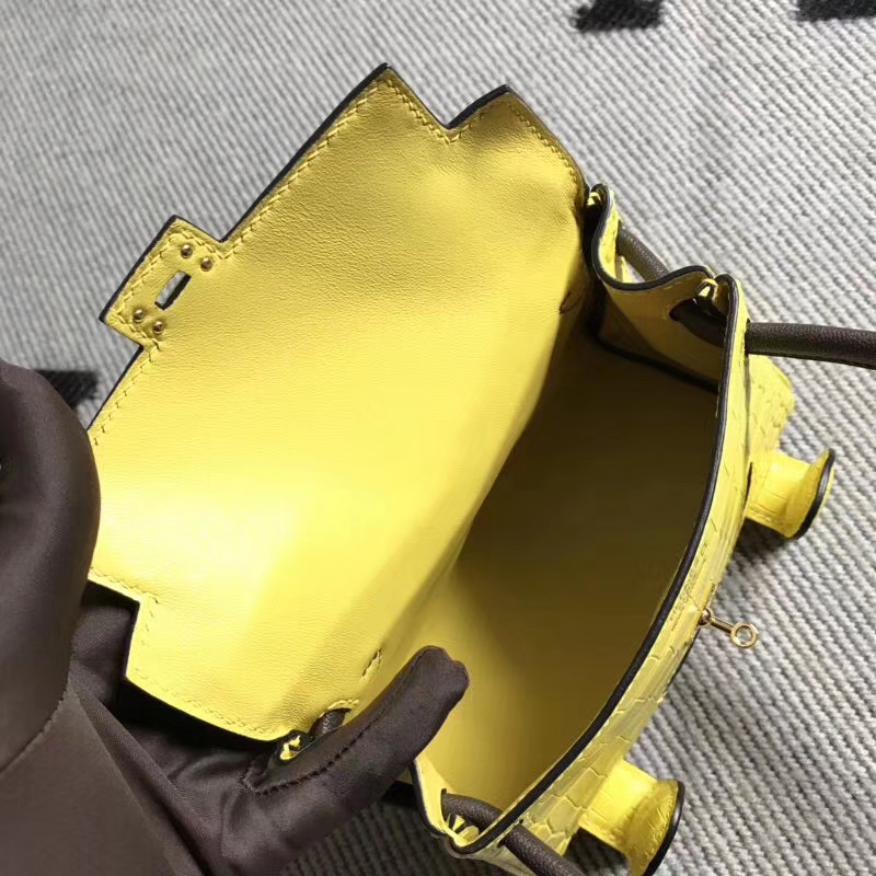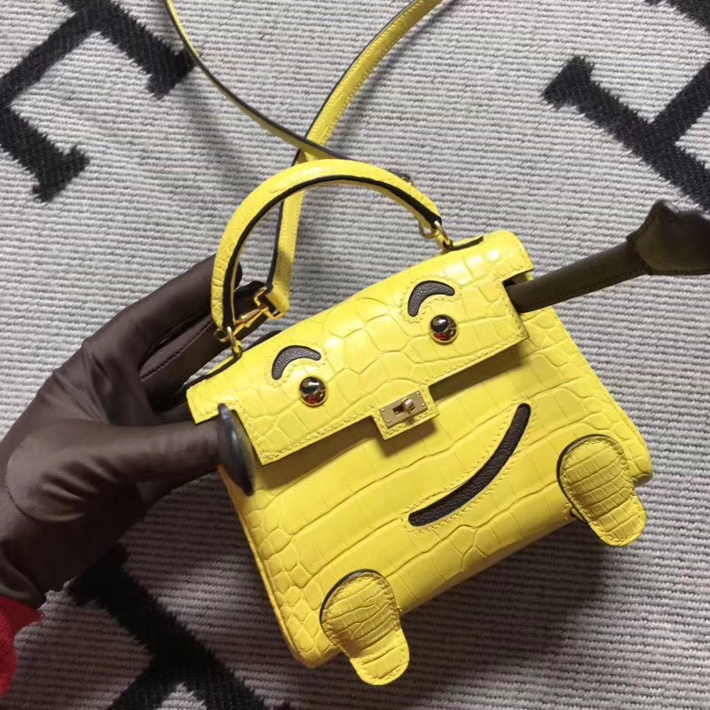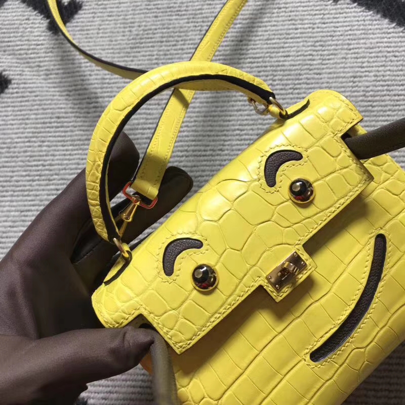 Hermès(爱马仕)Kelly doll 蛋黄色 雾面鳄鱼 原单品质 16cm 2019年4月28日 0 【鳄鱼世家】www.Eyubao.com Kelly 凯莉包 品牌:Hermès(爱马仕);类别:Kelly Doll;颜色:蛋黄色;材质:雾面鳄鱼皮;等级:顶级;附件:全套包装礼盒;功能:手提单肩包