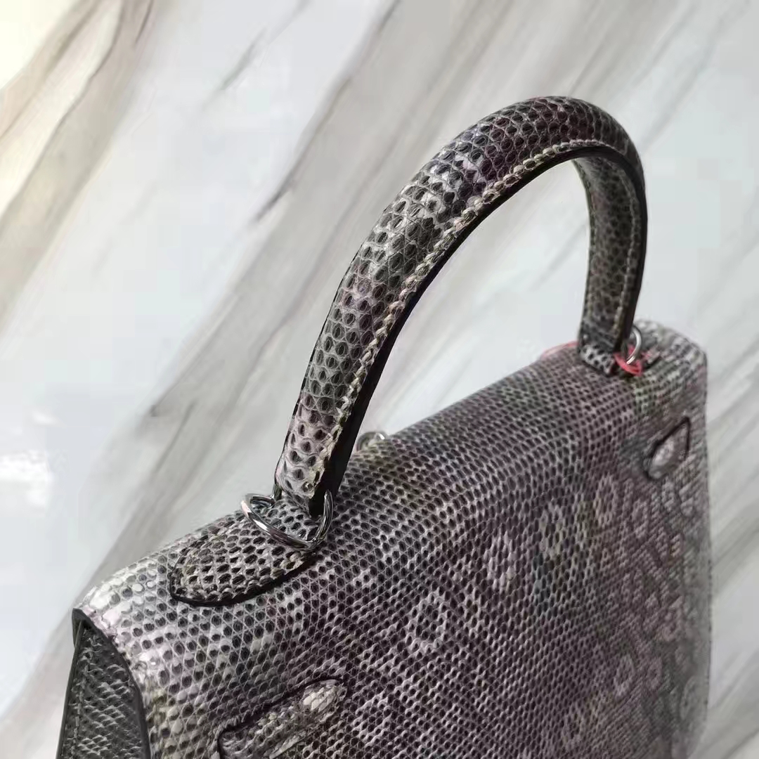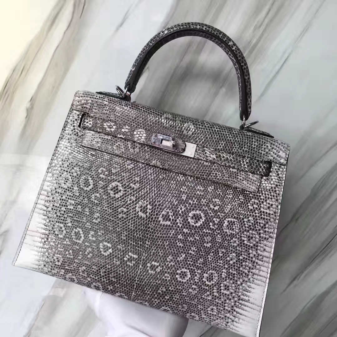 Hermès(爱马仕)Kelly凯莉包 Lizard 进口亮面蜥蜴 小喜马拉雅色 黑白色 银扣 25cm 2019年5月17日 0 【鳄鱼世家】www.Eyubao.com Kelly 25 Kelly 凯莉包 品牌:Hermès(爱马仕);类别:Kelly 凯莉包;颜色:喜马拉雅;材质:进口亮面蜥蜴皮;等级:顶级;附件:全套包装礼盒;尺寸:25cm;功能:手提单肩包