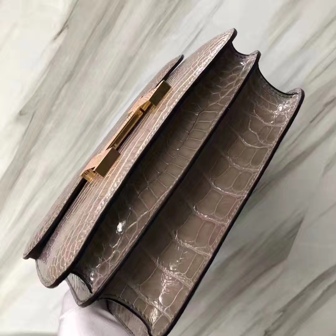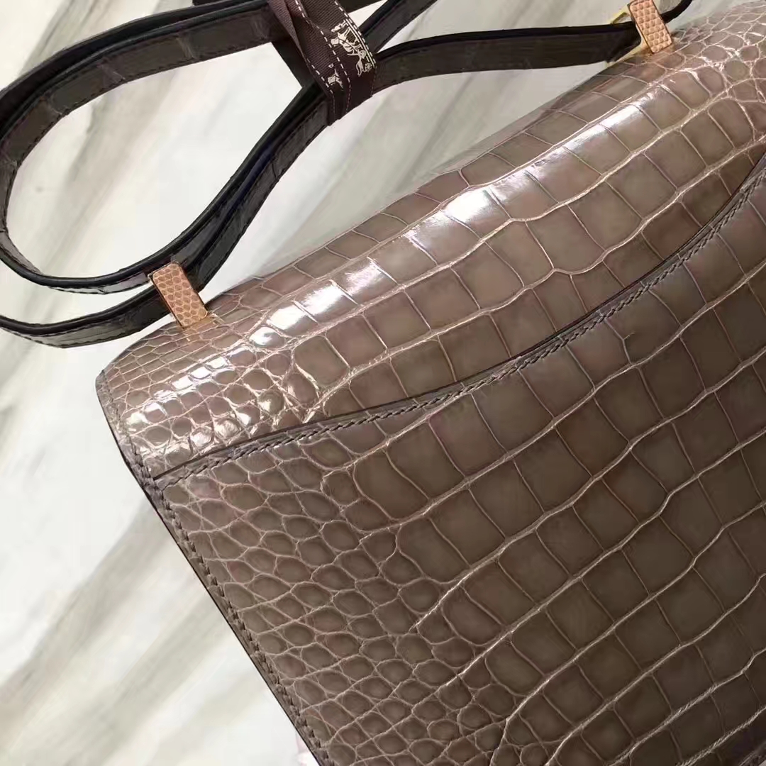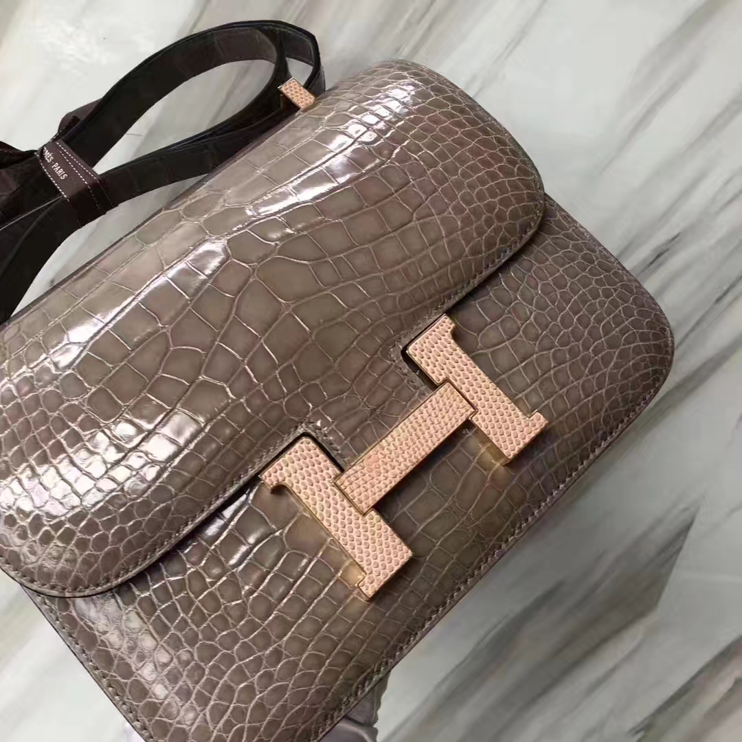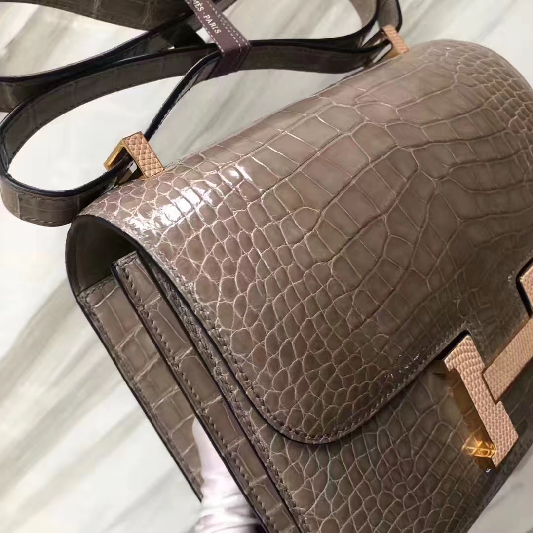 Hermès(爱马仕)Constance空姐包 shiny alligator crocodile 亮面澳洲美洲鳄 ck81斑鸠灰拼蜥蜴扣 23cm 2019年5月18日 0 【鳄鱼世家】www.Eyubao.com Constance 24 Constance 空姐包 品牌:Hermès(爱马仕);类别:Constance 空姐包;颜色:斑鸠灰拼蜥蜴扣;材质:亮面澳洲美洲鳄;等级:顶级;附件:全套包装礼盒;尺寸:23cm;功能:单肩背包