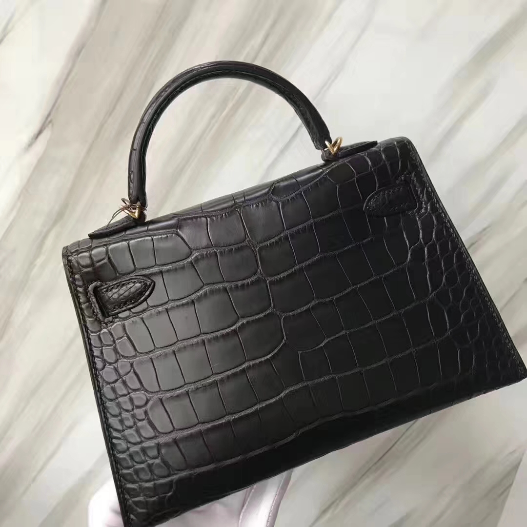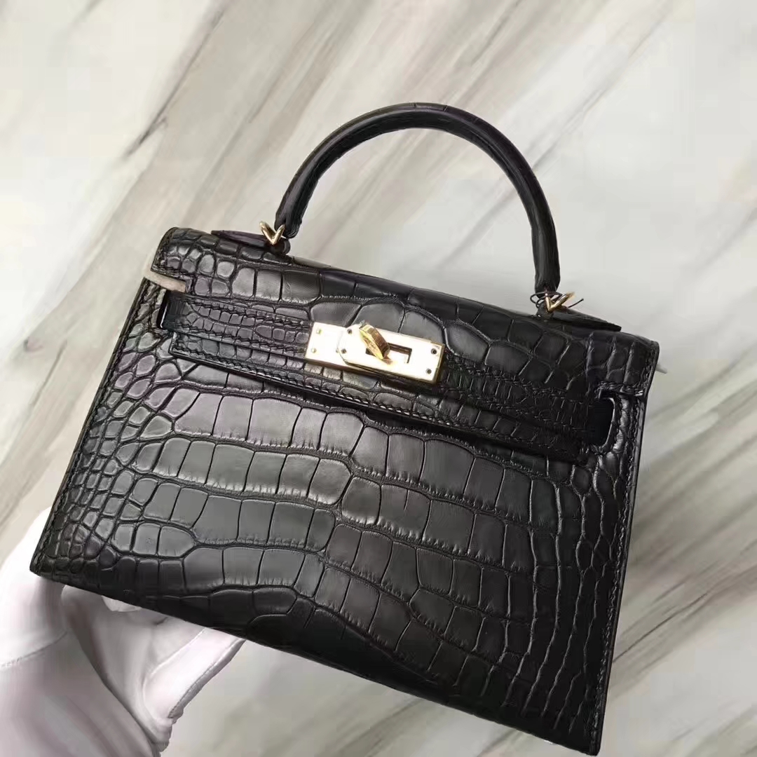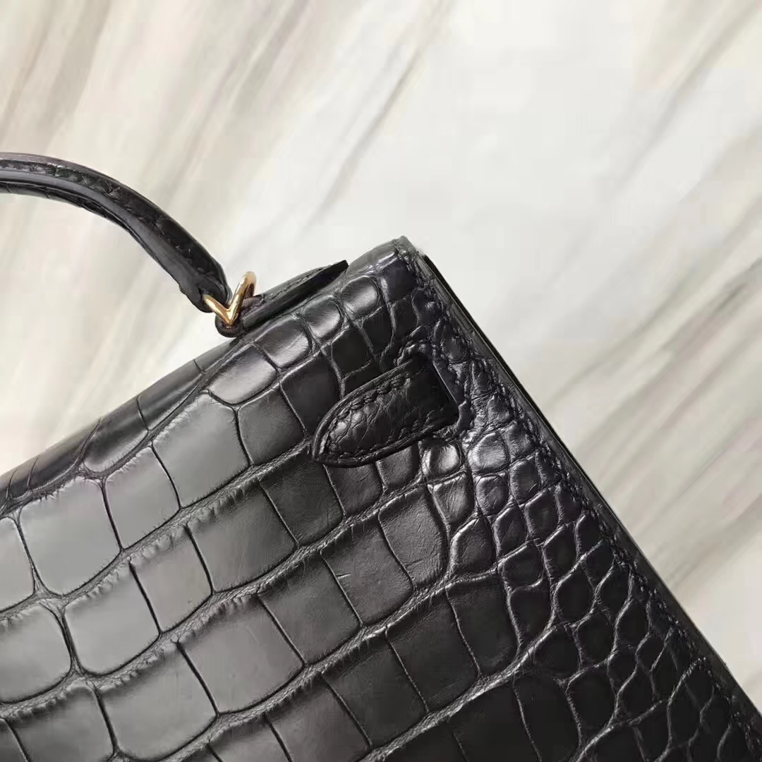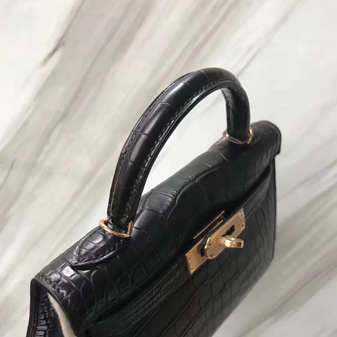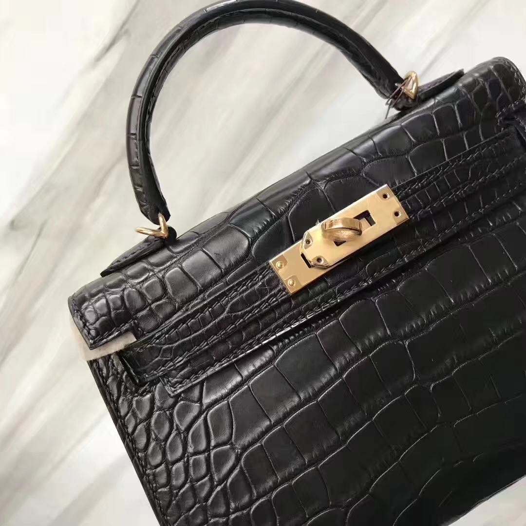 Hermès(爱马仕)Minikelly ll Alligator matt 雾面鳄鱼 ck89 黑色 noir 金扣 现货 2019年5月18日 0 【鳄鱼世家】www.Eyubao.com Mini Kelly 2 Mini Kelly 迷你凯莉 品牌:Hermès(爱马仕);类别:Mini Kelly迷你凯莉包;颜色: 黑色;材质:雾面鳄鱼;等级:顶级;附件:全套包装礼盒;尺寸:18cm;功能:手提单肩包
