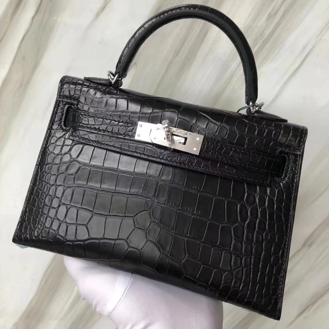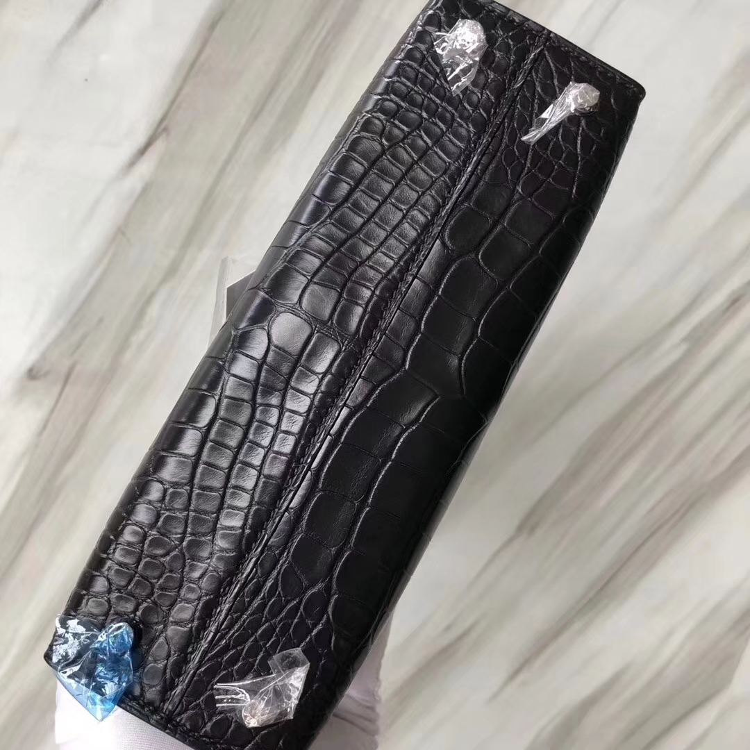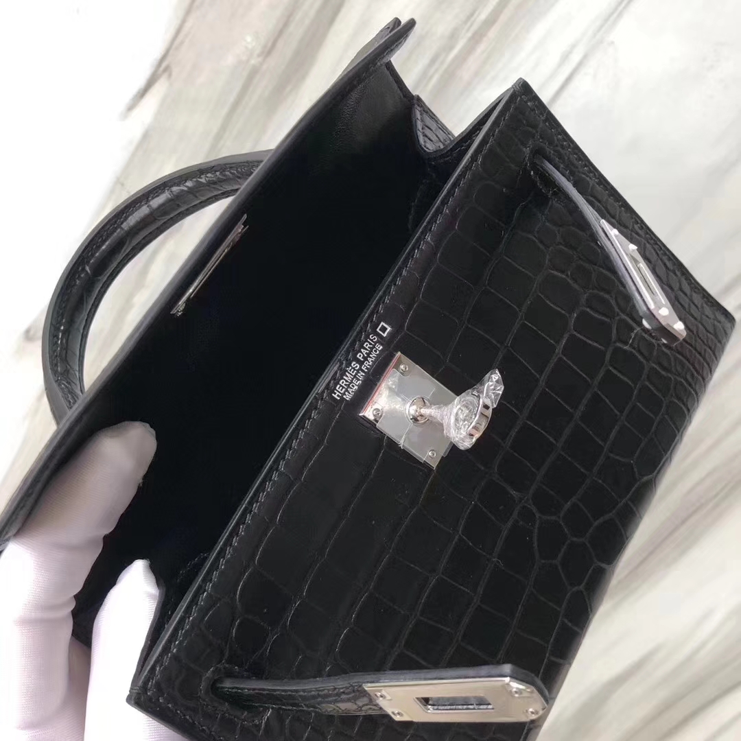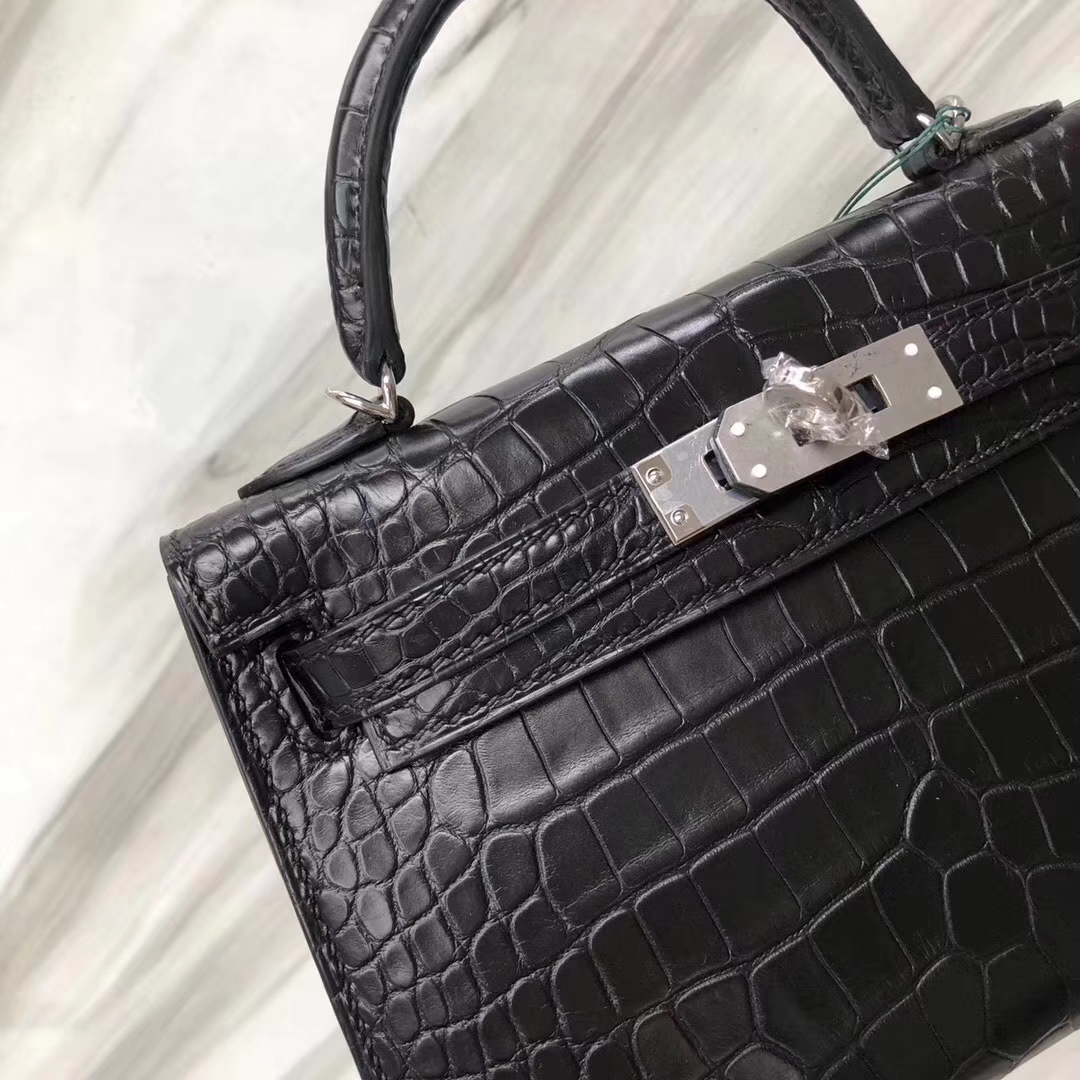 Hermès(爱马仕)Minikelly ll Alligator matt 雾面鳄鱼 ck89 黑色 银扣 超美现货 2019年5月21日 0 【鳄鱼世家】www.Eyubao.com Mini Kelly 2 Mini Kelly 迷你凯莉 品牌:Hermès(爱马仕);类别:Mini Kelly迷你凯莉包;颜色: 黑色;材质:雾面鳄鱼;等级:顶级;附件:全套包装礼盒;尺寸:18cm;功能:手提单肩包