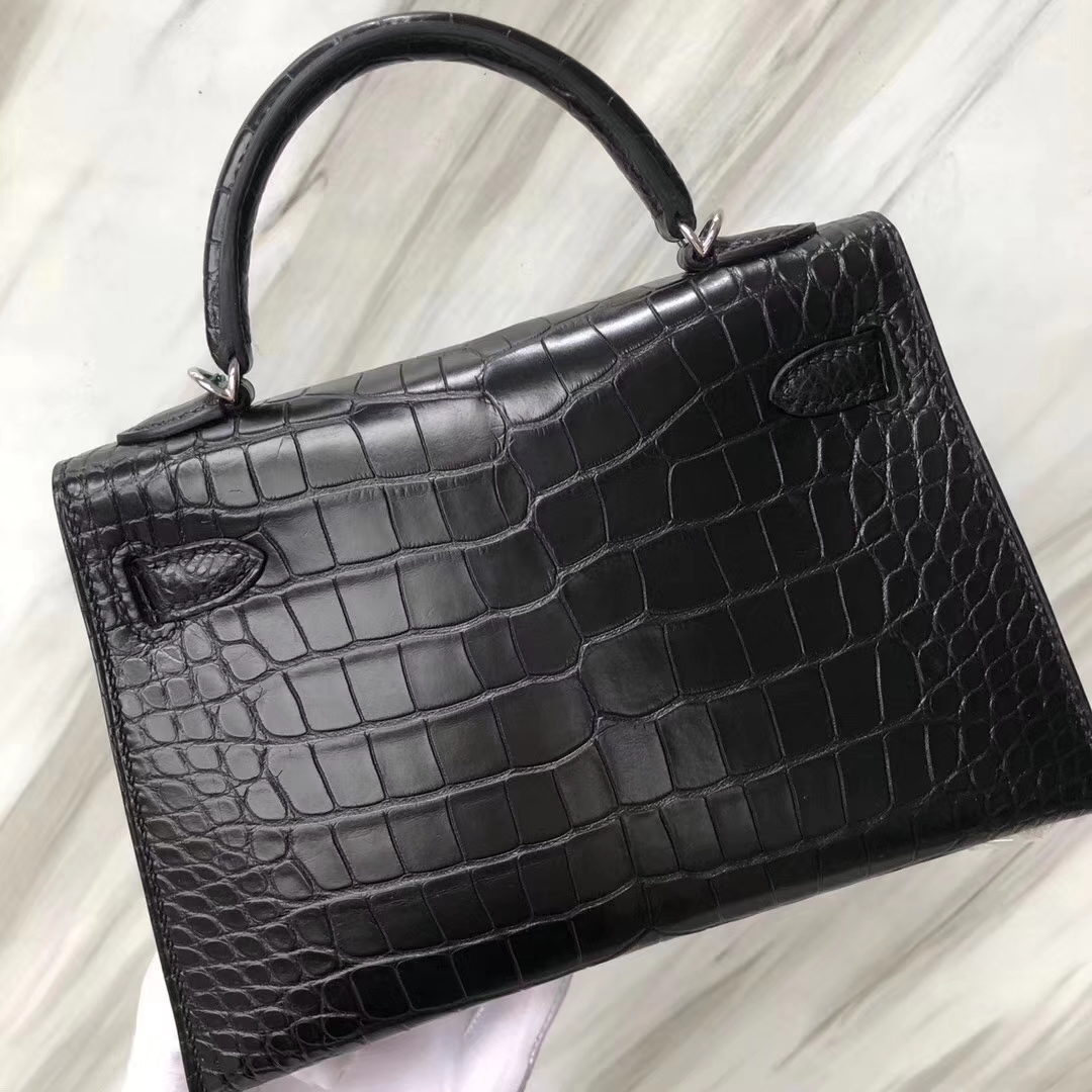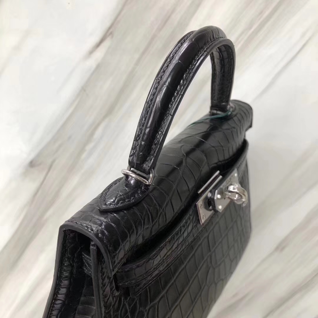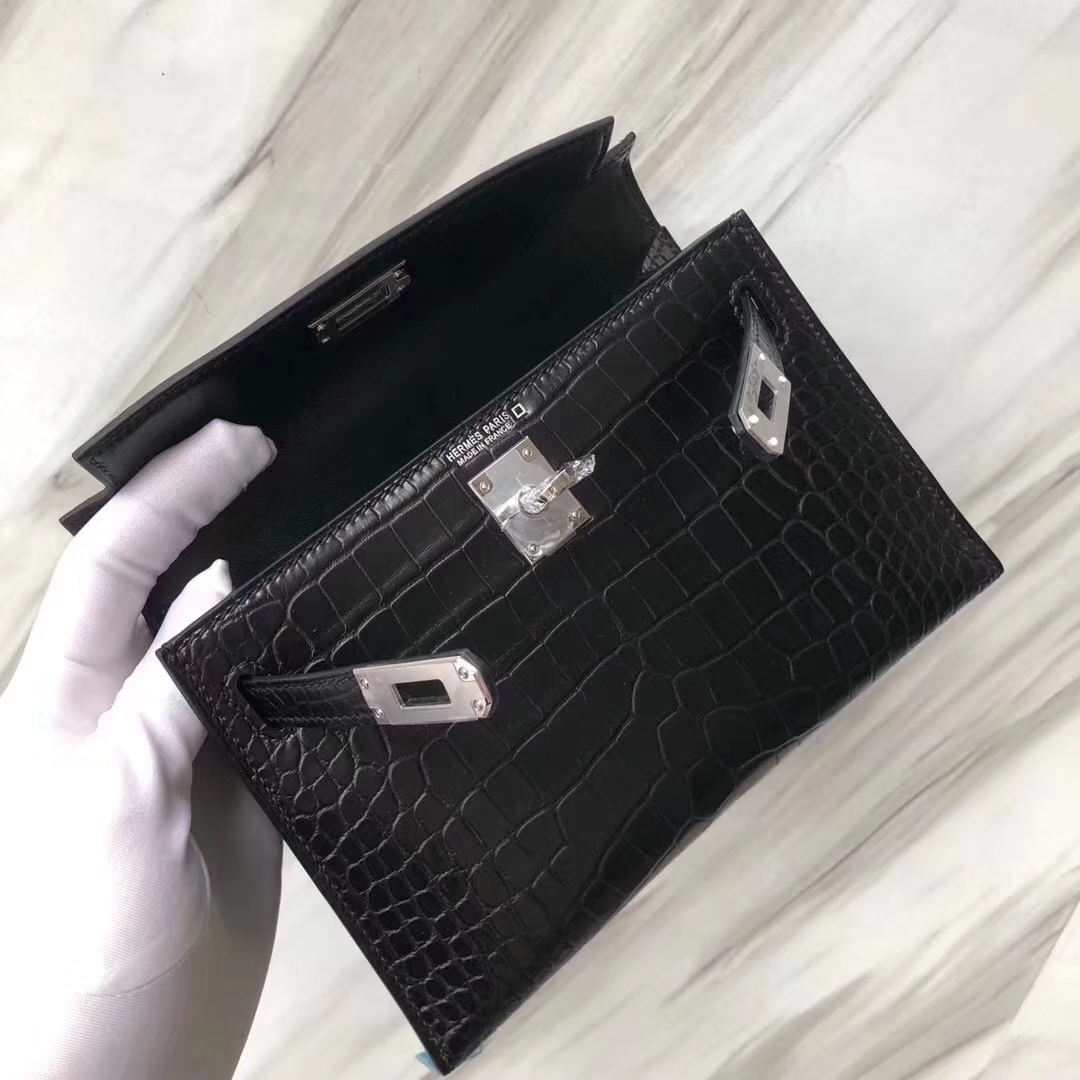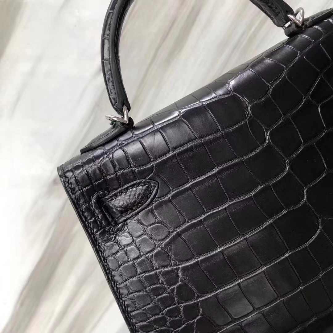 Hermès(爱马仕)Minikelly ll Alligator matt 雾面鳄鱼 ck89 黑色 银扣 超美现货 2019年5月21日 0 【鳄鱼世家】www.Eyubao.com Mini Kelly 2 Mini Kelly 迷你凯莉 品牌:Hermès(爱马仕);类别:Mini Kelly迷你凯莉包;颜色: 黑色;材质:雾面鳄鱼;等级:顶级;附件:全套包装礼盒;尺寸:18cm;功能:手提单肩包