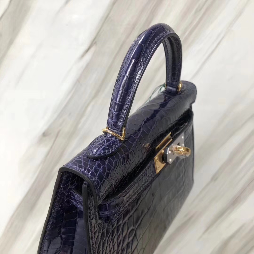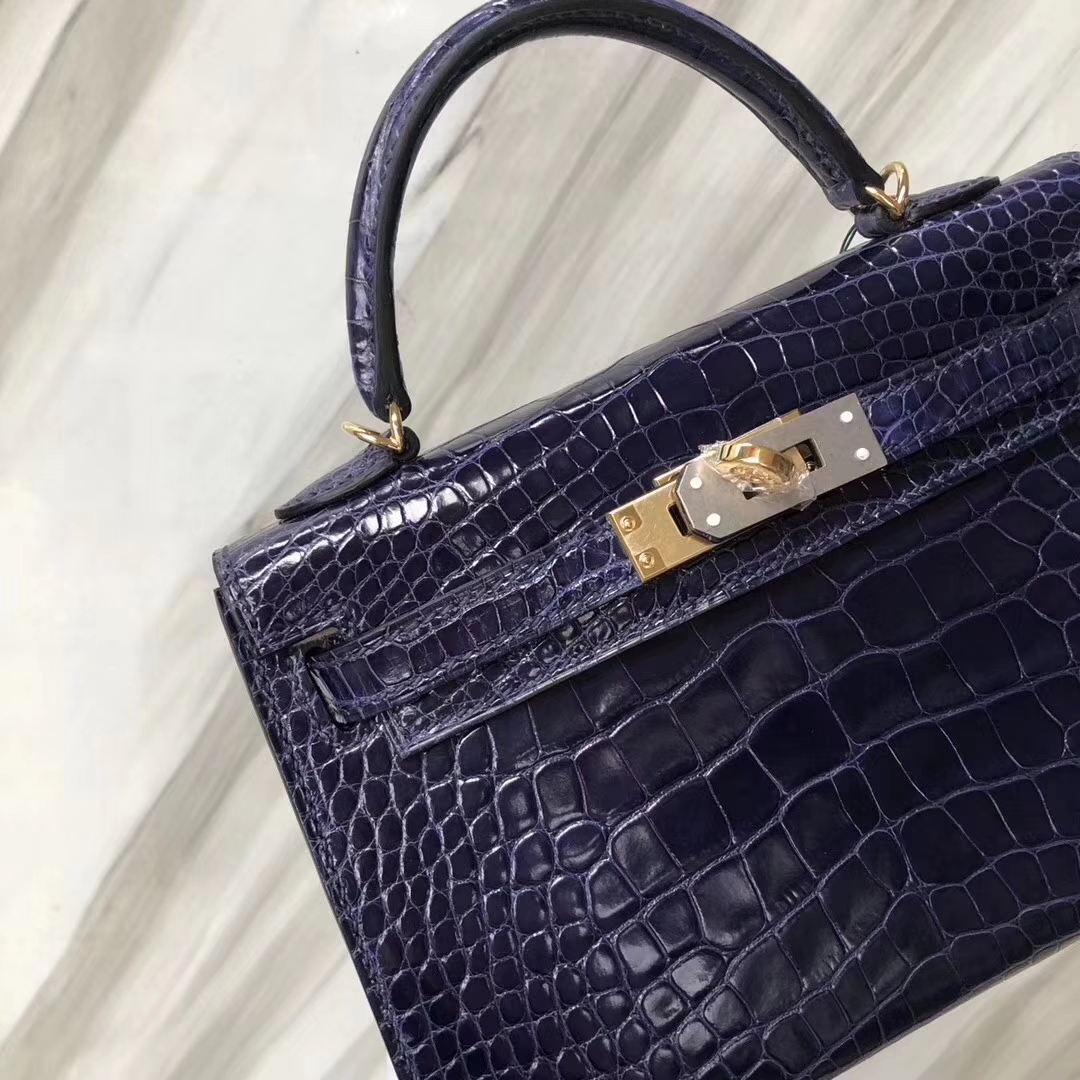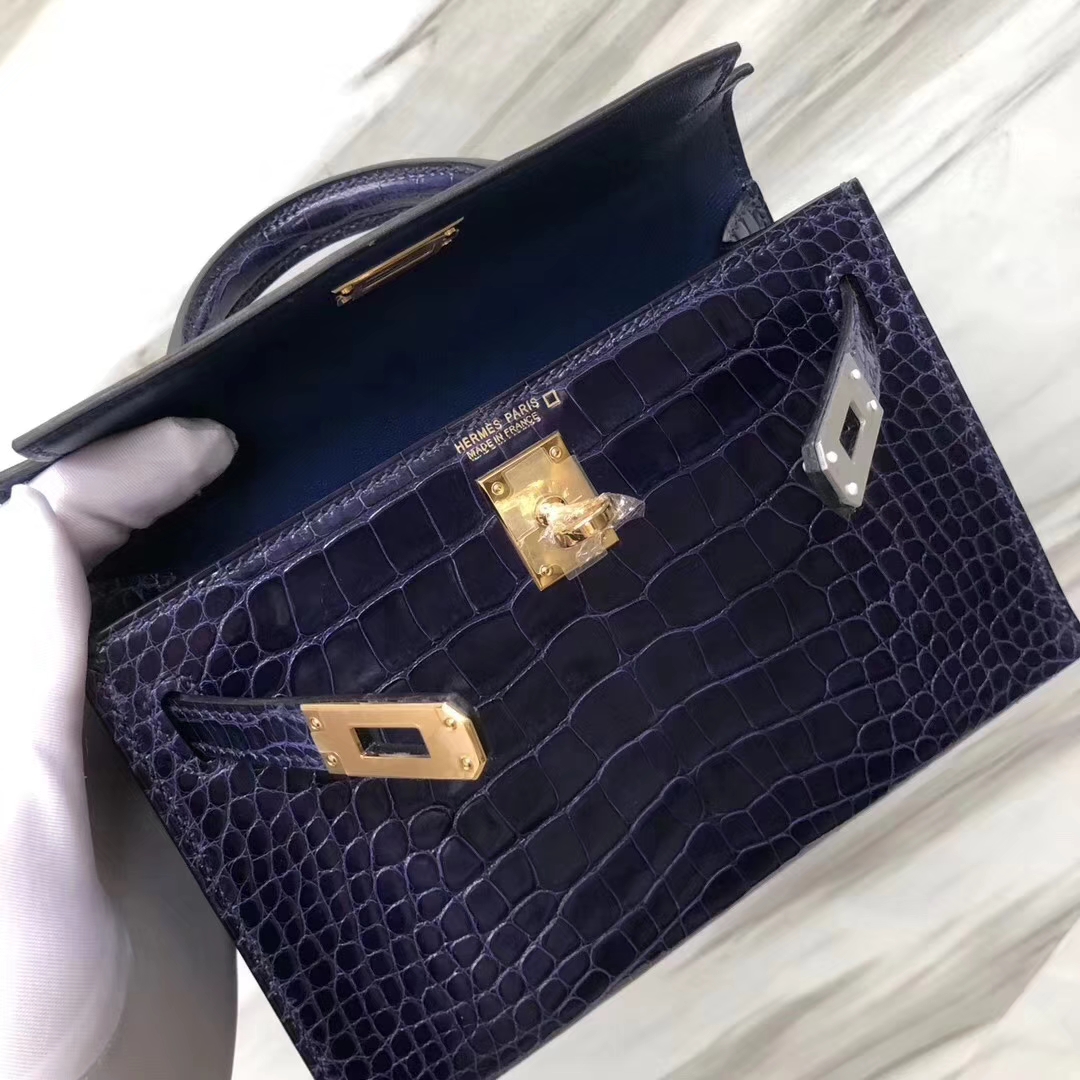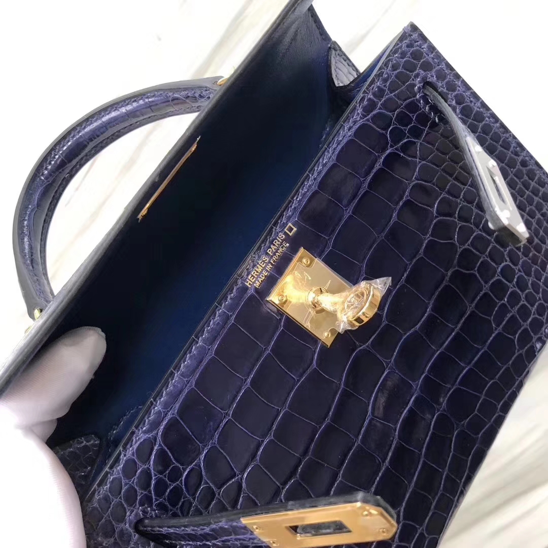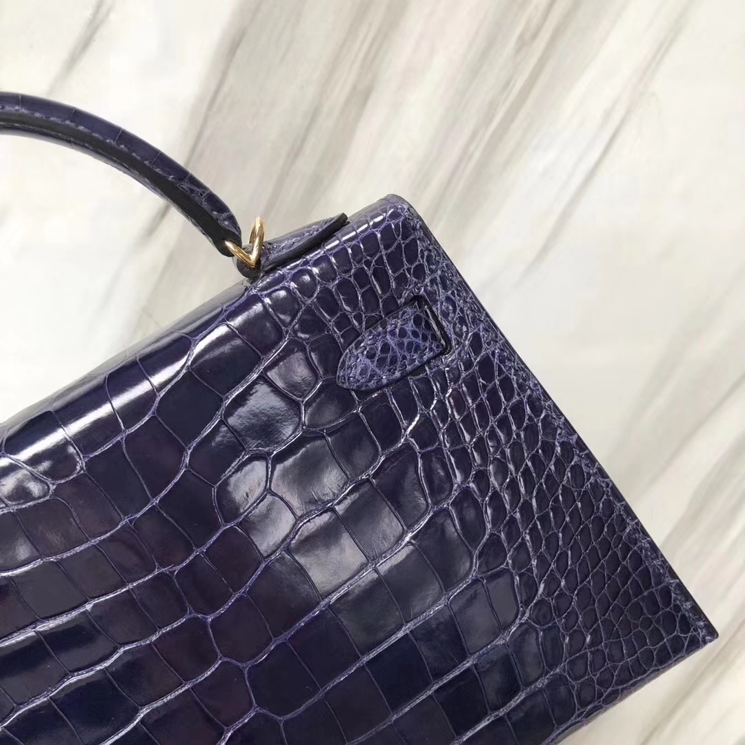 Hermès(爱马仕)Minikelly ll Alligator shiny 亮面鳄鱼 m3 墨水蓝 金扣 超美现货 2019年5月21日 0 【鳄鱼世家】www.Eyubao.com Mini Kelly 2 Mini Kelly 迷你凯莉 品牌:Hermès(爱马仕);类别:Mini Kelly迷你凯莉包;颜色:墨水蓝;材质:亮面鳄鱼;等级:顶级;附件:全套包装礼盒;尺寸:18cm;功能:手提单肩包