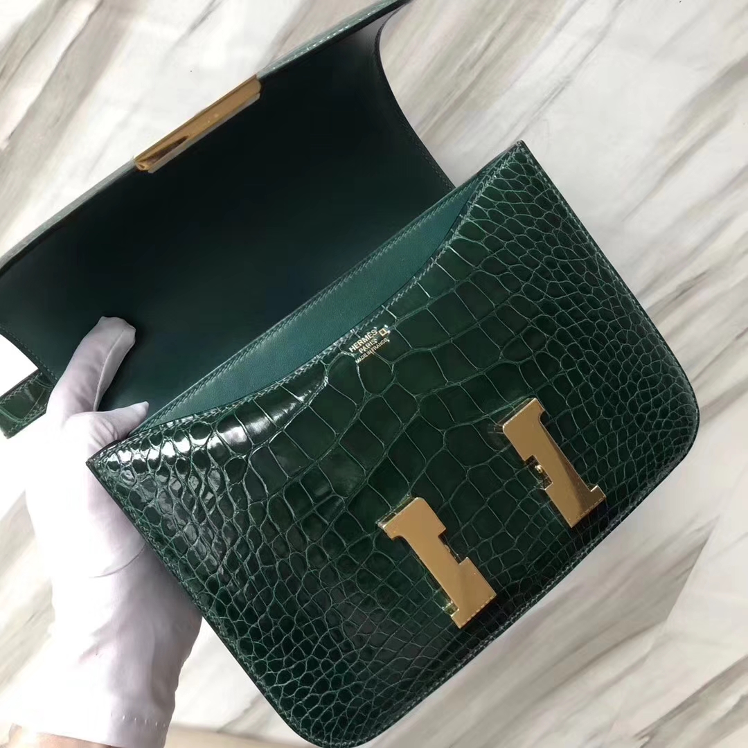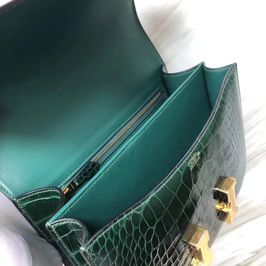 Hermès(爱马仕)Constance24cm Alligator shiny 亮面鳄鱼 ck67 祖母绿 金扣 现货 2019年5月21日 0 【鳄鱼世家】www.Eyubao.com Constance 24 Constance 空姐包 品牌:Hermès(爱马仕);类别:Constance 空姐包;颜色:祖母绿;材质:亮面鳄鱼;等级:顶级;附件:全套包装礼盒;尺寸:24cm;功能:单肩背包