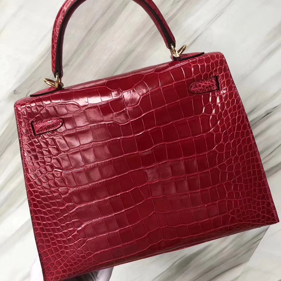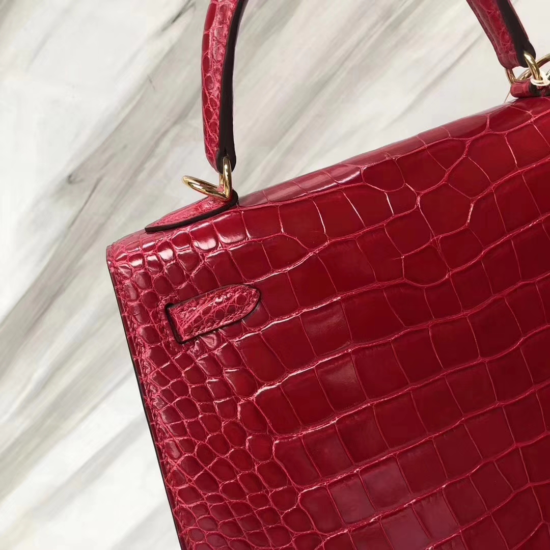 Hermès(爱马仕)Kelly凯莉包 Alligator shiny 亮面鳄鱼 ck95 法拉利红 Braise 金扣 25cm 2019年5月24日 0 【鳄鱼世家】www.Eyubao.com Kelly 25 Kelly 凯莉包 品牌:Hermès(爱马仕);类别:Kelly 凯莉包;颜色:法拉利红;材质:亮面鳄鱼;等级:顶级;附件:全套包装礼盒;尺寸:25cm;功能:手提单肩包