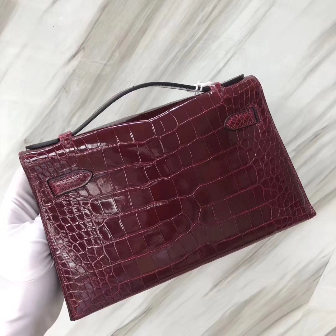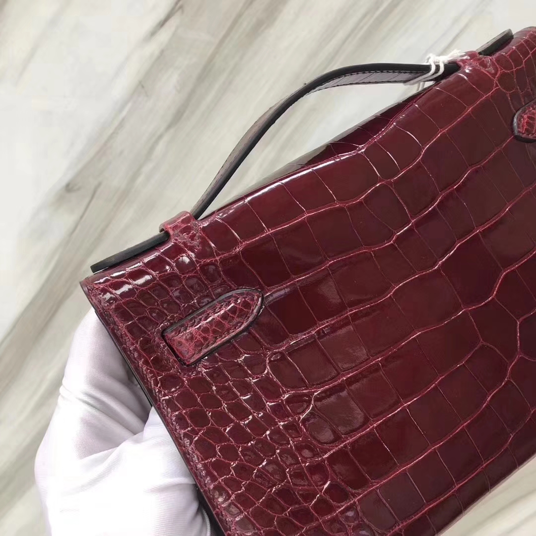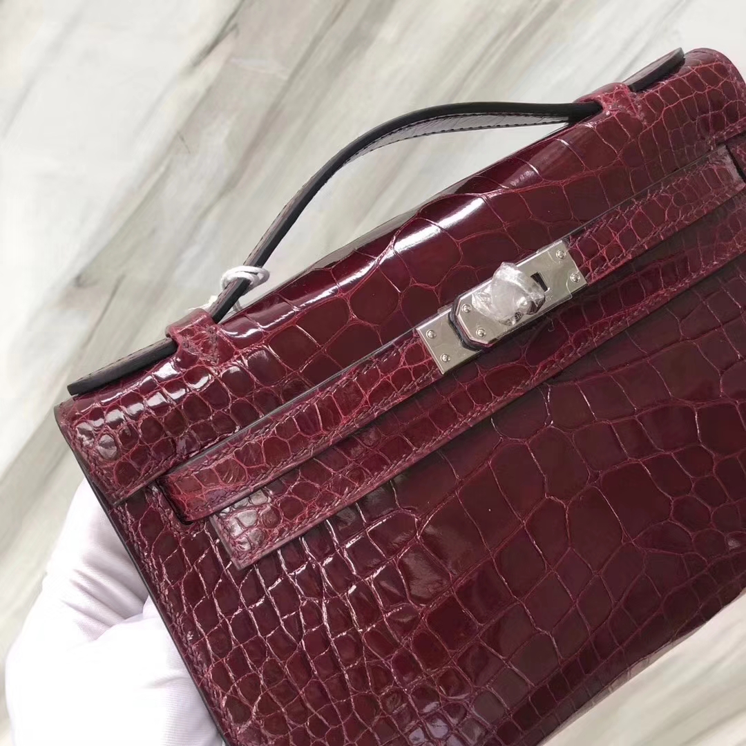 Hermès(爱马仕)Mini Kelly 亮面框框美洲鳄 F5勃艮第酒红 顶级工艺 蜡线全手工 银扣 22cm 2019年5月24日 0 【鳄鱼世家】www.Eyubao.com Mini Kelly 1 Mini Kelly 迷你凯莉 品牌:Hermès(爱马仕);类别:Mini Kelly迷你凯莉包;颜色: 勃艮第酒红;材质:亮面框框美洲鳄;等级:顶级;附件:全套包装礼盒;尺寸:22cm;功能:手提单肩包