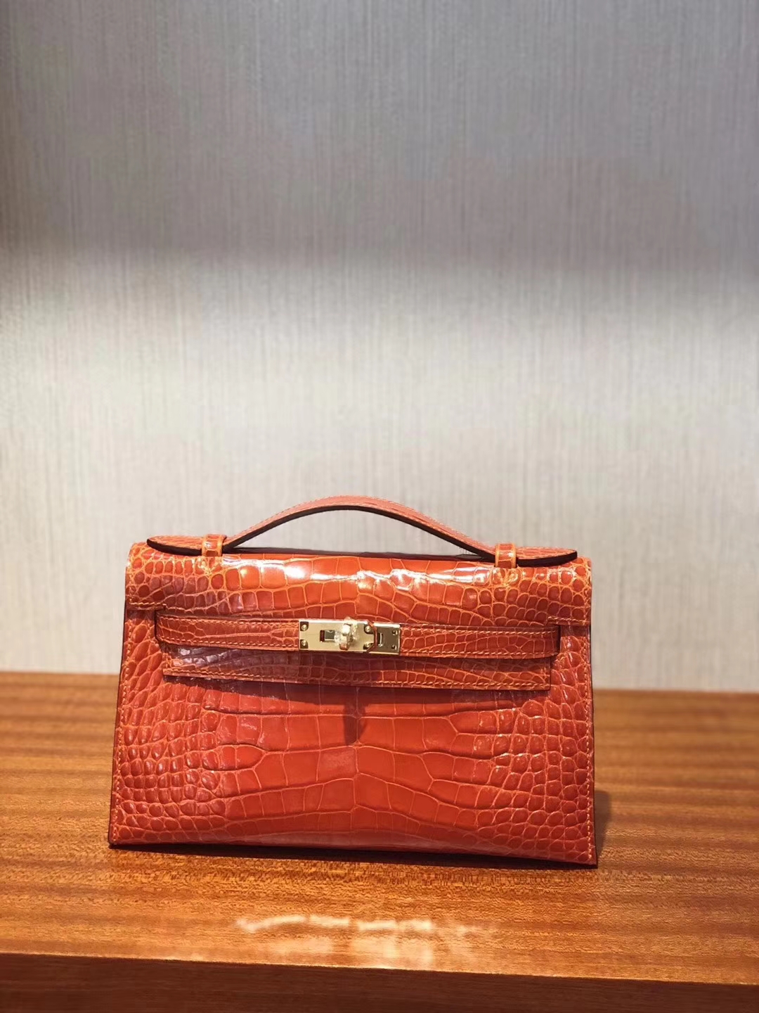 Mini Kelly 1 Mini Kelly 迷你凯莉 Hermès(爱马仕)Minikelly pochette 22cm Alligator shiny 亮面 8V 罂粟橘 金扣 2018年10月26日 0
