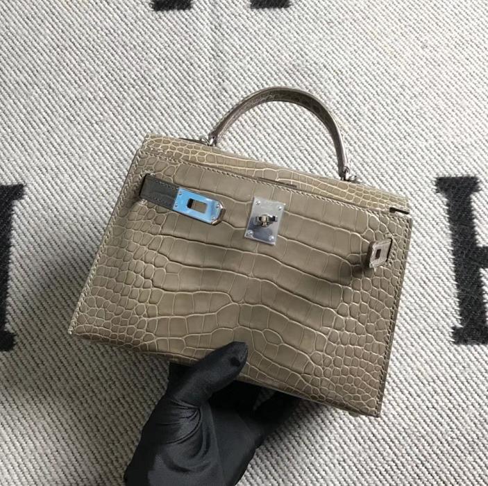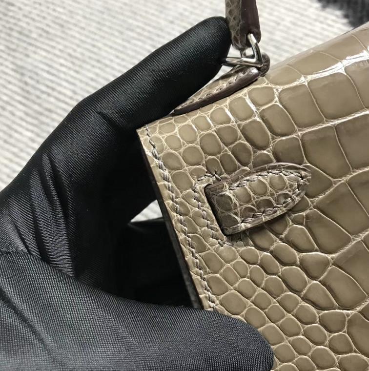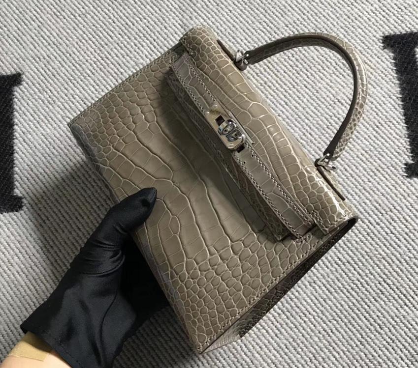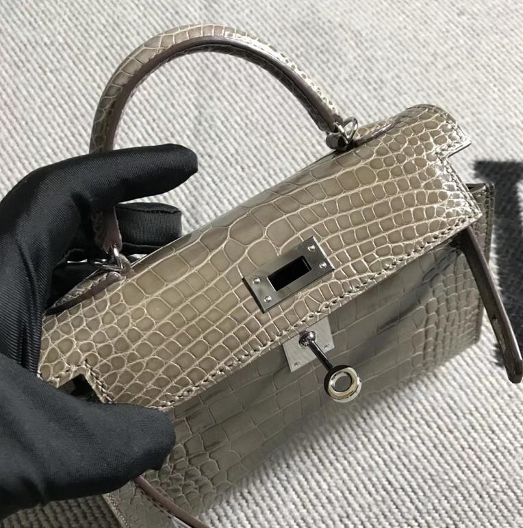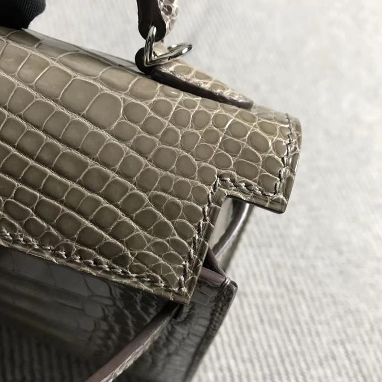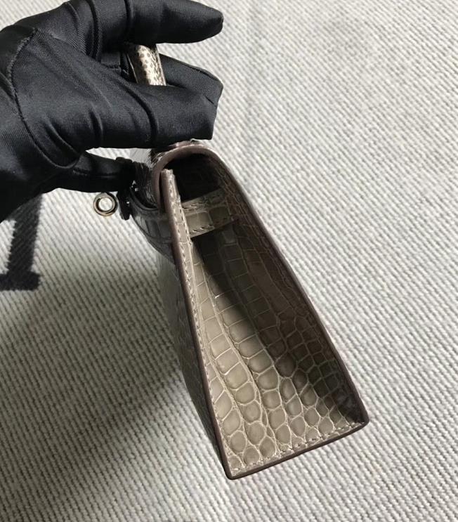 Hermès(爱马仕)mini 迷你凯莉 大象灰 美洲鳄鱼方块 银扣 2代 2019年5月27日 0 【鳄鱼世家】www.Eyubao.com Mini Kelly 2 Mini Kelly 迷你凯莉 品牌:Hermès(爱马仕);类别:Mini Kelly迷你凯莉包;颜色:大象灰;材质:美洲鳄鱼方块;等级:顶级;附件:全套包装礼盒;尺寸:18cm;功能:手提单肩包