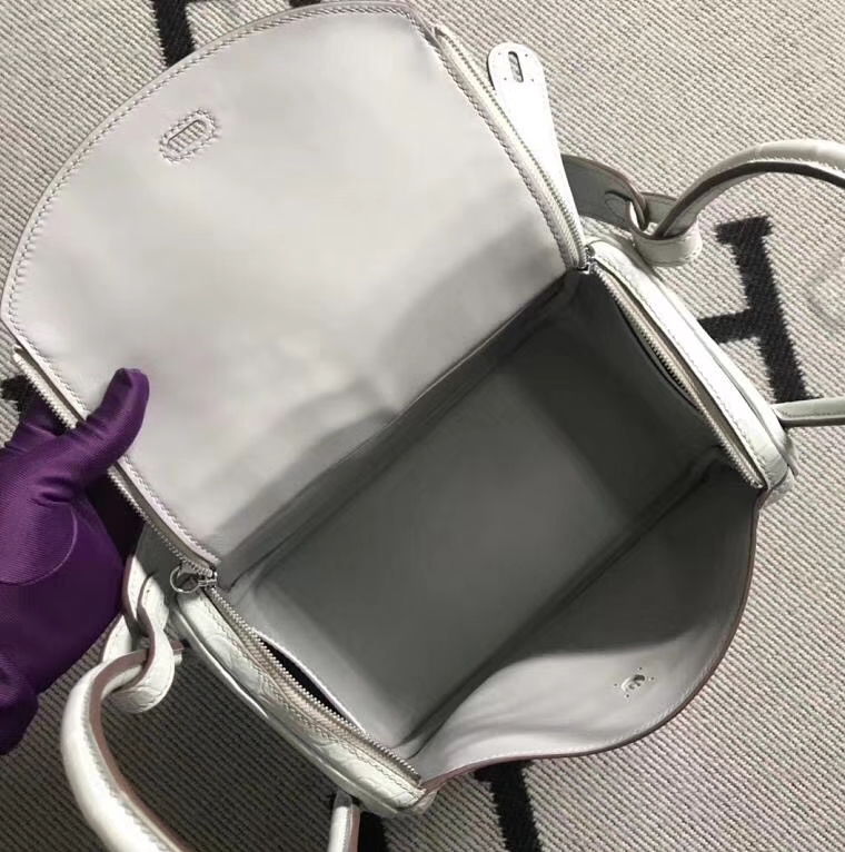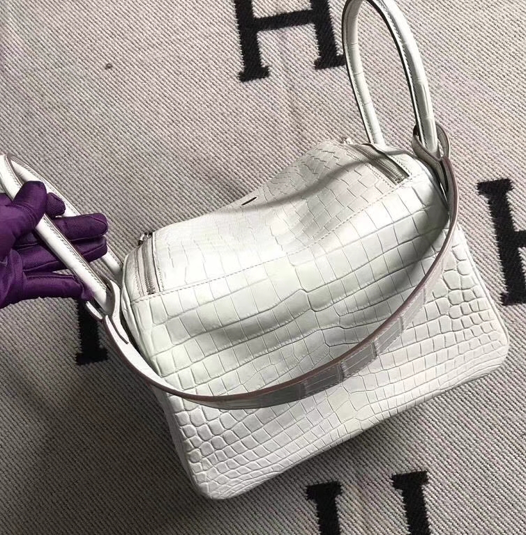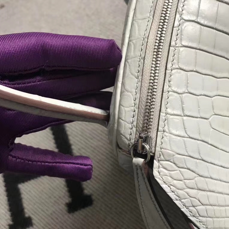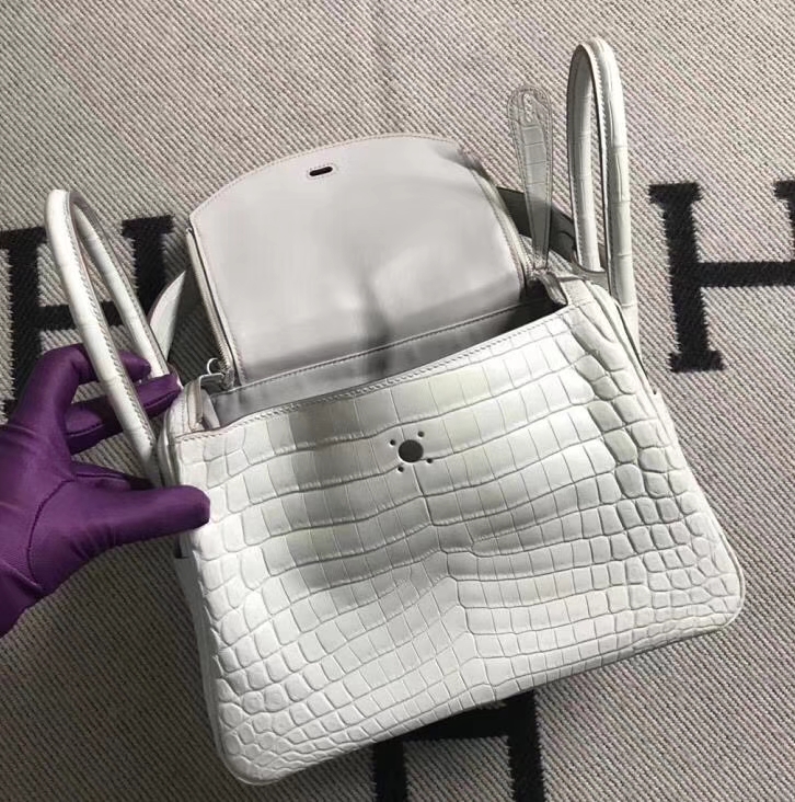 Hermès(爱马仕)Lindy琳迪包 雾面鳄鱼皮珍珠灰 银扣 26cm 2019年5月28日 0 【鳄鱼世家】www.Eyubao.com Lindy 26 Lindy 琳迪包 品牌:Hermès(爱马仕);类别:Lindy 琳迪包;颜色:珍珠灰;材质:雾面鳄鱼皮;等级:顶级;附件:全套包装礼盒;尺寸:26cm;功能:手提单肩包