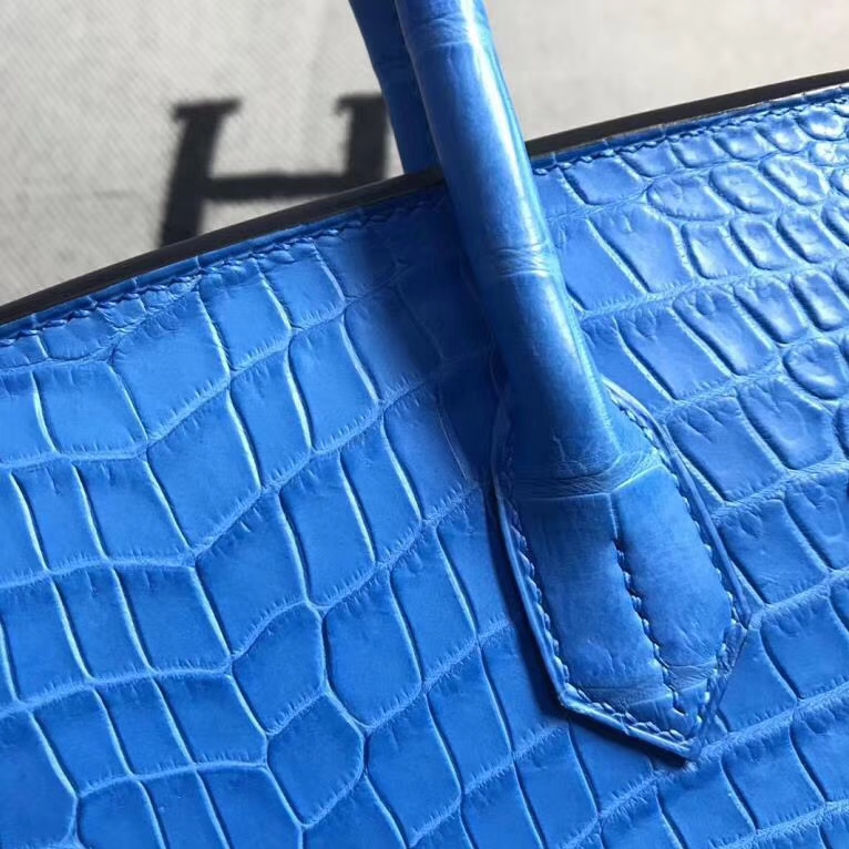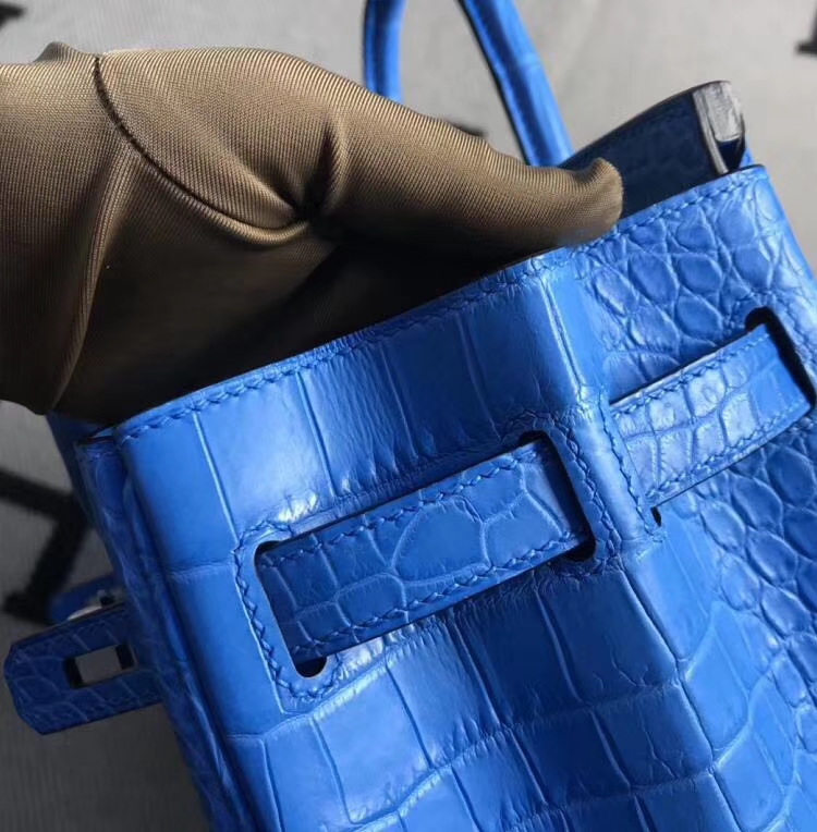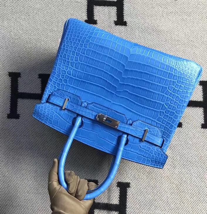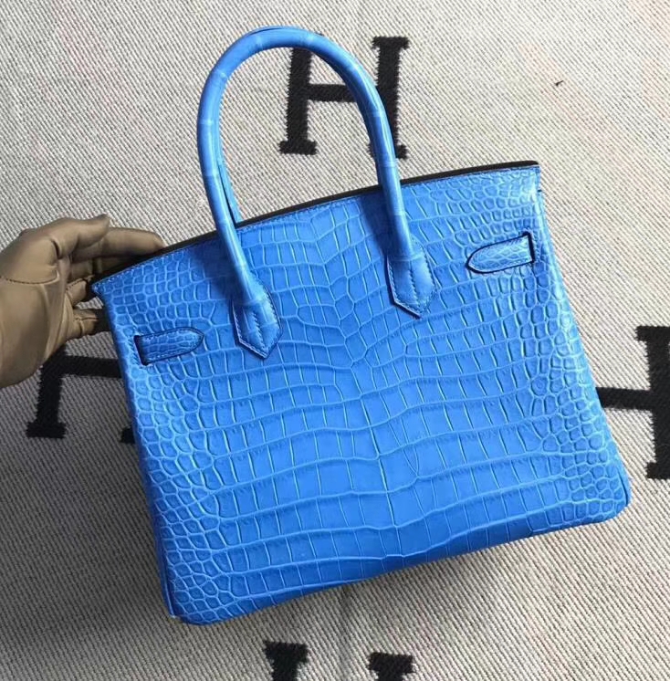 Hermès(爱马仕)Birkin铂金包 亚光湾鳄鱼皮 天空蓝 银扣 30cm 2019年5月28日 0 【鳄鱼世家】www.Eyubao.com Birkin 30 Birkin 铂金包 品牌:Hermès(爱马仕);类别:Birkin 铂金包;颜色:天空蓝;材质:亚光湾鳄鱼皮;等级:顶级;附件:全套包装礼盒;尺寸:30cm;功能:手提单肩包