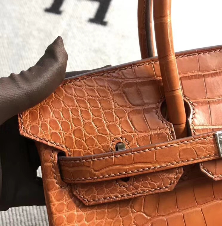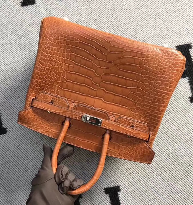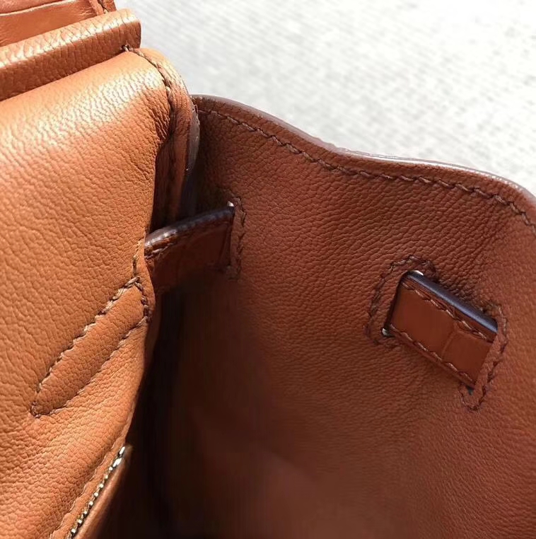 Hermès(爱马仕)Birkin铂金包 雾面美洲鳄鱼皮 土黄色 银扣 25cm 2019年5月28日 0 【鳄鱼世家】www.Eyubao.com Birkin 25 Birkin 铂金包 品牌:Hermès(爱马仕);类别:Birkin 铂金包;颜色:土黄色;材质:雾面美洲鳄鱼皮;等级:顶级;附件:全套包装礼盒;尺寸:25cm;功能:手提单肩包