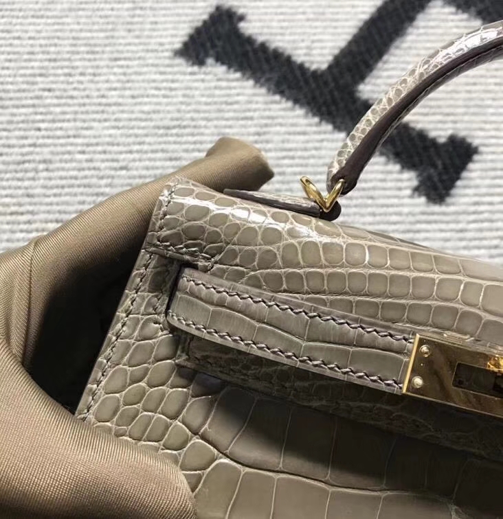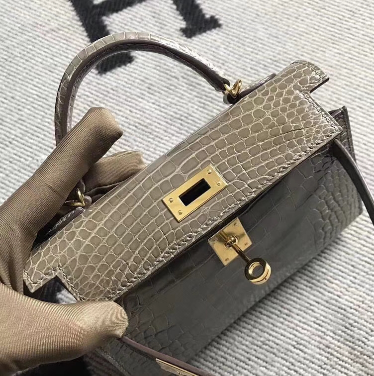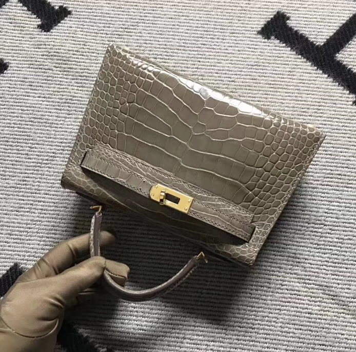 Hermès(爱马仕)minikelly 亮面鳄鱼皮 大象灰 金扣 2代 2019年5月28日 0 【鳄鱼世家】www.Eyubao.com Mini Kelly 2 Mini Kelly 迷你凯莉 品牌:Hermès(爱马仕);类别:Mini Kelly迷你凯莉包;颜色:大象灰;材质:亮面鳄鱼皮;等级:顶级;附件:全套包装礼盒;尺寸:18cm;功能:手提单肩包