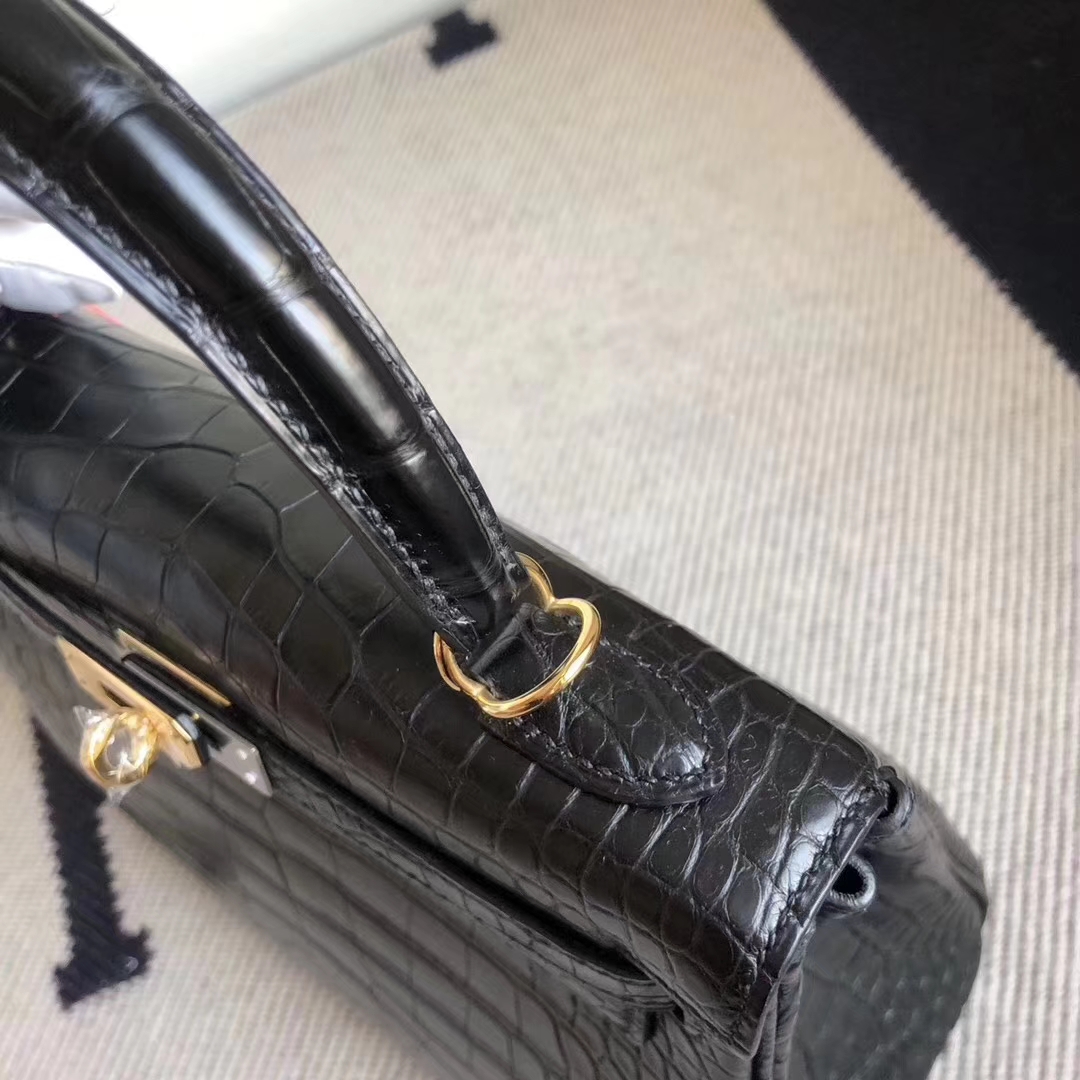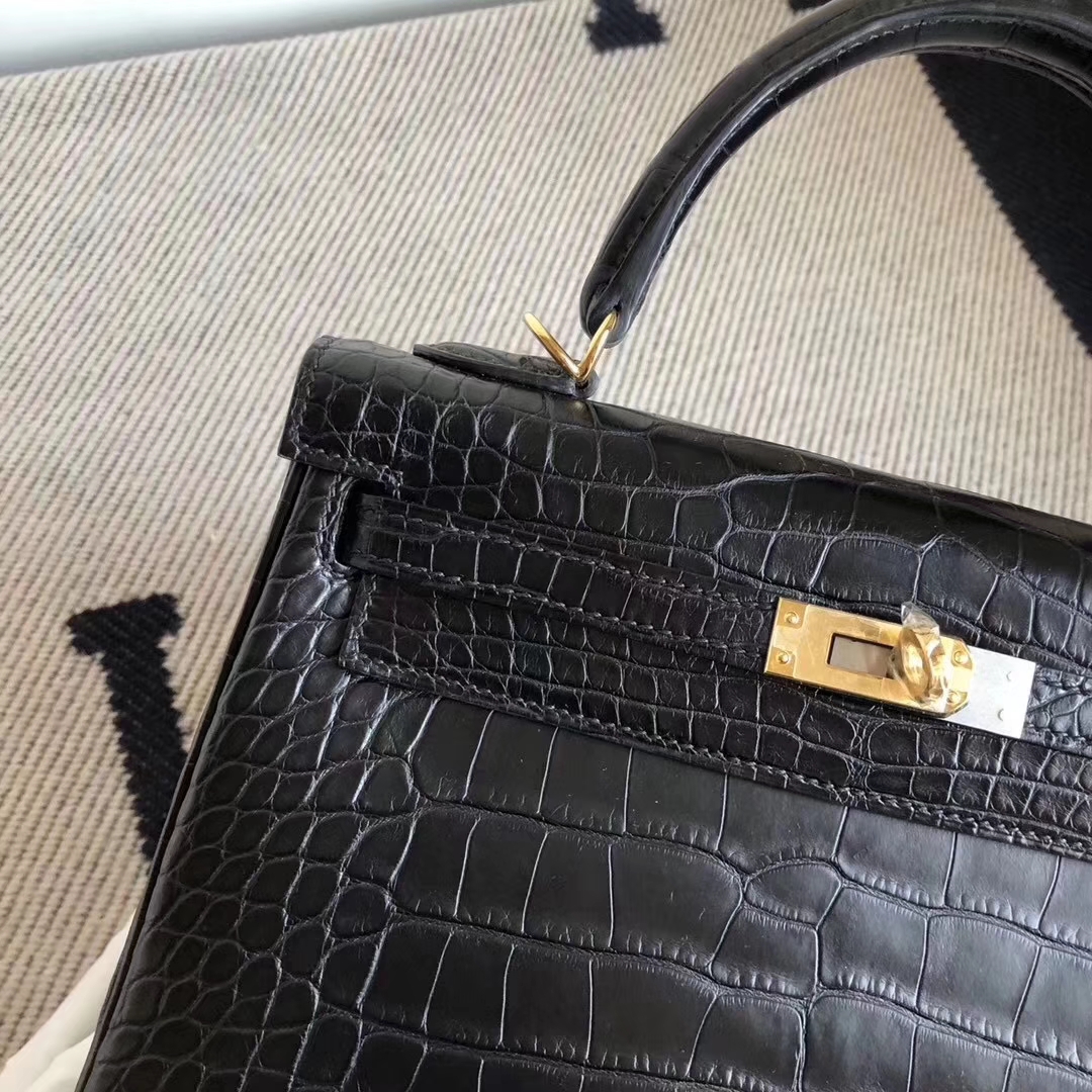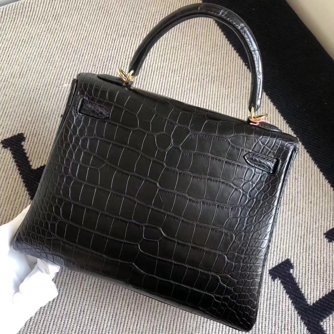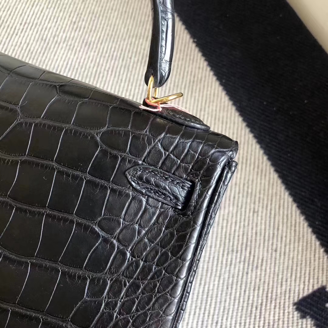 Hermès(爱马仕)Kelly Alligator matt 雾面鳄鱼 ck89 黑色 noir 金扣 顶级手缝 25cm 现货 2019年6月6日 0 【鳄鱼世家】www.Eyubao.com Kelly 25 Kelly 凯莉包 品牌:Hermès(爱马仕);类别:Kelly 凯莉包;颜色:黑色;材质:雾面鳄鱼;等级:顶级;附件:全套包装礼盒;尺寸:25cm;功能:手提单肩包