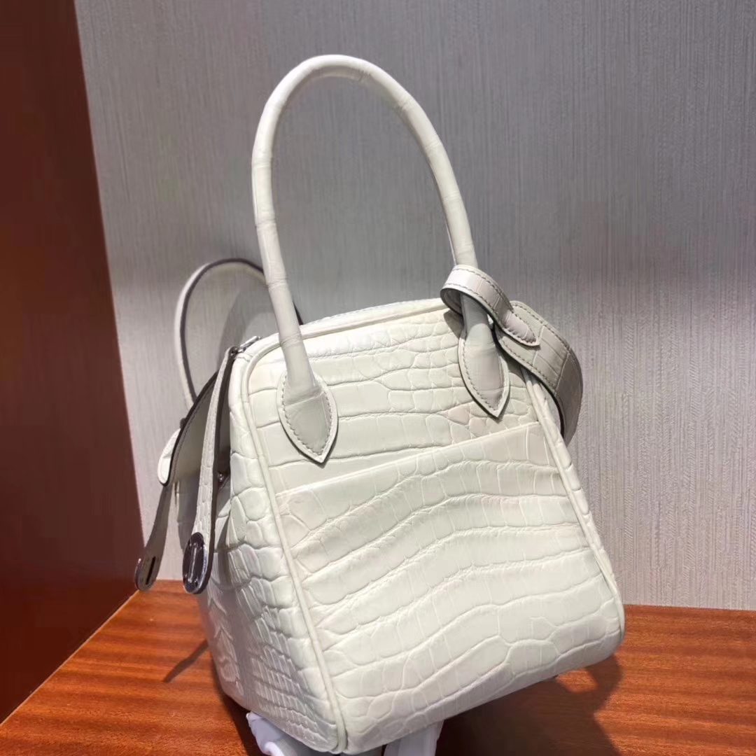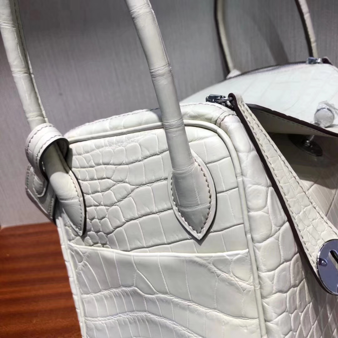 Hermès(爱马仕)Lindy 雾面两点尼罗鳄 8L奶油白 顶级工艺 蜡线全手工 银扣 26cm 2019年6月6日 0 【鳄鱼世家】www.Eyubao.com Lindy 26 Lindy 琳迪包 品牌:Hermès(爱马仕);类别:Lindy 琳迪包;颜色:奶油白;材质:雾面两点尼罗鳄;等级:顶级;附件:全套包装礼盒;尺寸:26cm;功能:手提单肩包