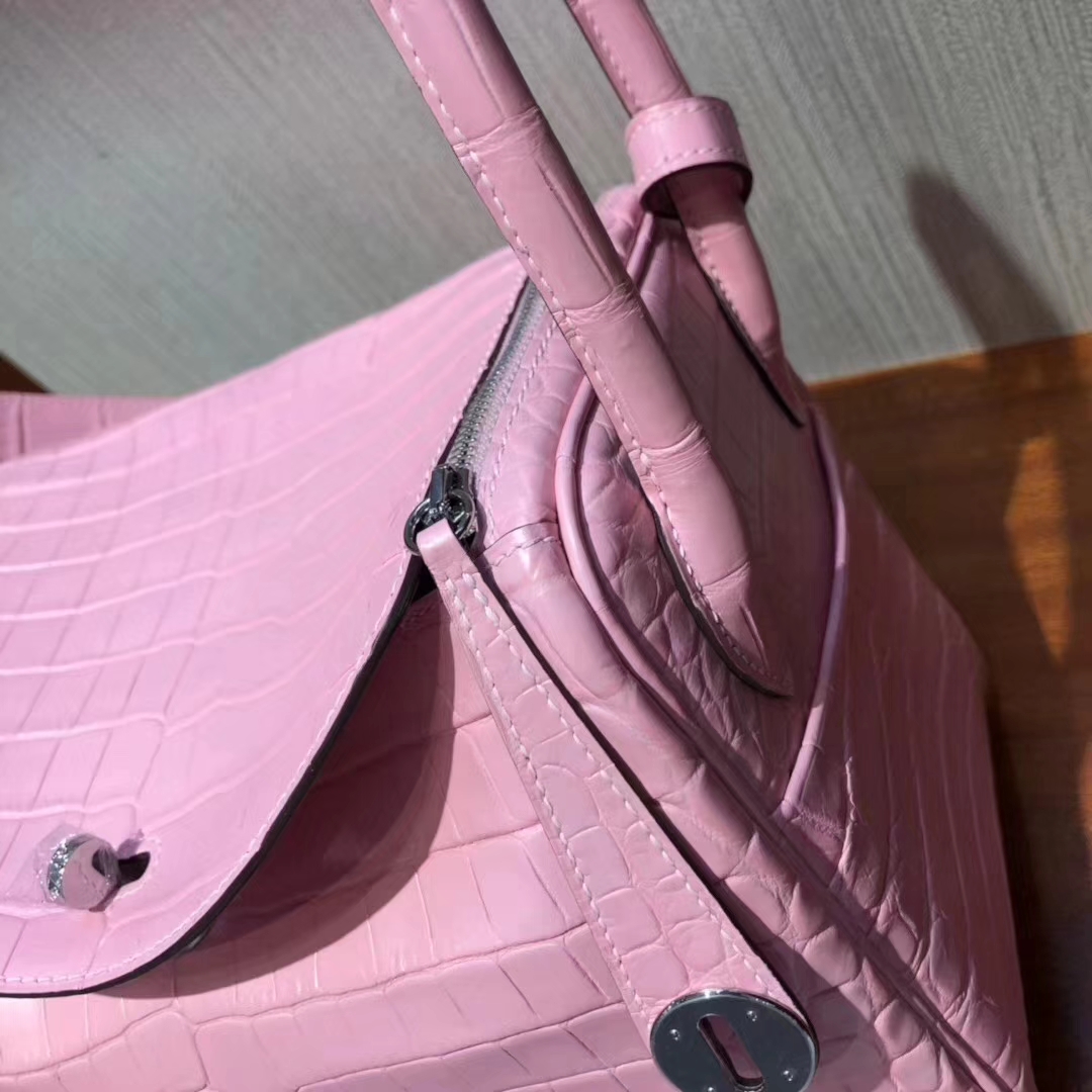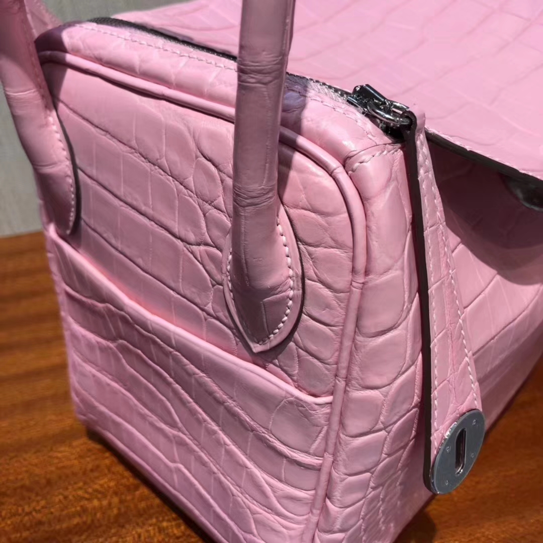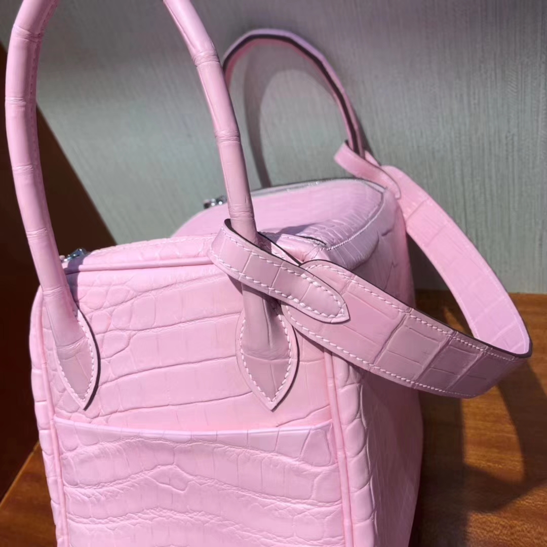 Hermès(爱马仕)Lindy 雾面两点尼罗鳄 5P樱花粉 顶级工艺 蜡线全手工 金扣 26cm 2019年6月6日 0 【鳄鱼世家】www.Eyubao.com Lindy 26 Lindy 琳迪包 品牌:Hermès(爱马仕);类别:Lindy 琳迪包;颜色:樱花粉;材质:雾面两点尼罗鳄;等级:顶级;附件:全套包装礼盒;尺寸:26cm;功能:手提单肩包