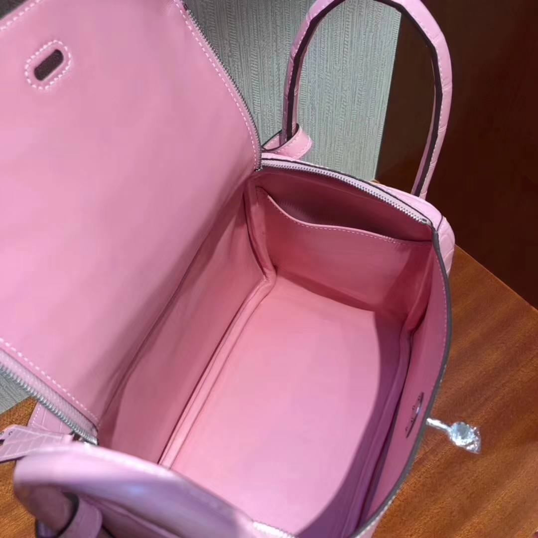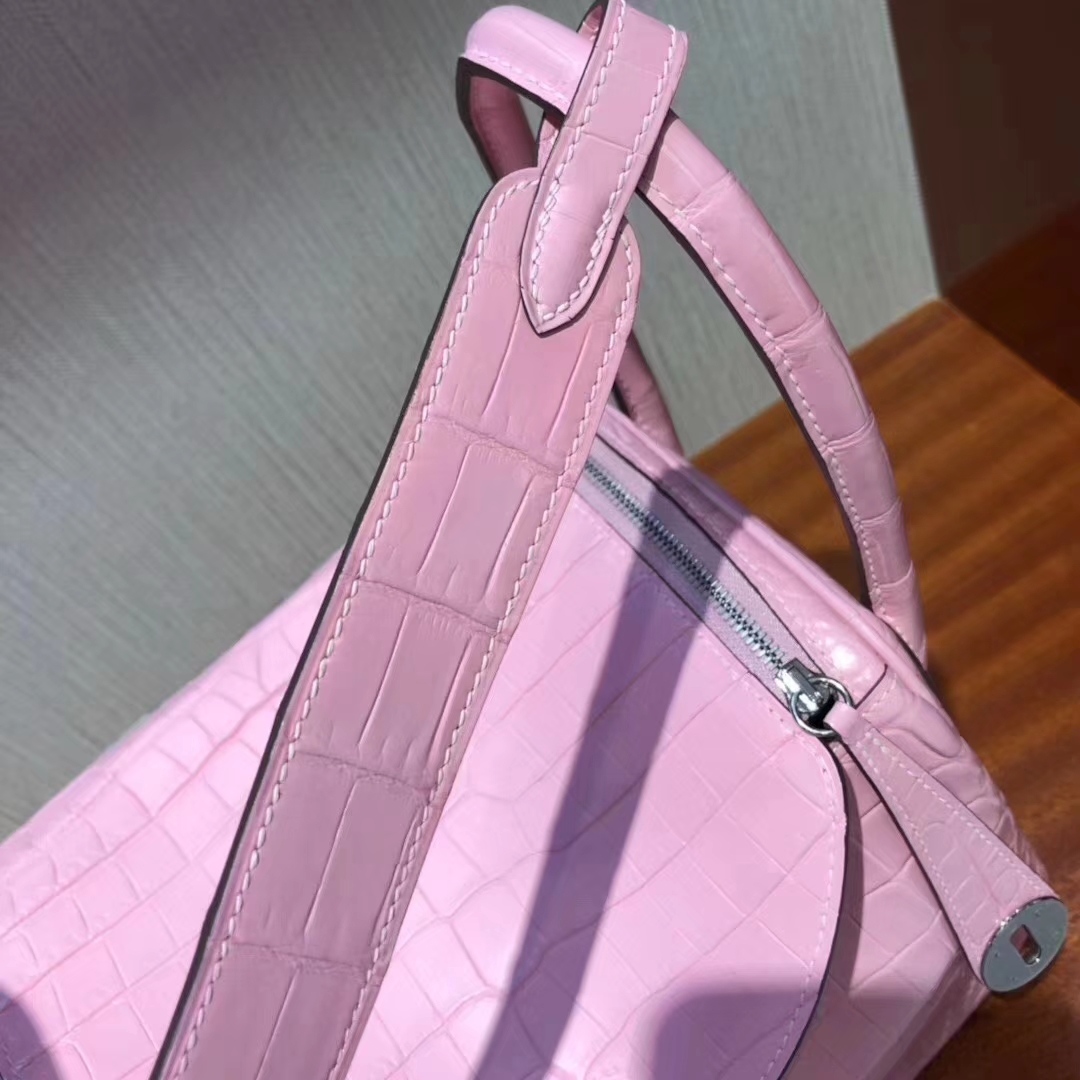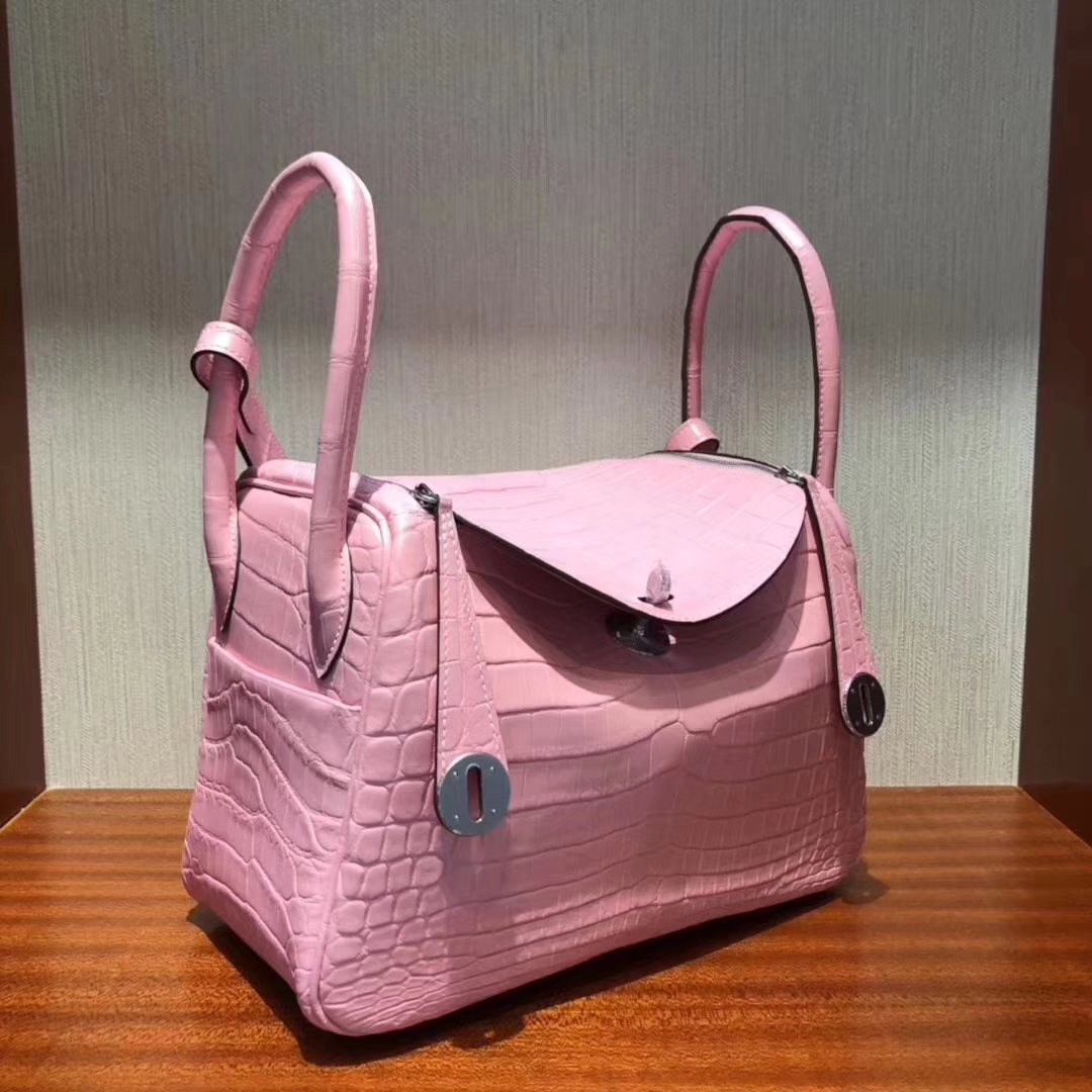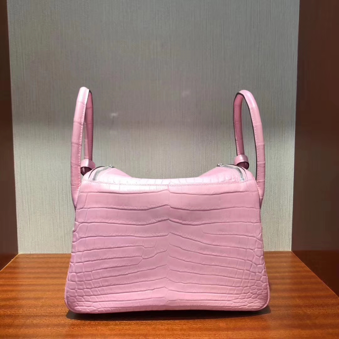 Hermès(爱马仕)Lindy 雾面两点尼罗鳄 5P樱花粉 顶级工艺 蜡线全手工 金扣 26cm 2019年6月6日 0 【鳄鱼世家】www.Eyubao.com Lindy 26 Lindy 琳迪包 品牌:Hermès(爱马仕);类别:Lindy 琳迪包;颜色:樱花粉;材质:雾面两点尼罗鳄;等级:顶级;附件:全套包装礼盒;尺寸:26cm;功能:手提单肩包