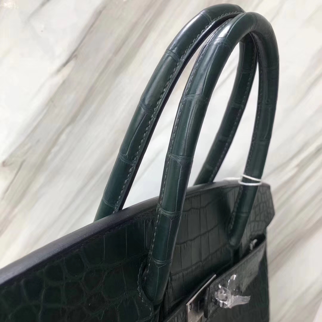 Hermès(爱马仕)Birkin铂金包 雾面两点尼罗鳄 1T泰坦绿 顶级工艺 蜡线全手工 银扣 30cm 2019年6月7日 0 【鳄鱼世家】www.Eyubao.com Birkin 30 Birkin 铂金包 品牌:Hermès(爱马仕);类别:Birkin 铂金包;颜色:泰坦绿;材质:雾面两点尼罗鳄;等级:顶级;附件:全套包装礼盒;尺寸:30cm;功能:手提单肩包