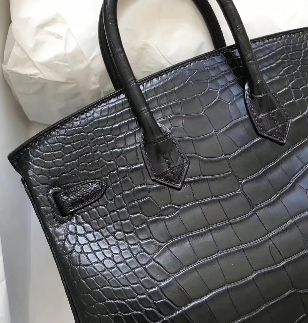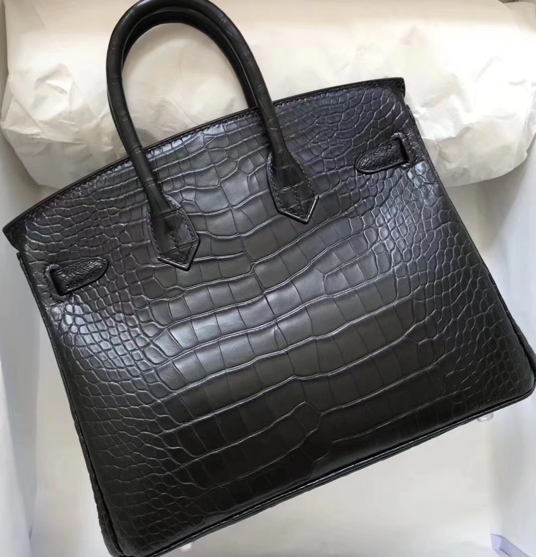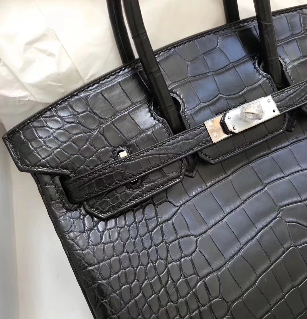 Hermès(爱马仕)Birkin铂金包 Alligator matt 雾面鳄鱼 ck89 黑色 noir 银扣 25cm 2019年6月12日 0 【鳄鱼世家】www.Eyubao.com Birkin 25 Birkin 铂金包 品牌:Hermès(爱马仕);类别:Birkin 铂金包;颜色: 黑色;材质:雾面鳄鱼;等级:顶级;附件:全套包装礼盒;尺寸:25cm;功能:手提单肩包