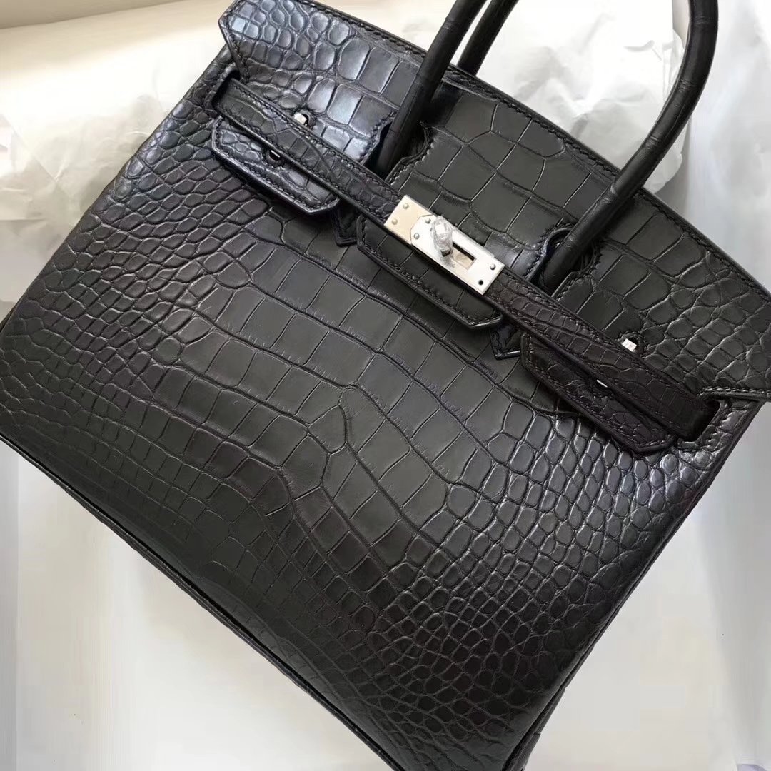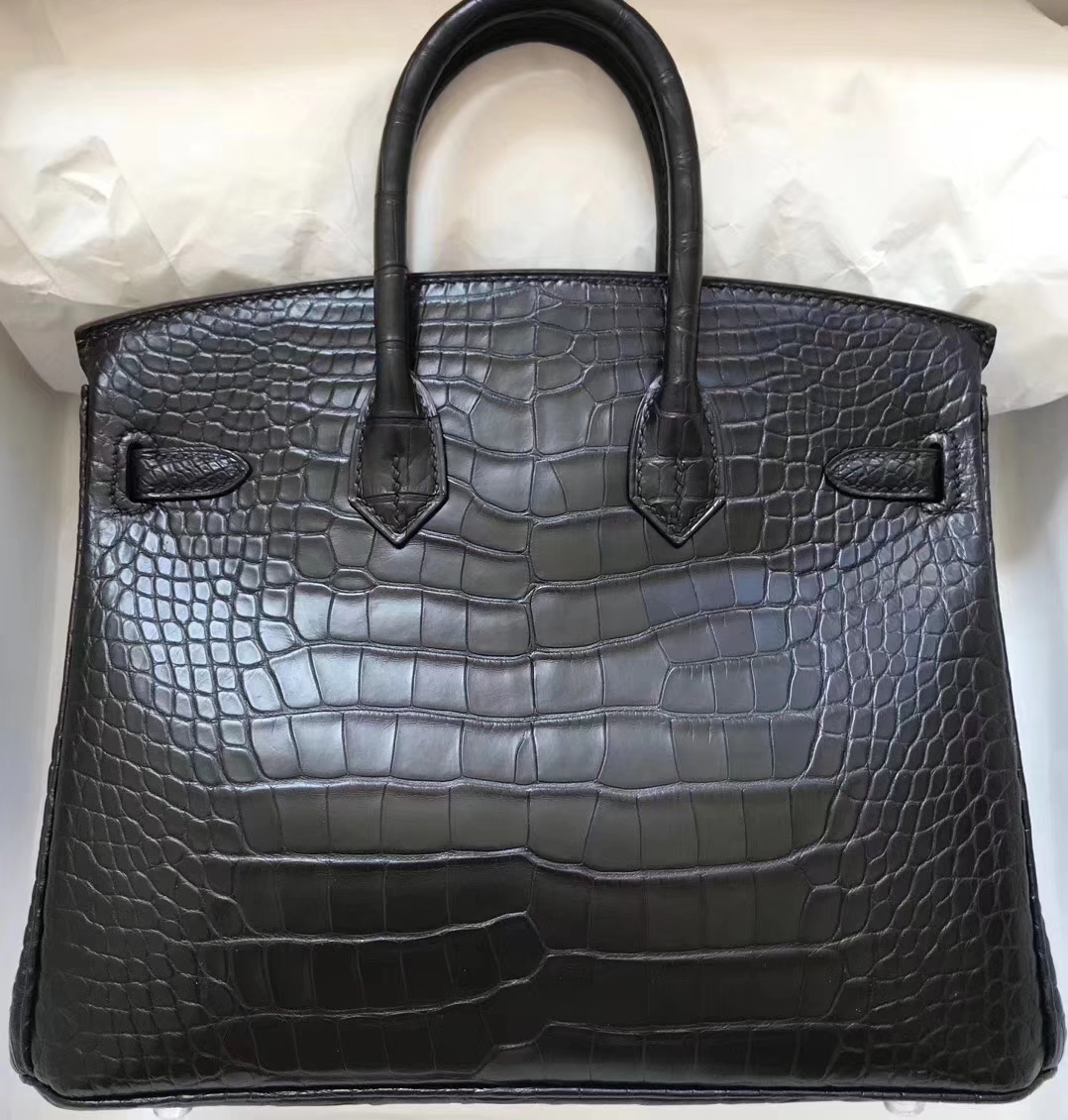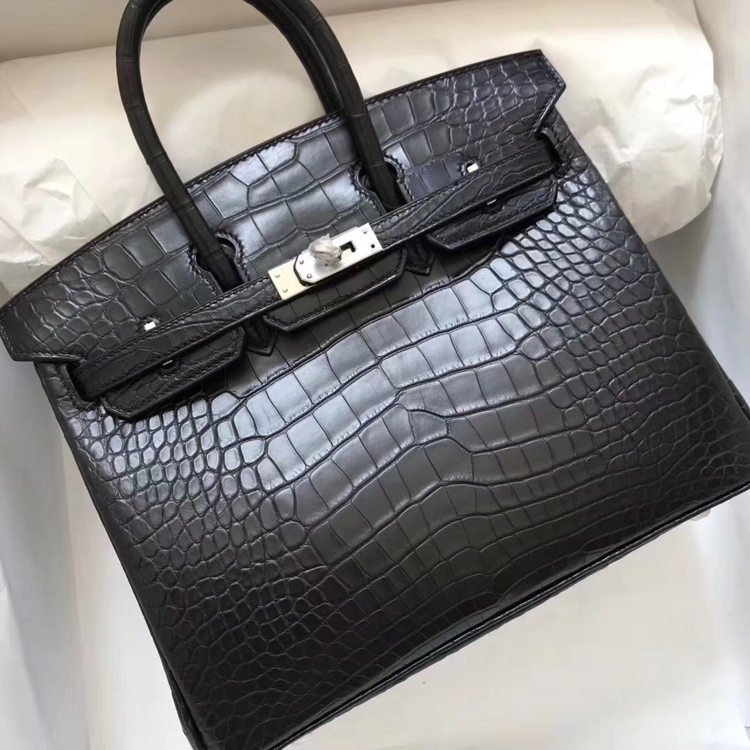 Hermès(爱马仕)Birkin铂金包 Alligator matt 雾面鳄鱼 ck89 黑色 noir 银扣 25cm 2019年6月12日 0 【鳄鱼世家】www.Eyubao.com Birkin 25 Birkin 铂金包 品牌:Hermès(爱马仕);类别:Birkin 铂金包;颜色: 黑色;材质:雾面鳄鱼;等级:顶级;附件:全套包装礼盒;尺寸:25cm;功能:手提单肩包