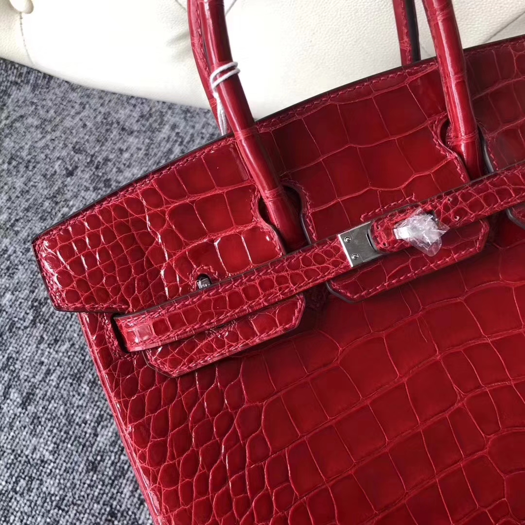 Hermès(爱马仕)Birkin铂金包 Alligator shiny 亮面鳄鱼 ck95 法拉利红 Braise 银扣 25cm 2019年6月17日 0 【鳄鱼世家】www.Eyubao.com Birkin 25 Birkin 铂金包 品牌:Hermès(爱马仕);类别:Birkin 铂金包;颜色: 法拉利红;材质:亮面鳄鱼;等级:顶级;附件:全套包装礼盒;尺寸:25cm;功能:手提单肩包