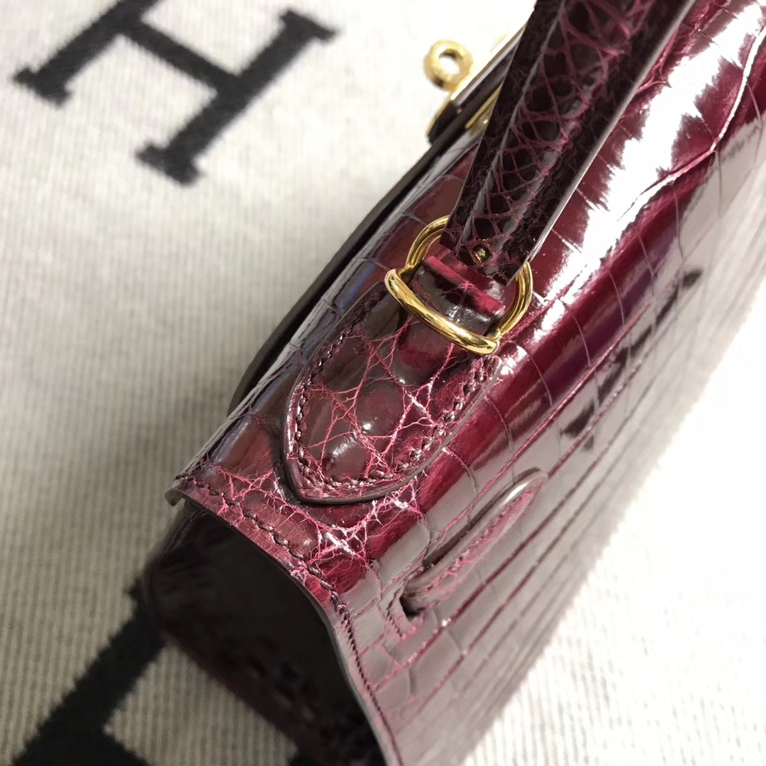 Constance 18 Constance 空姐包 Hermès(爱马仕)Constance空姐包 Alligator shiny 亮面鳄鱼 F5 勃艮第酒红 金扣 18cm 2019年5月28日 0