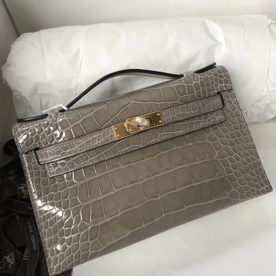 Mini Kelly 1 Mini Kelly 迷你凯莉 Hermès(爱马仕)Minikelly pochette 亮面鳄鱼 ck81 斑鸠灰 Gris T 金扣 22cm 手拿包 2019年3月1日 0