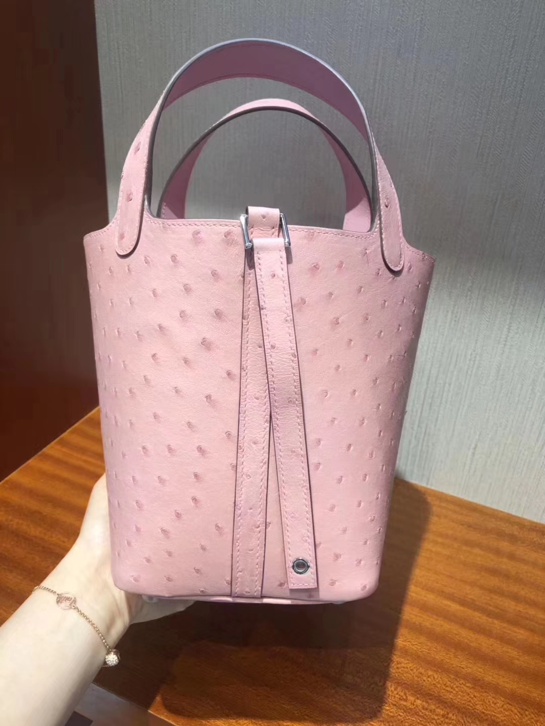 Hermès(爱马仕)Picotin Ostrich kk鸵鸟 1Q 奶昔粉 rose confetti 银扣 18cm 现货 2019年6月24日 0 【鳄鱼世家】www.Eyubao.com Picotin 18 Picotin 菜篮包 品牌:Hermès(爱马仕);类别:Picotin 菜篮子;颜色:奶昔粉;材质:鸵鸟纹;等级:顶级;附件:全套包装礼盒;尺寸:18cm;功能:手提单肩包