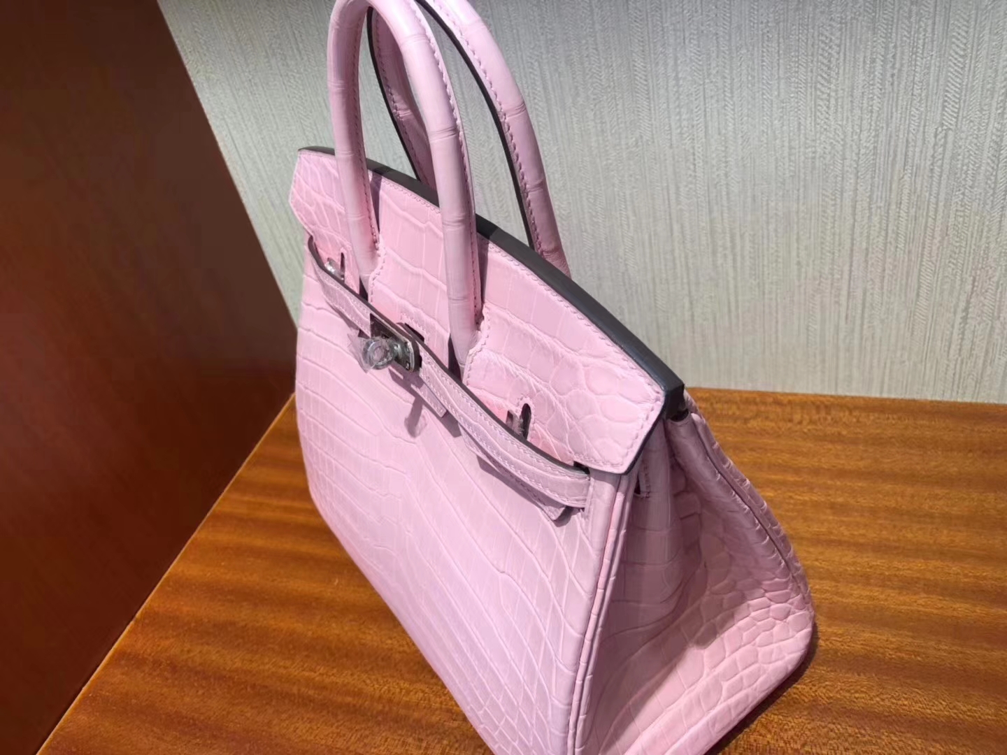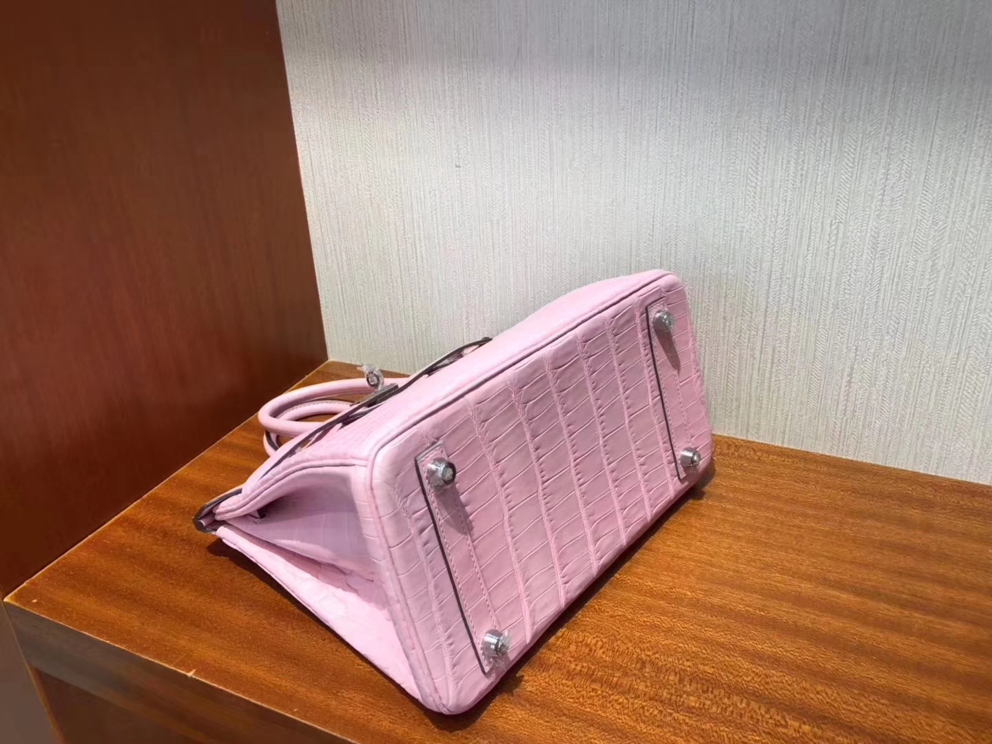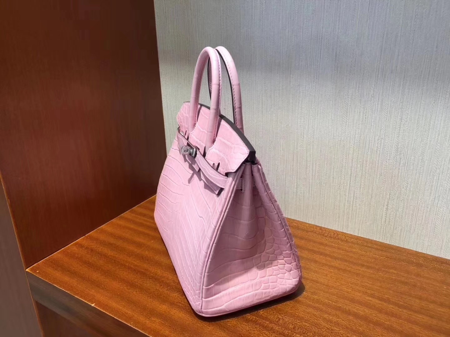 Hermès(爱马仕)Birkin铂金包 Crocodile matt 雾面鳄鱼 芭比粉 银扣 顶级手缝 超粉嫩 25cm 2019年6月24日 0 【鳄鱼世家】www.Eyubao.com Birkin 25 Birkin 铂金包 品牌:Hermès(爱马仕);类别:Birkin 铂金包;颜色:芭比粉;材质:雾面鳄鱼;等级:顶级;附件:全套包装礼盒;尺寸:25cm;功能:手提单肩包