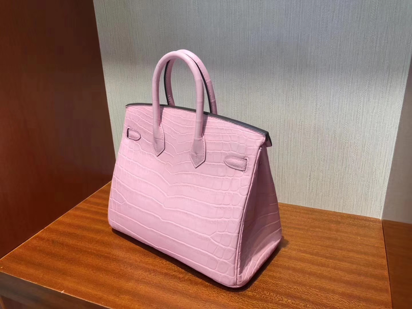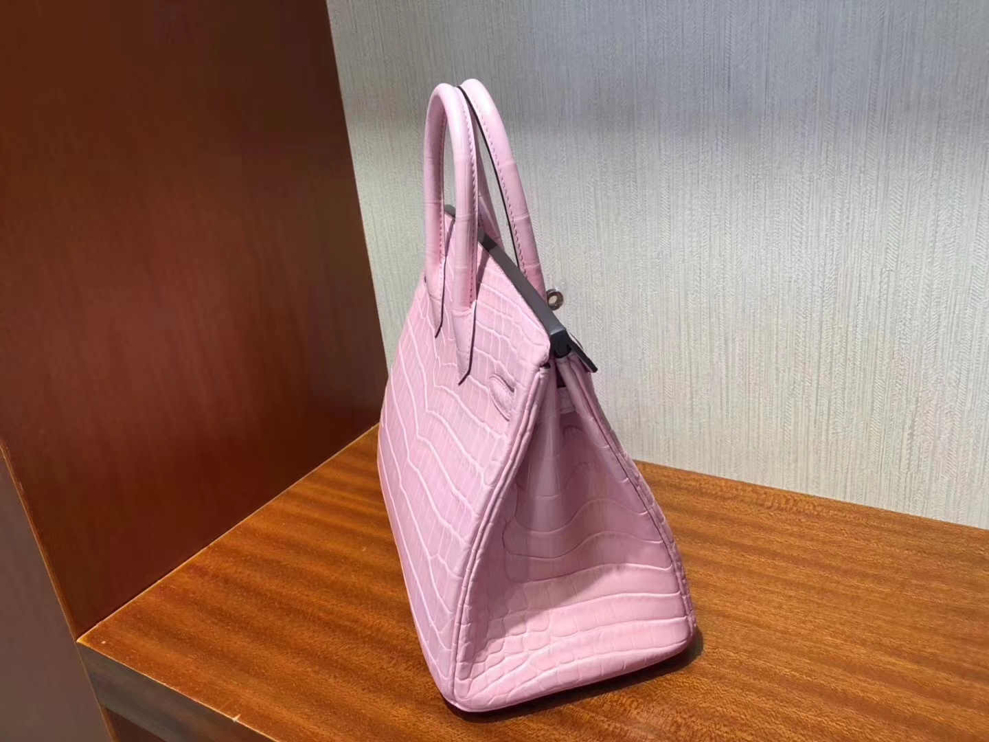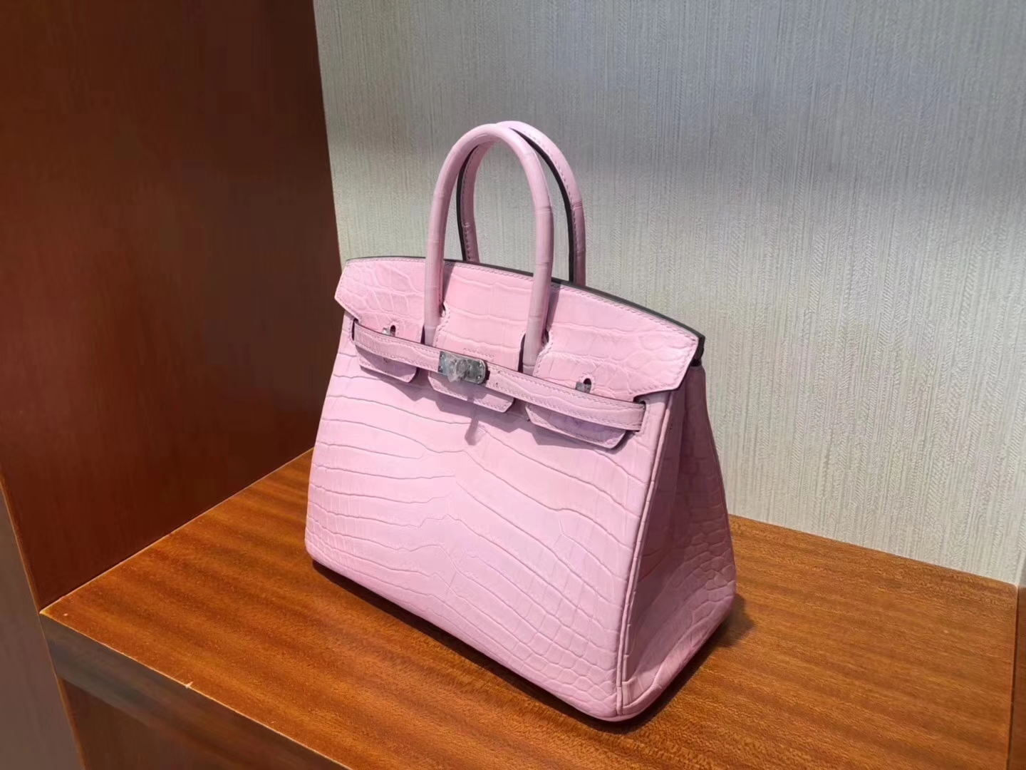 Hermès(爱马仕)Birkin铂金包 Crocodile matt 雾面鳄鱼 芭比粉 银扣 顶级手缝 超粉嫩 25cm 2019年6月24日 0 【鳄鱼世家】www.Eyubao.com Birkin 25 Birkin 铂金包 品牌:Hermès(爱马仕);类别:Birkin 铂金包;颜色:芭比粉;材质:雾面鳄鱼;等级:顶级;附件:全套包装礼盒;尺寸:25cm;功能:手提单肩包