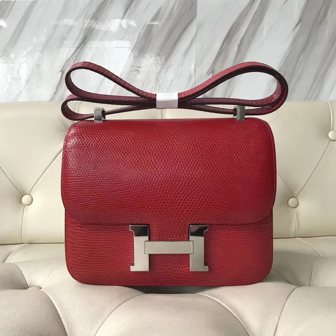Constance 24 Constance 空姐包 Hermès(爱马仕)Constance24cm lizard 进口亮面蜥蜴皮 Q5 国旗红 Rouge casaque 银扣 2018年12月12日 0