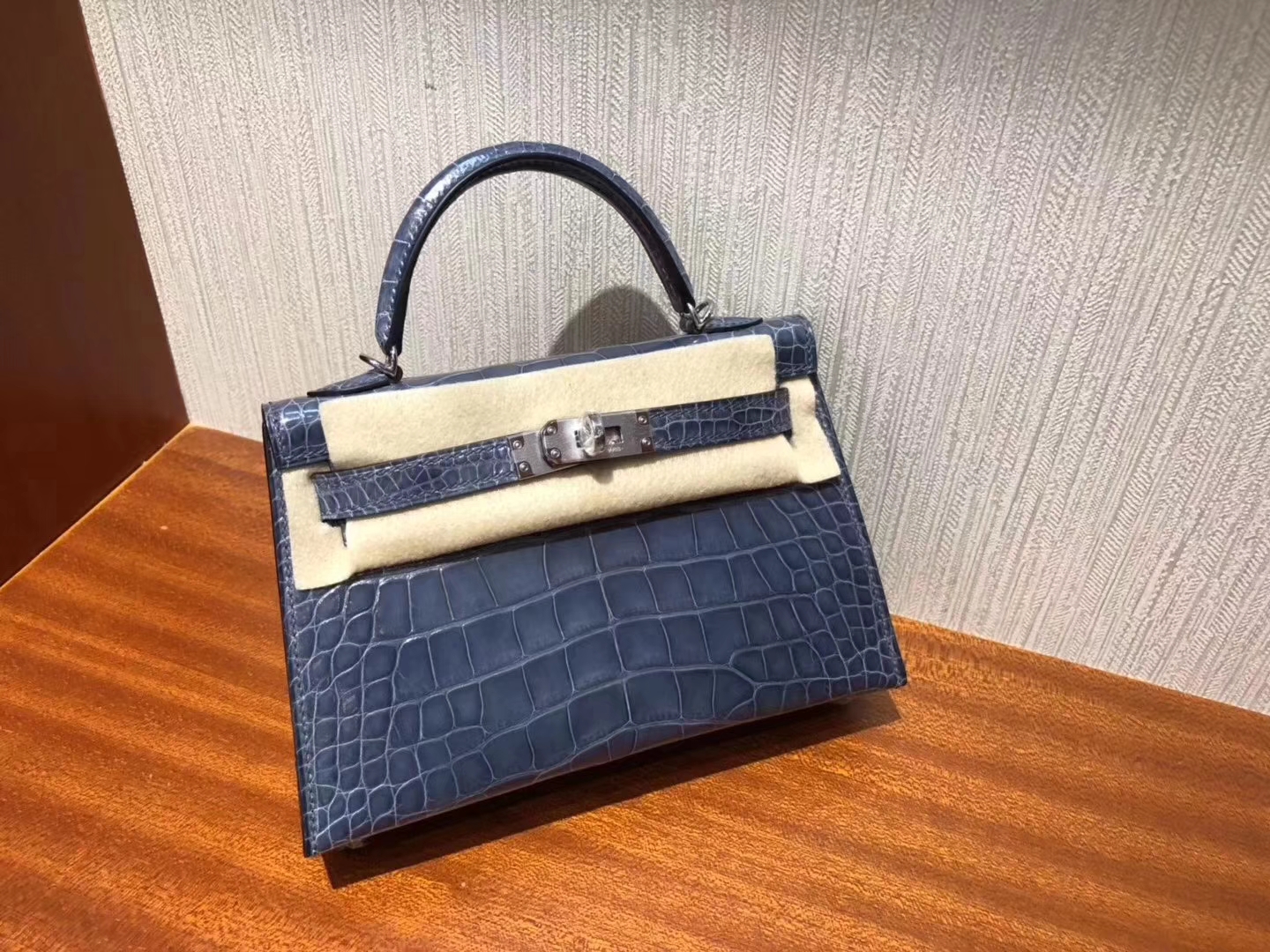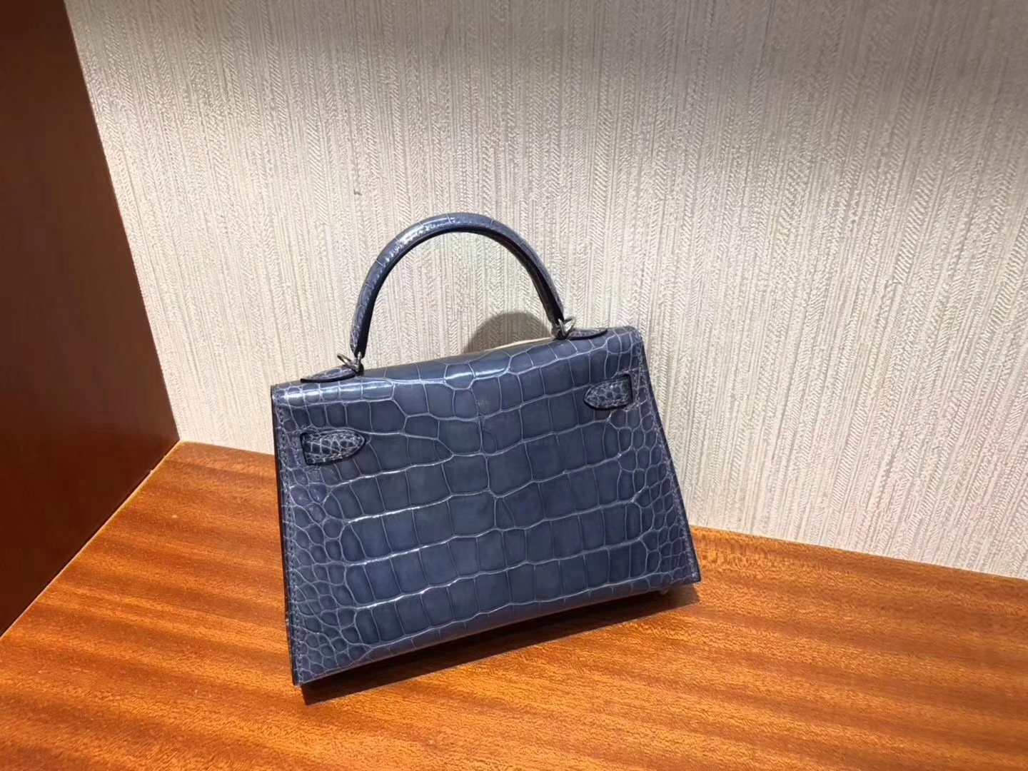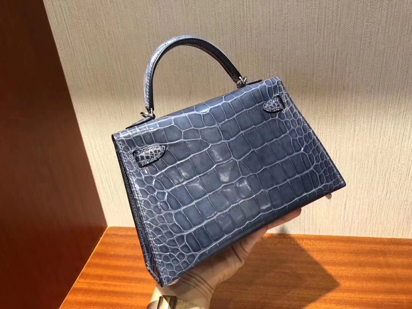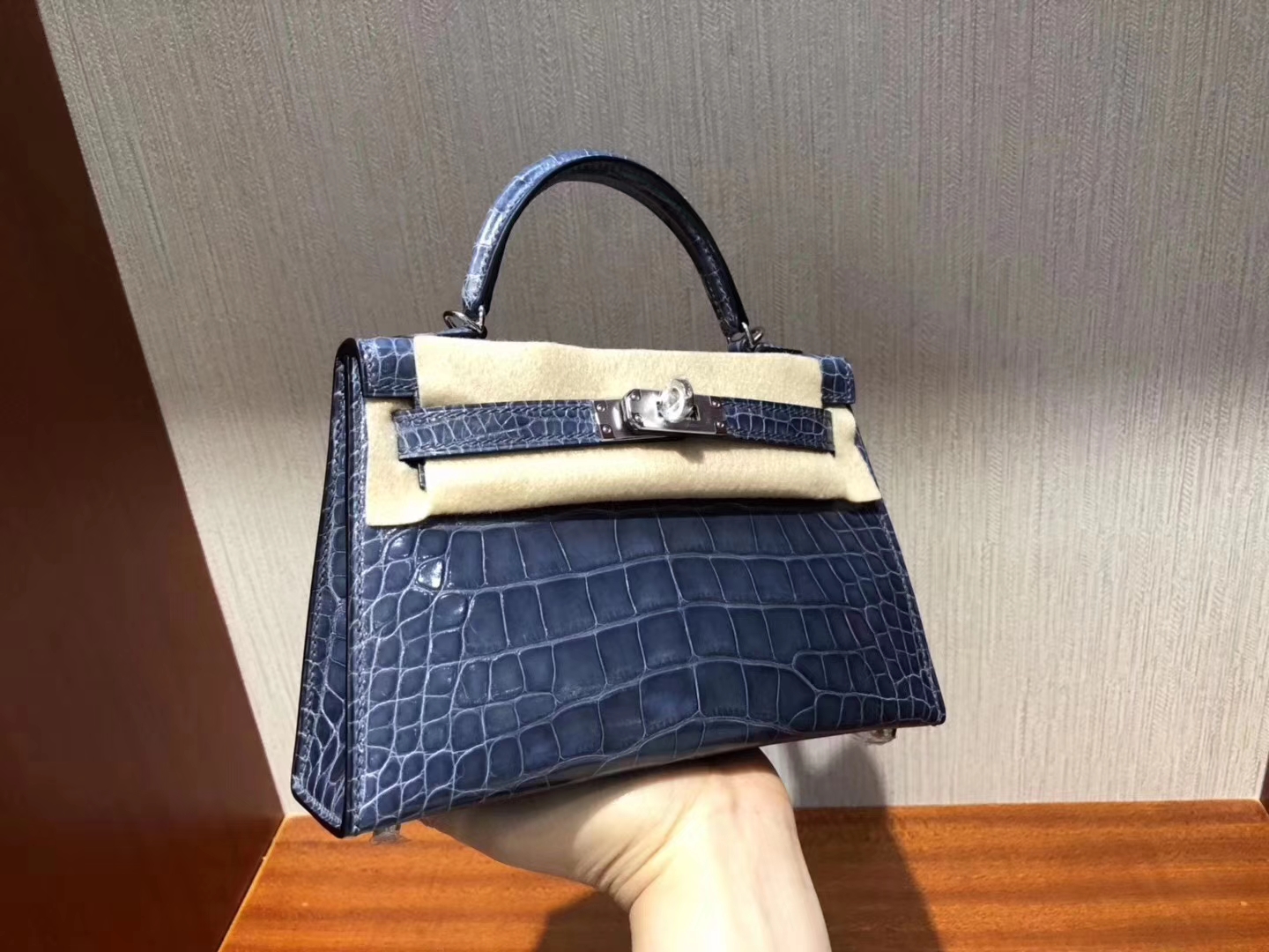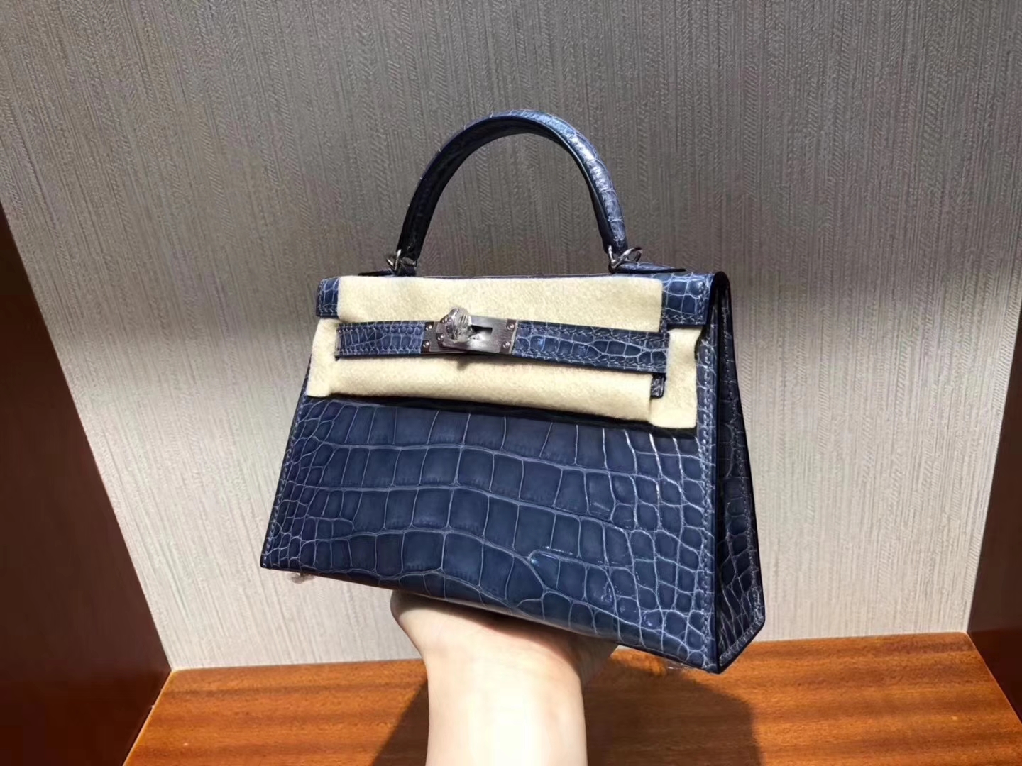Hermès(爱马仕)Minikelly ll Alligator shiny 亮面鳄鱼 N7 风暴蓝 银扣 2019年7月5日 0 【鳄鱼世家】www.Eyubao.com Mini Kelly 2 Mini Kelly 迷你凯莉 品牌:Hermès(爱马仕);类别:Mini Kelly迷你凯莉包;颜色:风暴蓝;材质:亮面鳄鱼;等级:顶级;附件:全套包装礼盒;尺寸:20cm;功能:手提单肩包