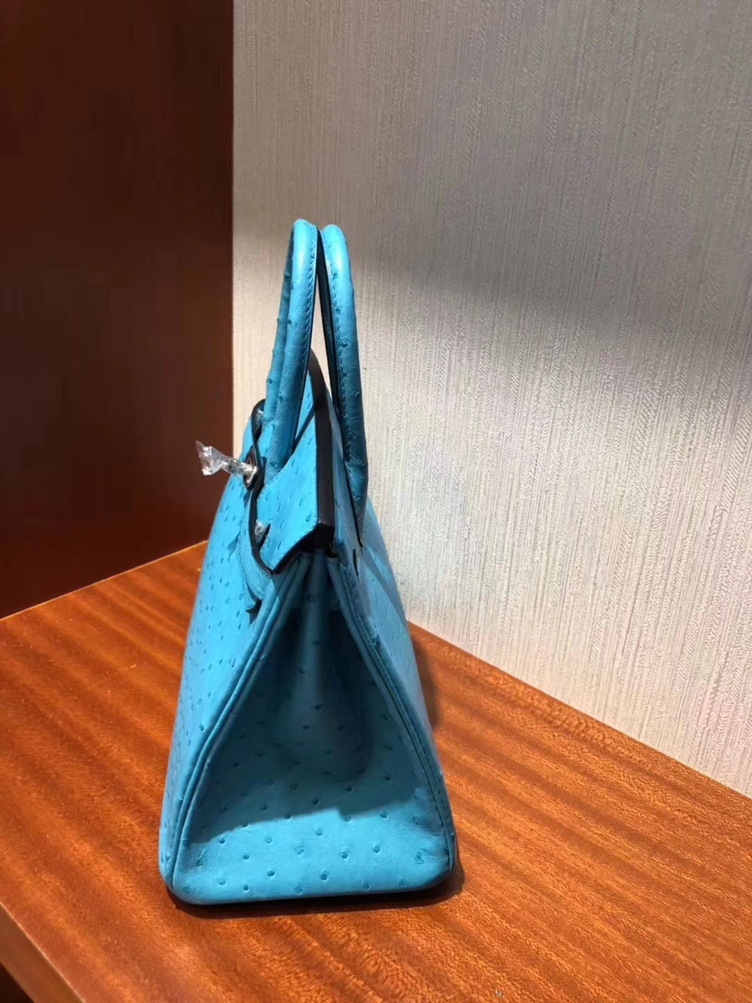 Hermès(爱马仕)Birkin铂金包 Ostrich kk 鸵鸟 3p 马卡龙蓝 银扣 25cm 现货 2019年7月6日 0 【鳄鱼世家】www.Eyubao.com Birkin 25 Birkin 铂金包 品牌:Hermès(爱马仕);类别:Birkin 铂金包;颜色: 马卡龙蓝;材质:鸵鸟纹;等级:顶级;附件:全套包装礼盒;尺寸:25cm;功能:手提单肩包