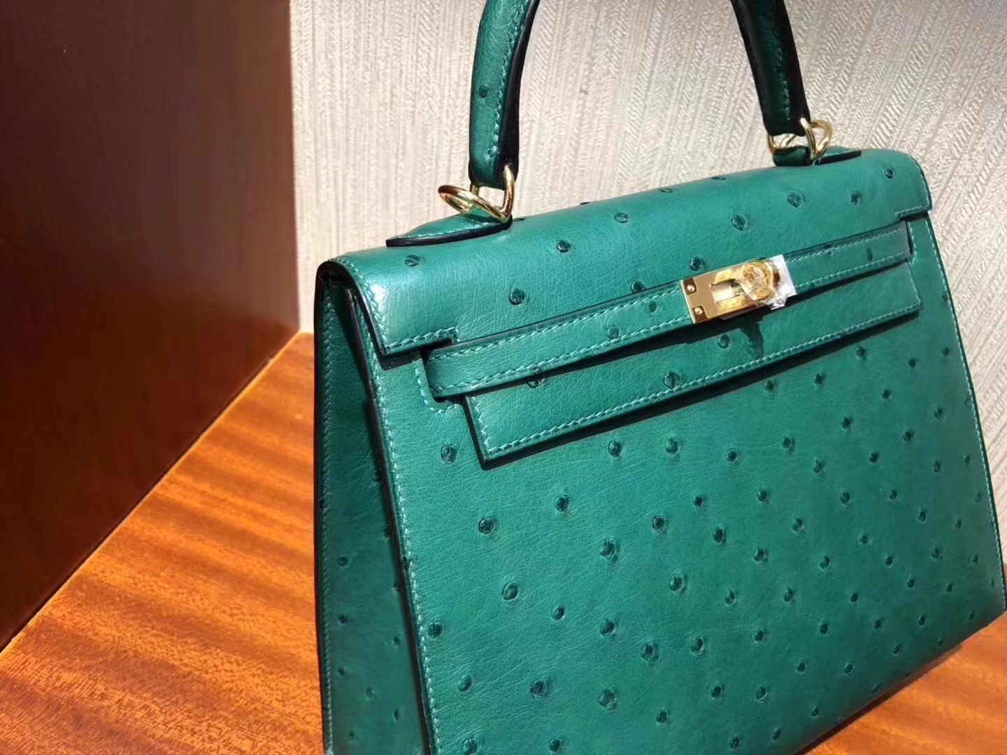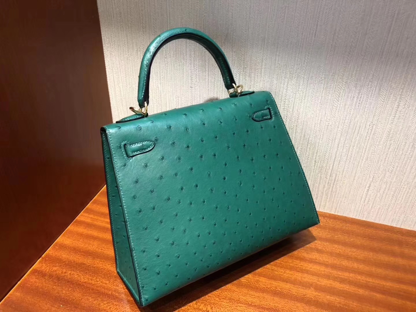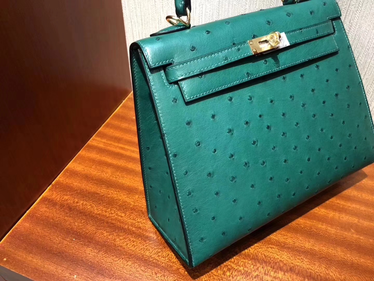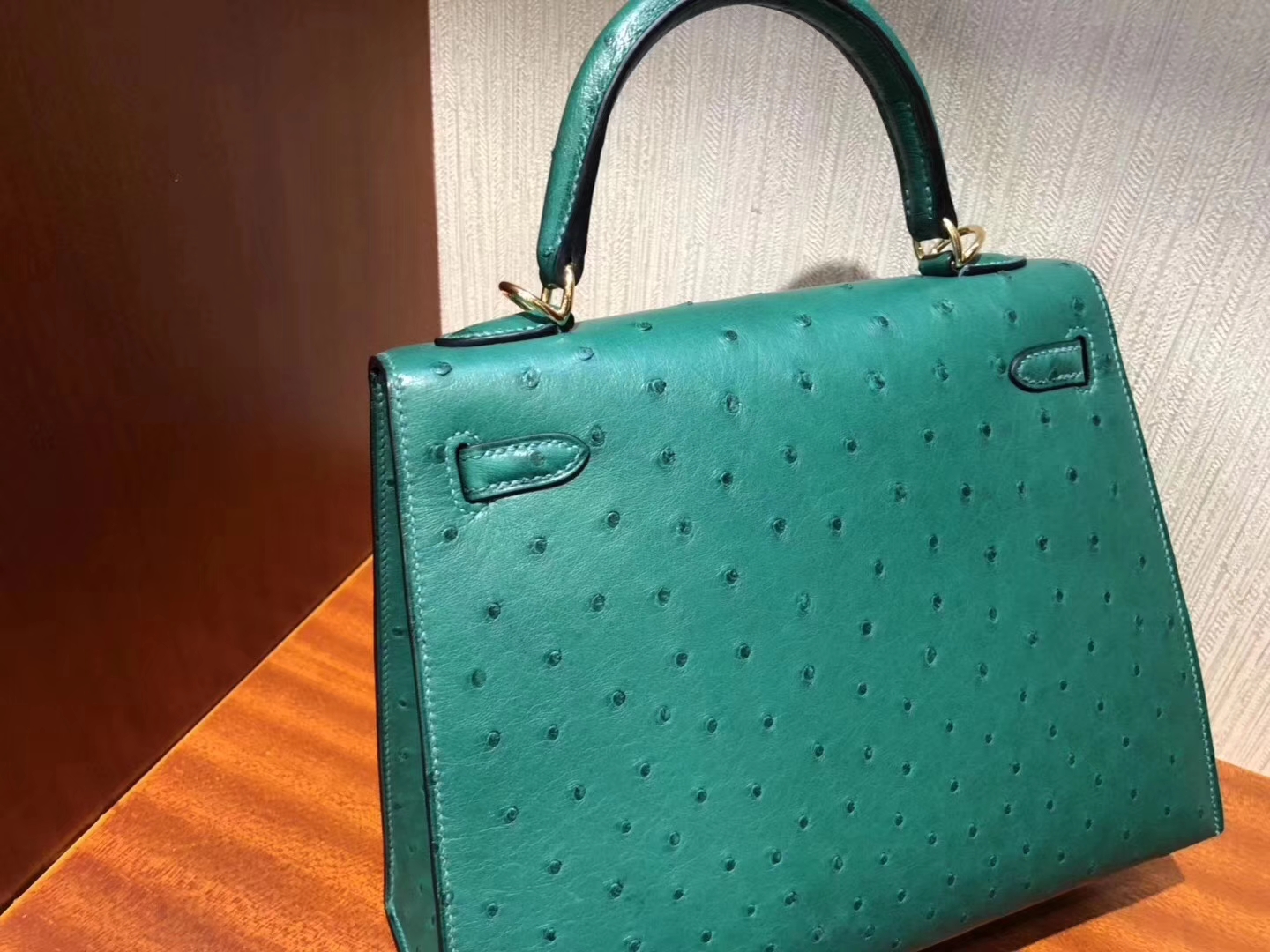 Hermès(爱马仕)Kelly凯莉包 Ostrich kk鸵鸟 U4 丝绒绿 金扣 小可爱 25cm 现货 2019年7月6日 0 【鳄鱼世家】www.Eyubao.com Kelly 25 Kelly 凯莉包 品牌:Hermès(爱马仕);类别:Kelly 凯莉包;颜色:丝绒绿;材质:鸵鸟纹;等级:顶级;附件:全套包装礼盒;尺寸:25cm;功能:手提单肩包