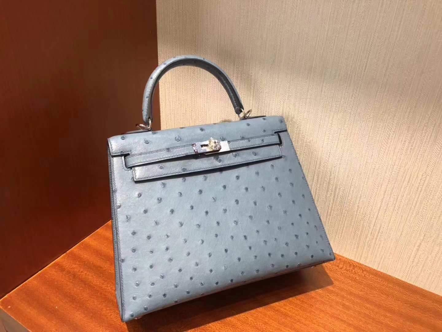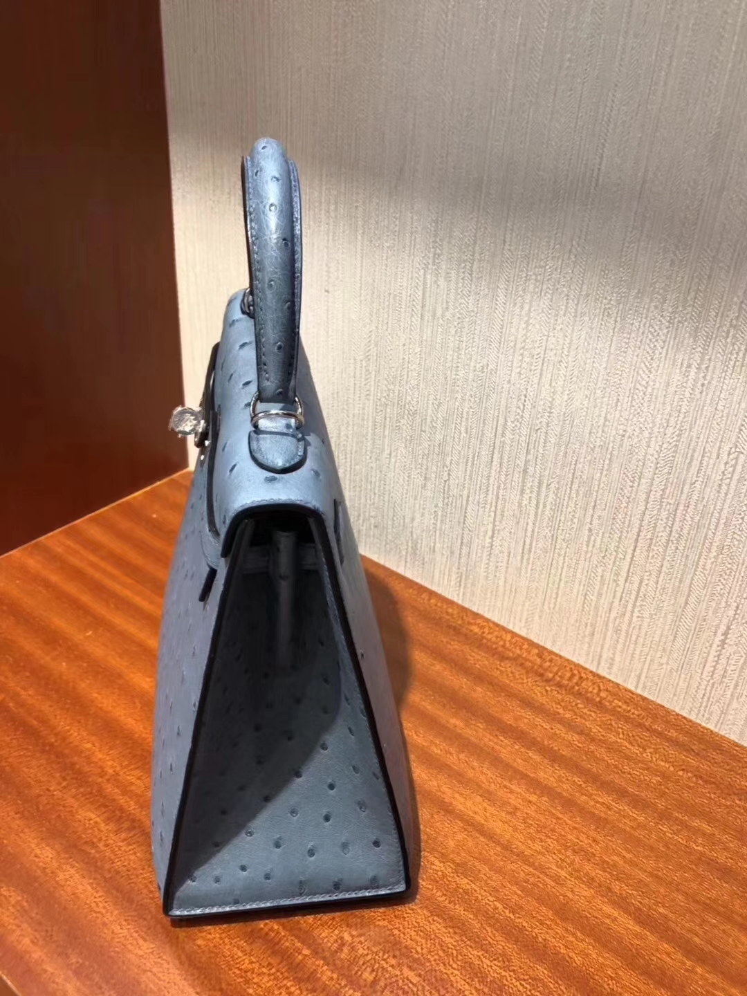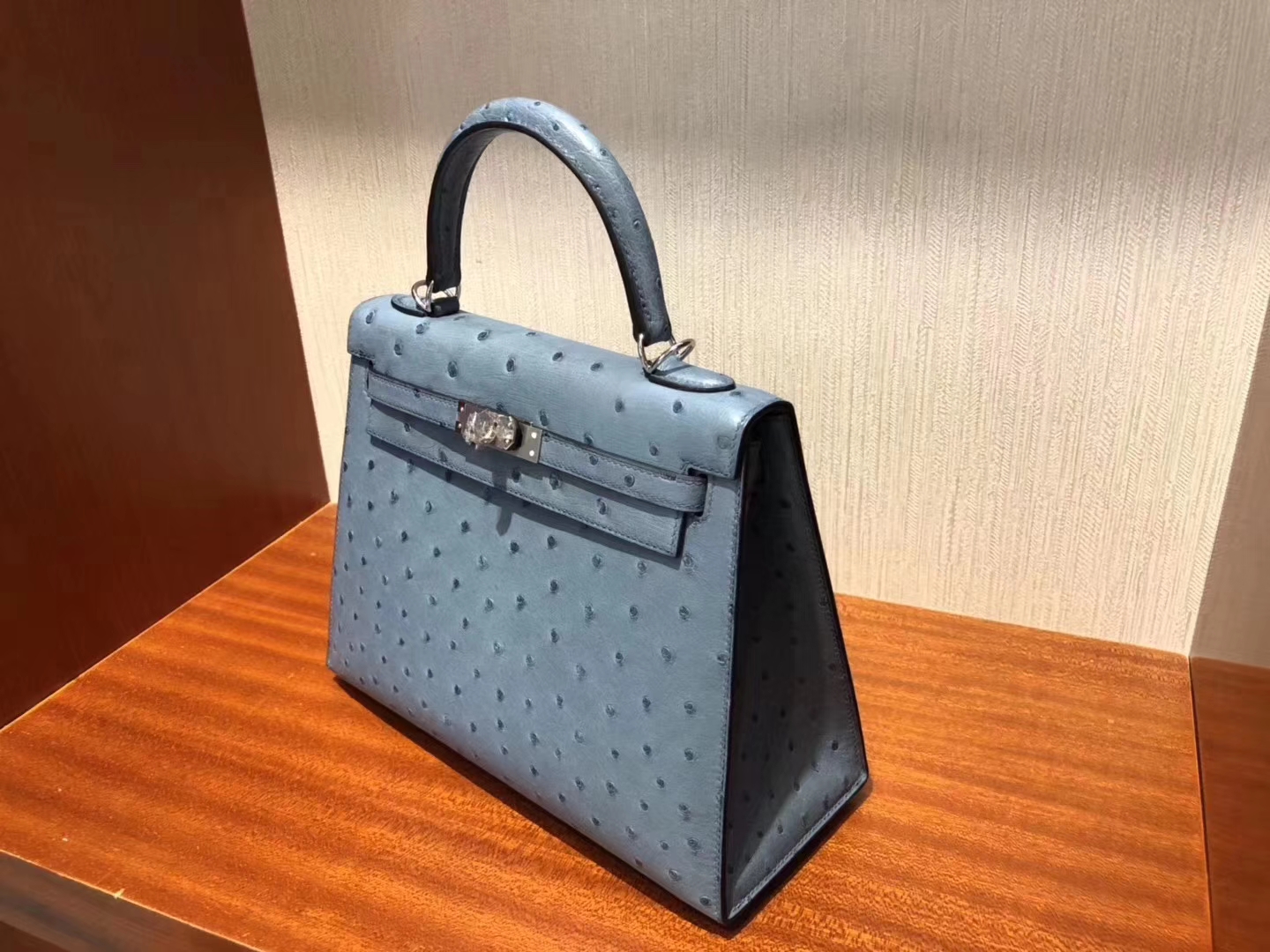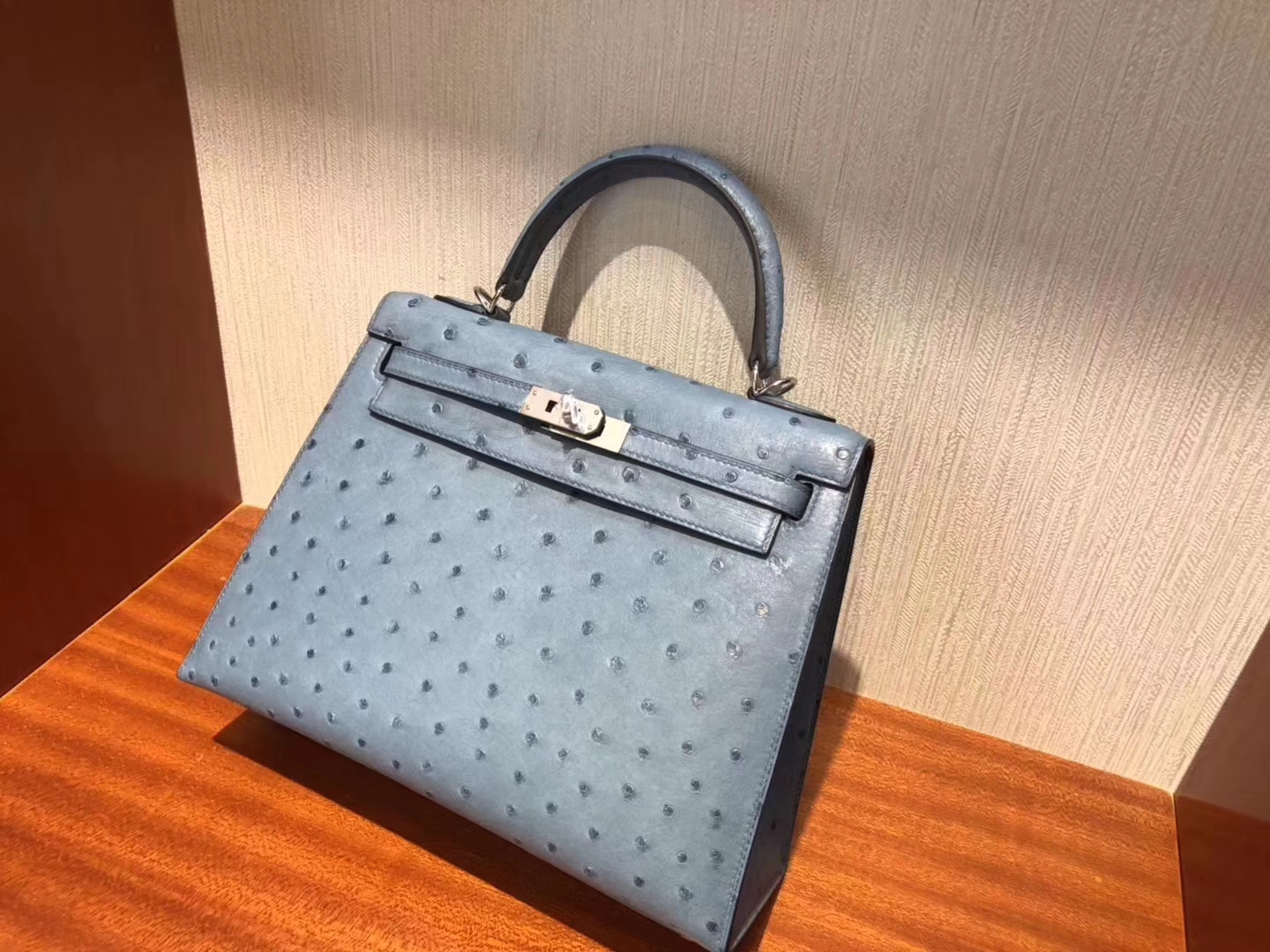 Hermès(爱马仕)Kelly凯莉包 Ostrich kk鸵鸟 8U 冰川蓝 blue glacier 银扣 25cm 现货 2019年7月6日 0 【鳄鱼世家】www.Eyubao.com Kelly 25 Kelly 凯莉包 品牌:Hermès(爱马仕);类别:Kelly 凯莉包;颜色:冰川蓝;材质:鸵鸟纹;等级:顶级;附件:全套包装礼盒;尺寸:25cm;功能:手提单肩包