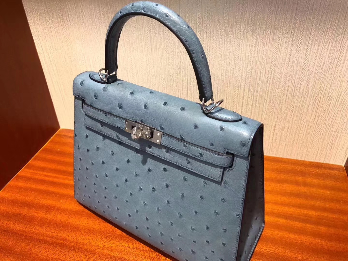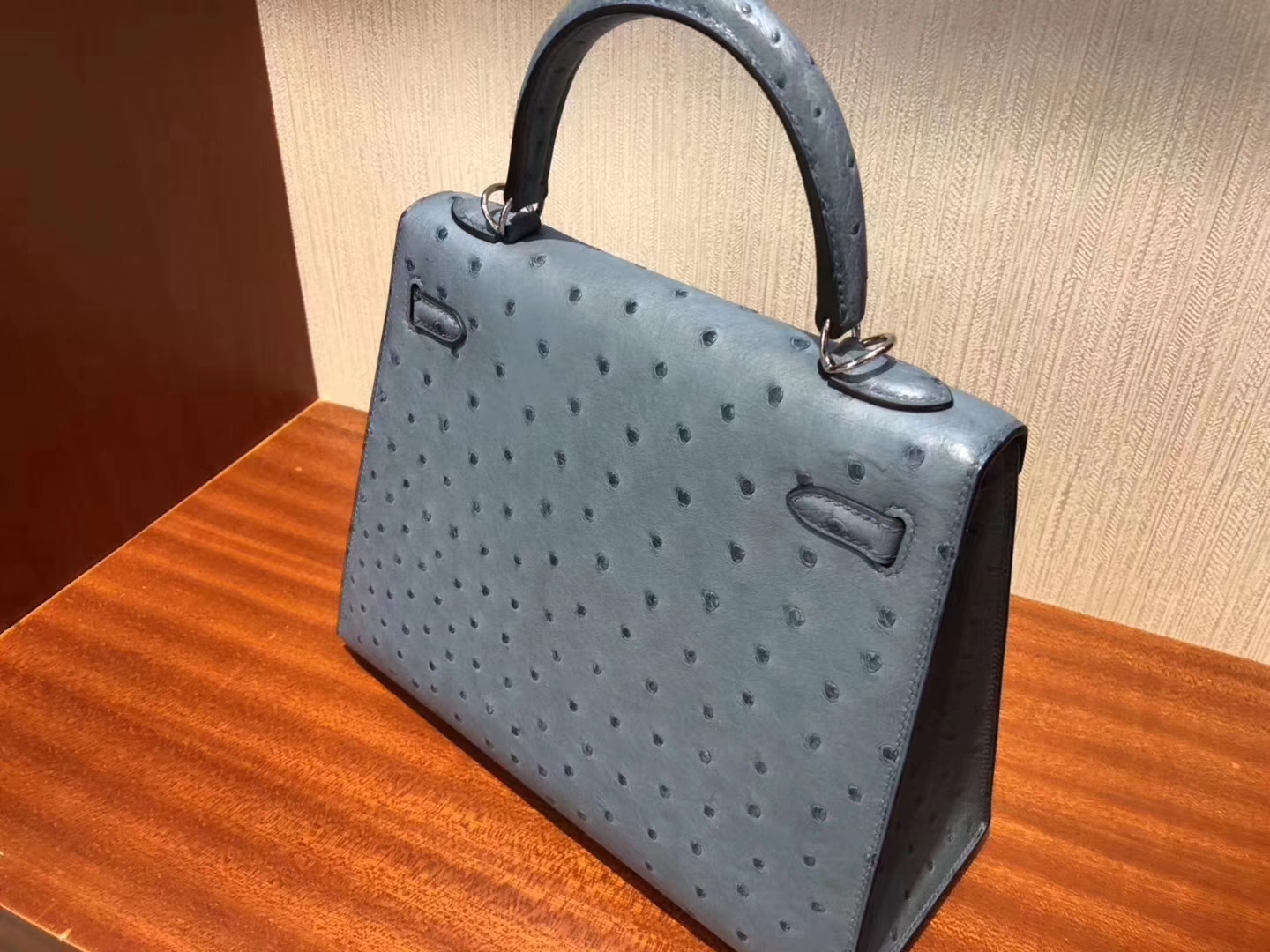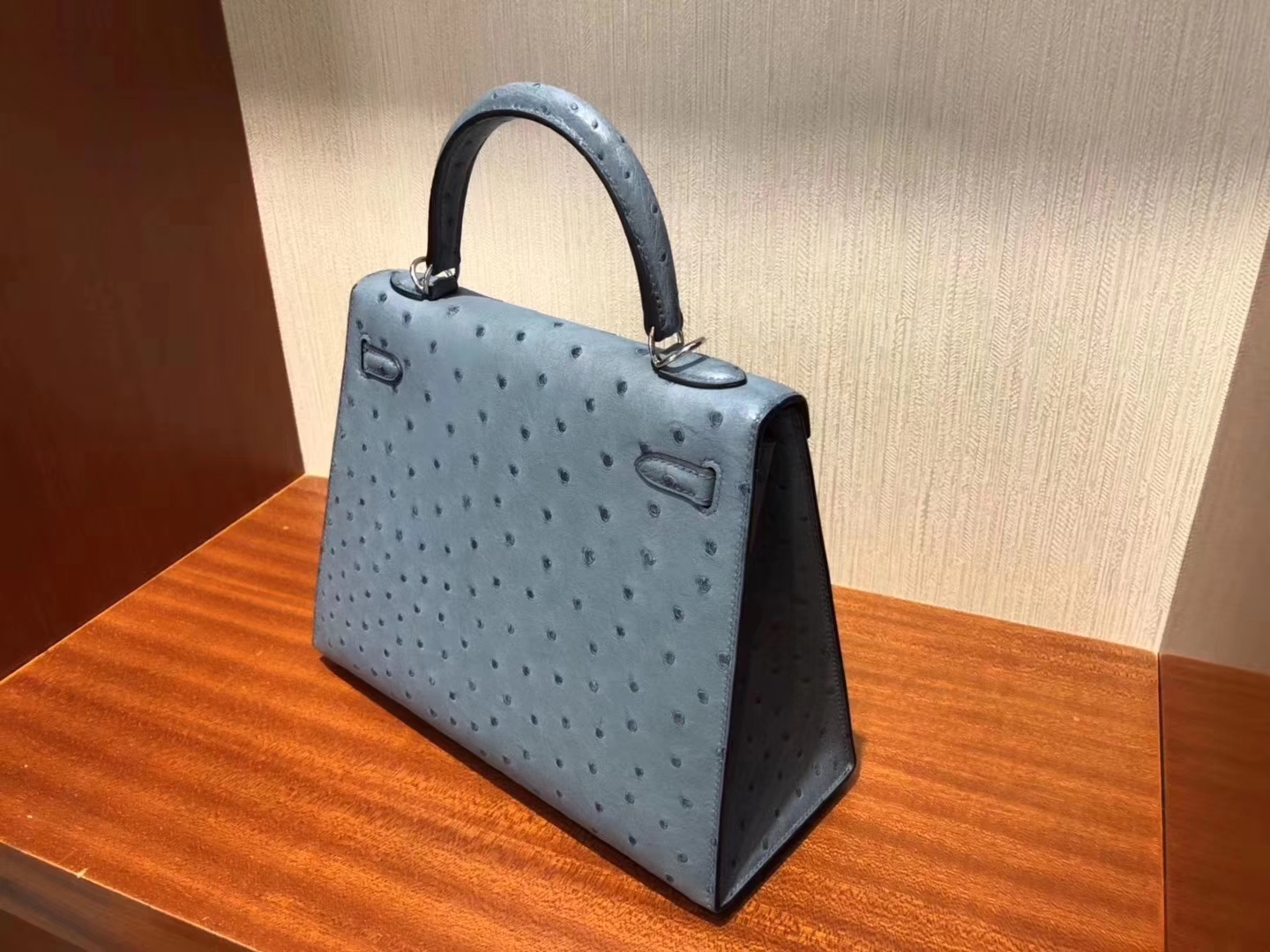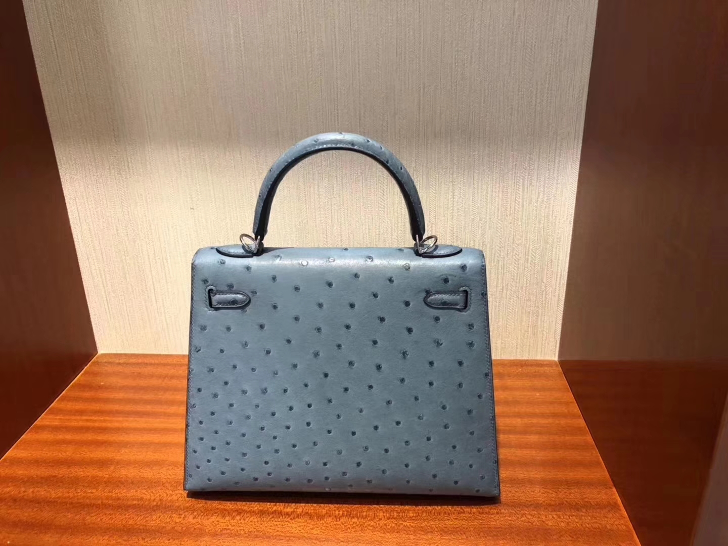 Hermès(爱马仕)Kelly凯莉包 Ostrich kk鸵鸟 8U 冰川蓝 blue glacier 银扣 25cm 现货 2019年7月6日 0 【鳄鱼世家】www.Eyubao.com Kelly 25 Kelly 凯莉包 品牌:Hermès(爱马仕);类别:Kelly 凯莉包;颜色:冰川蓝;材质:鸵鸟纹;等级:顶级;附件:全套包装礼盒;尺寸:25cm;功能:手提单肩包