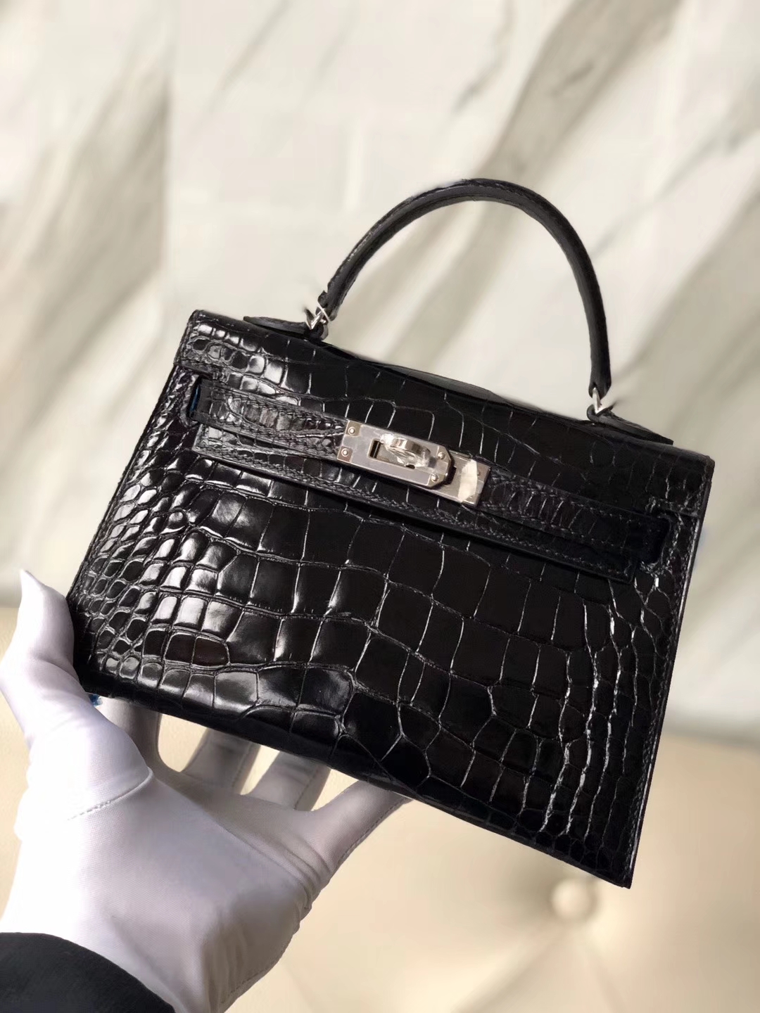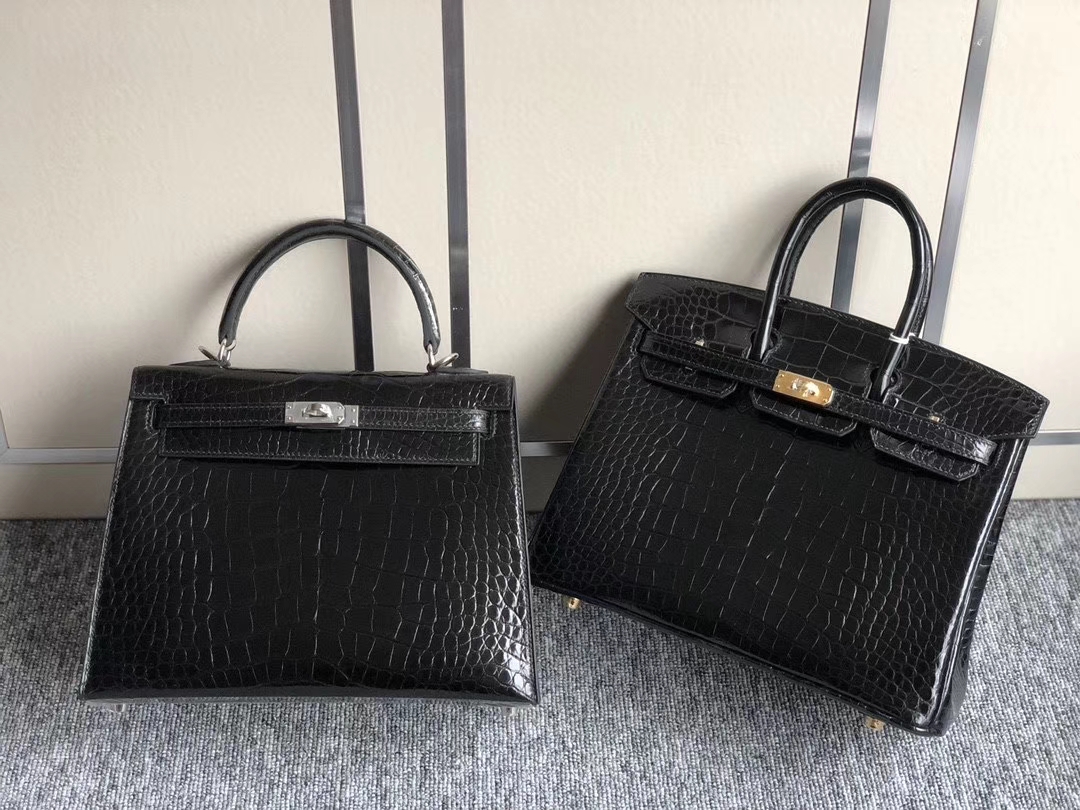 Birkin 25 Birkin 铂金包 Kelly 25 Kelly 凯莉包 Hermès(爱马仕)Birkin 25cm Kelly25cm Alligator shiny 亮面鳄鱼 ck89 黑色 Noir 金扣 2020年3月6日 0