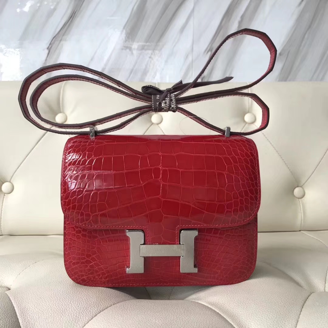 Constance 18 Constance 空姐包 Hermès(爱马仕)Constance18cm Alligator shiny 亮面鳄鱼 ck95 法拉利红 Graphite 银扣 2018年12月18日 0