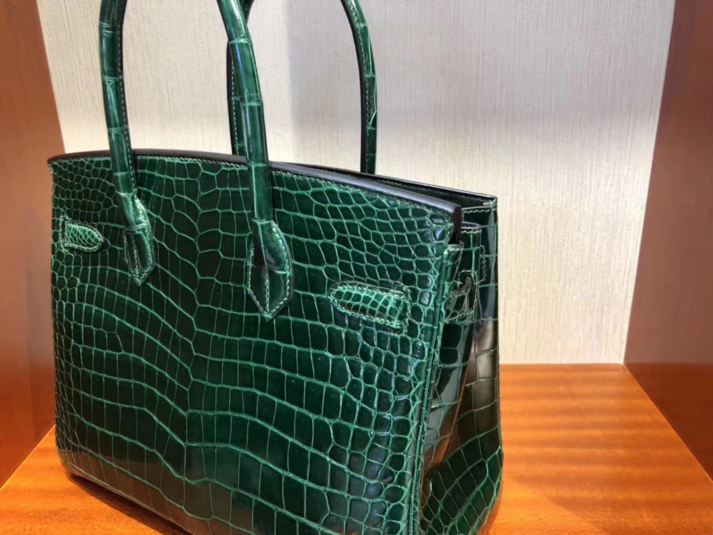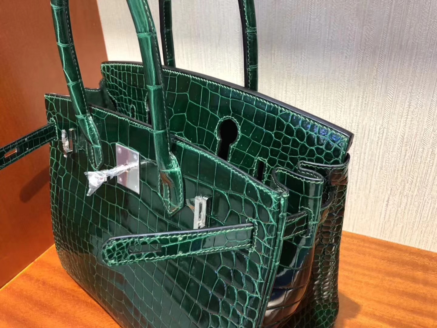Hermès(爱马仕)Birkin铂金包 亮面澳洲鳄鱼 ck67 祖母绿 银扣 30cm 2019年7月18日 0 【鳄鱼世家】www.Eyubao.com Birkin 30 Birkin 铂金包 品牌:Hermès(爱马仕);类别:Birkin 铂金包;颜色:祖母绿;材质:亮面澳洲鳄鱼;等级:顶级;附件:全套包装礼盒;尺寸:30cm;功能:手提单肩包